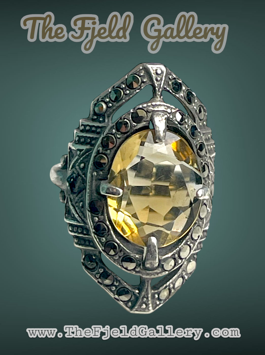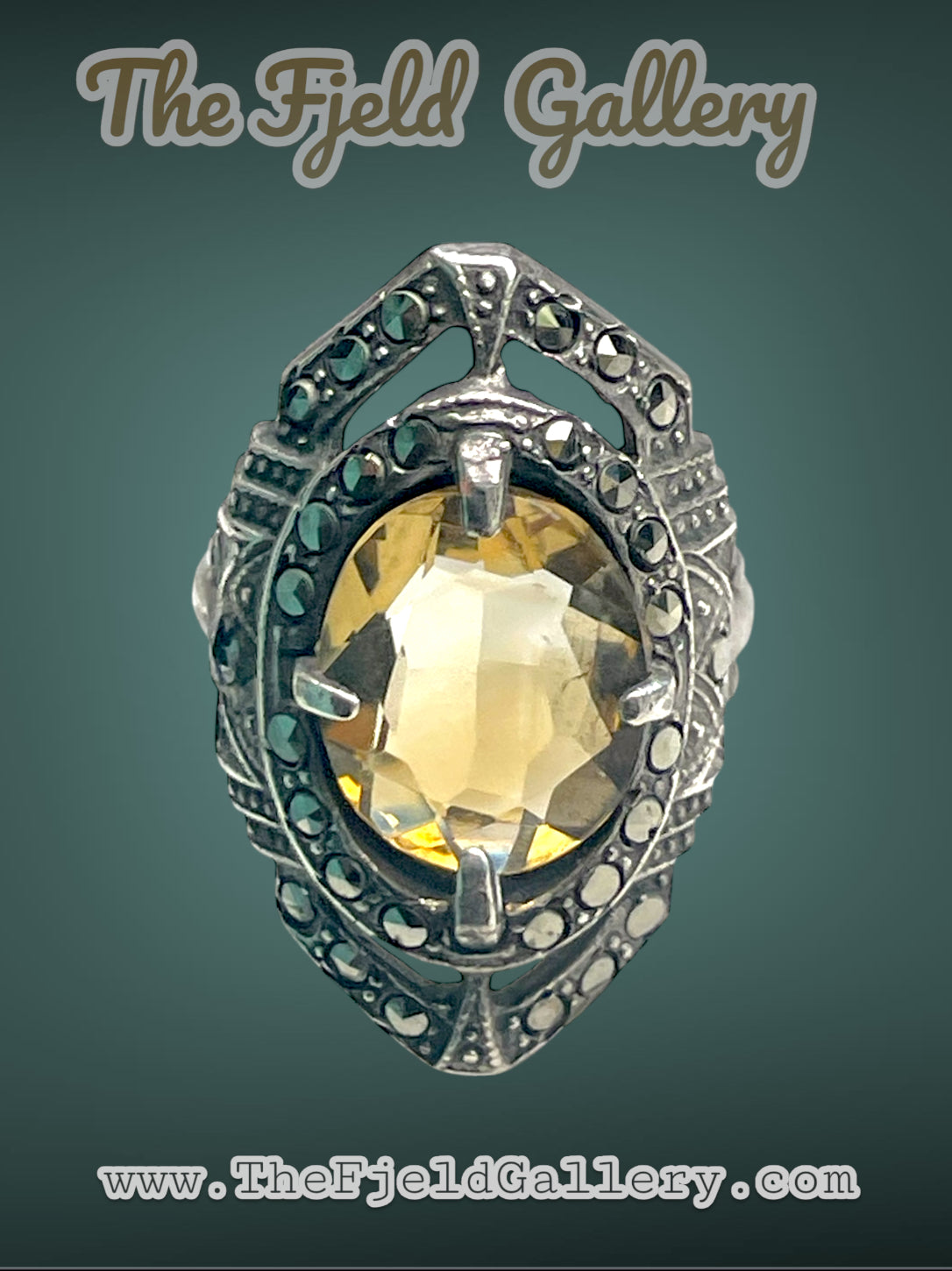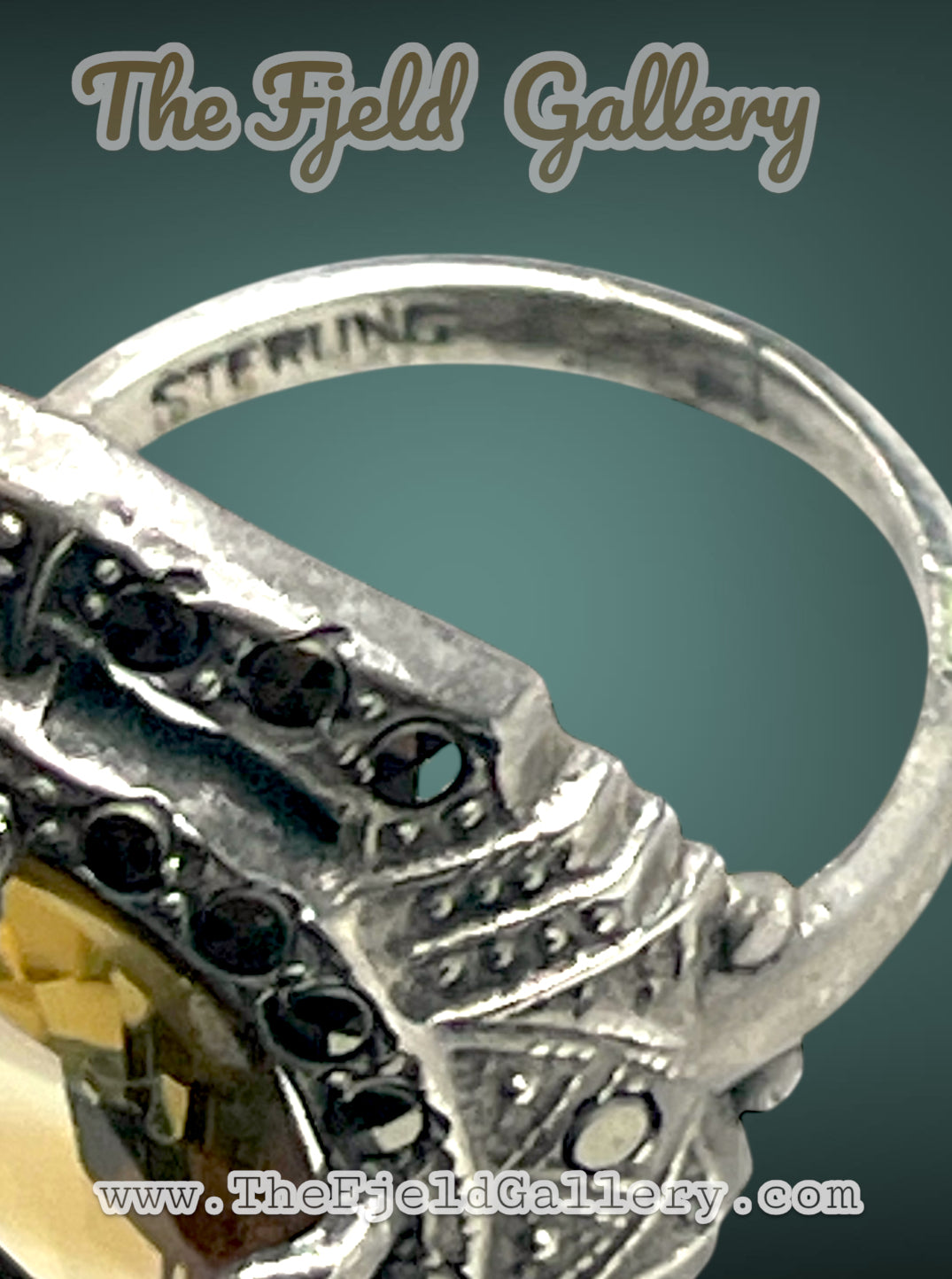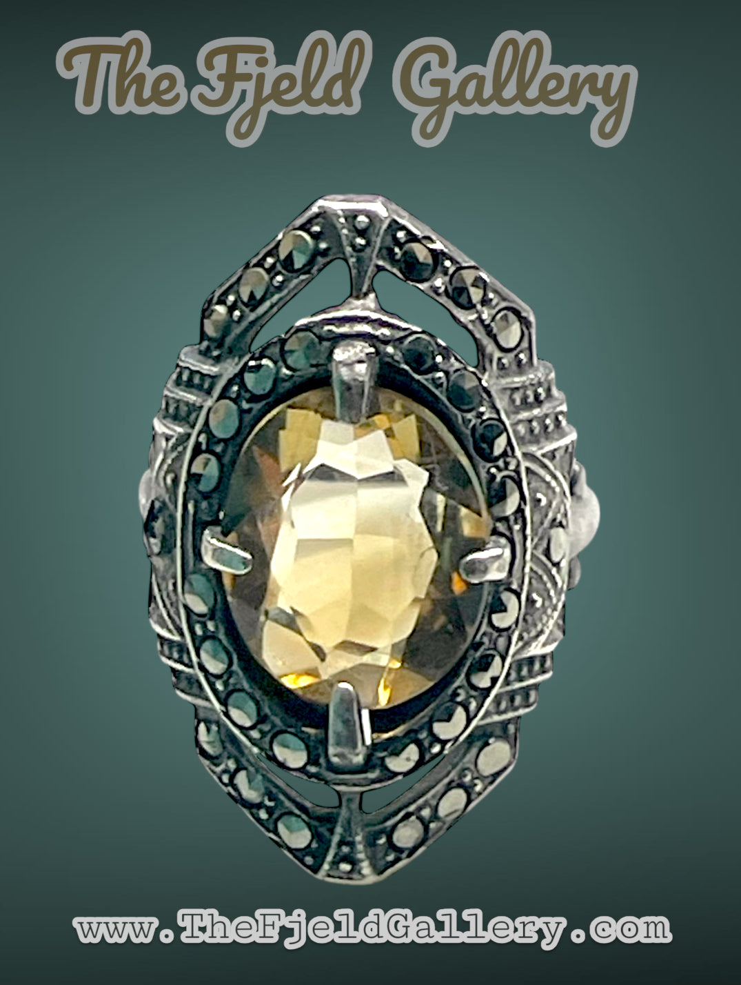 Citrine Art Deco Sterling Silver & Marcasite Ring