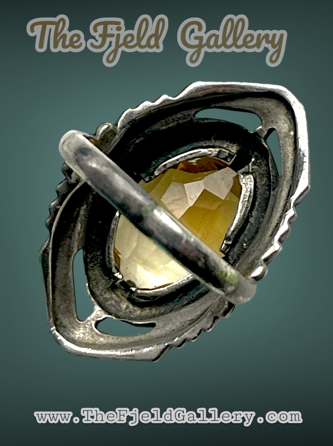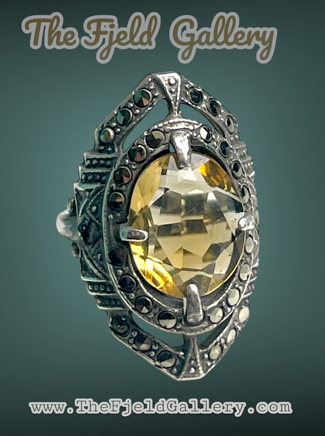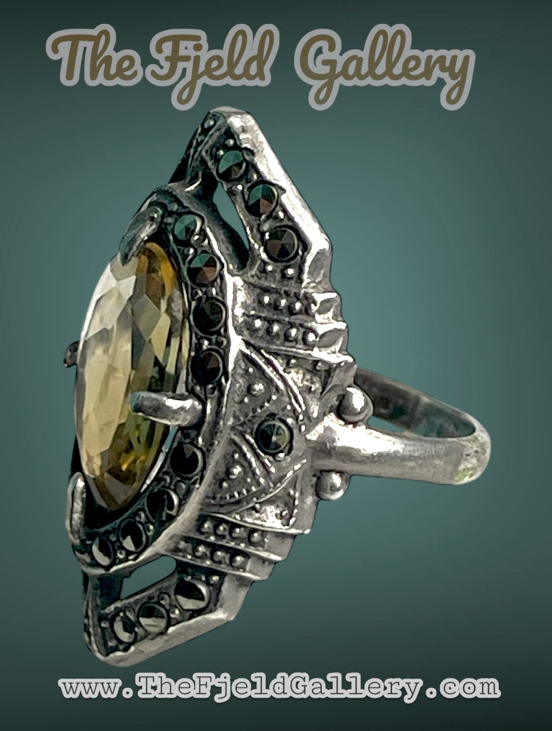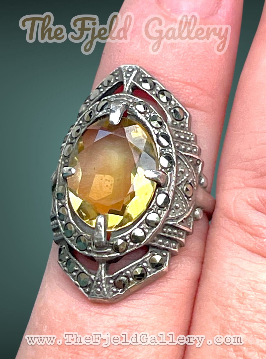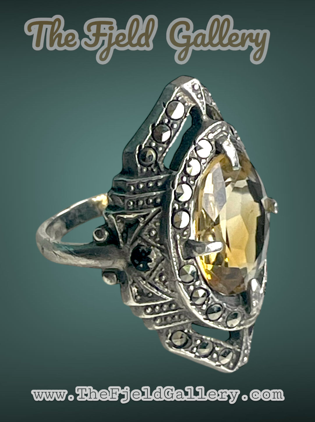 Citrine Art Deco Sterling Silver & Marcasite Ring