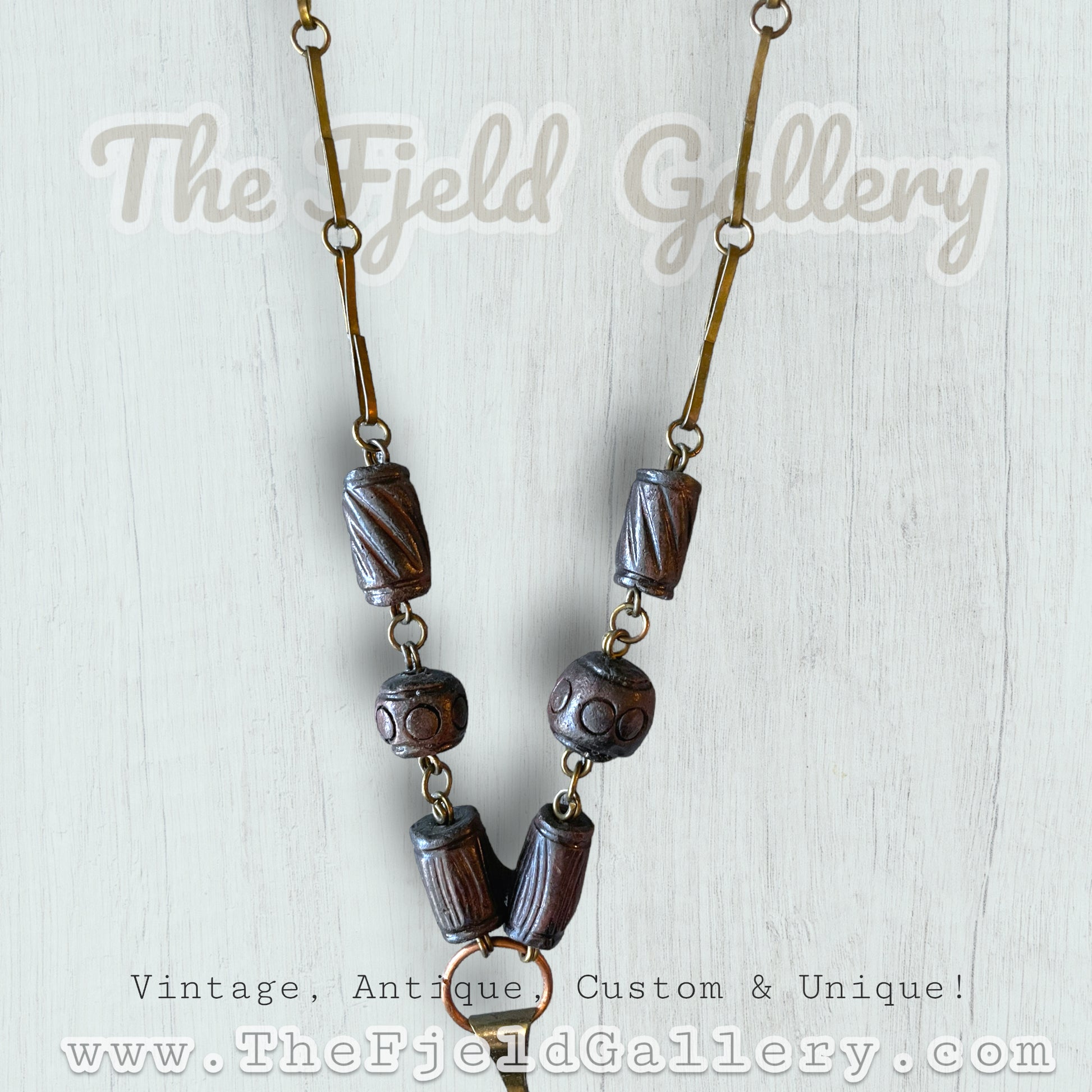 Copper & Brass Orange Stone Carved Face Mask Mexican Necklace