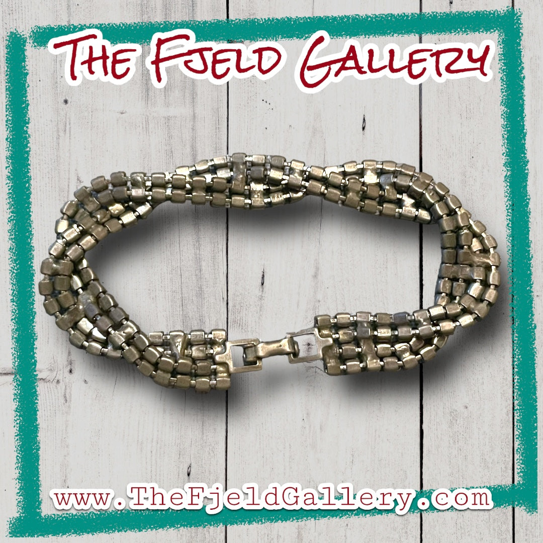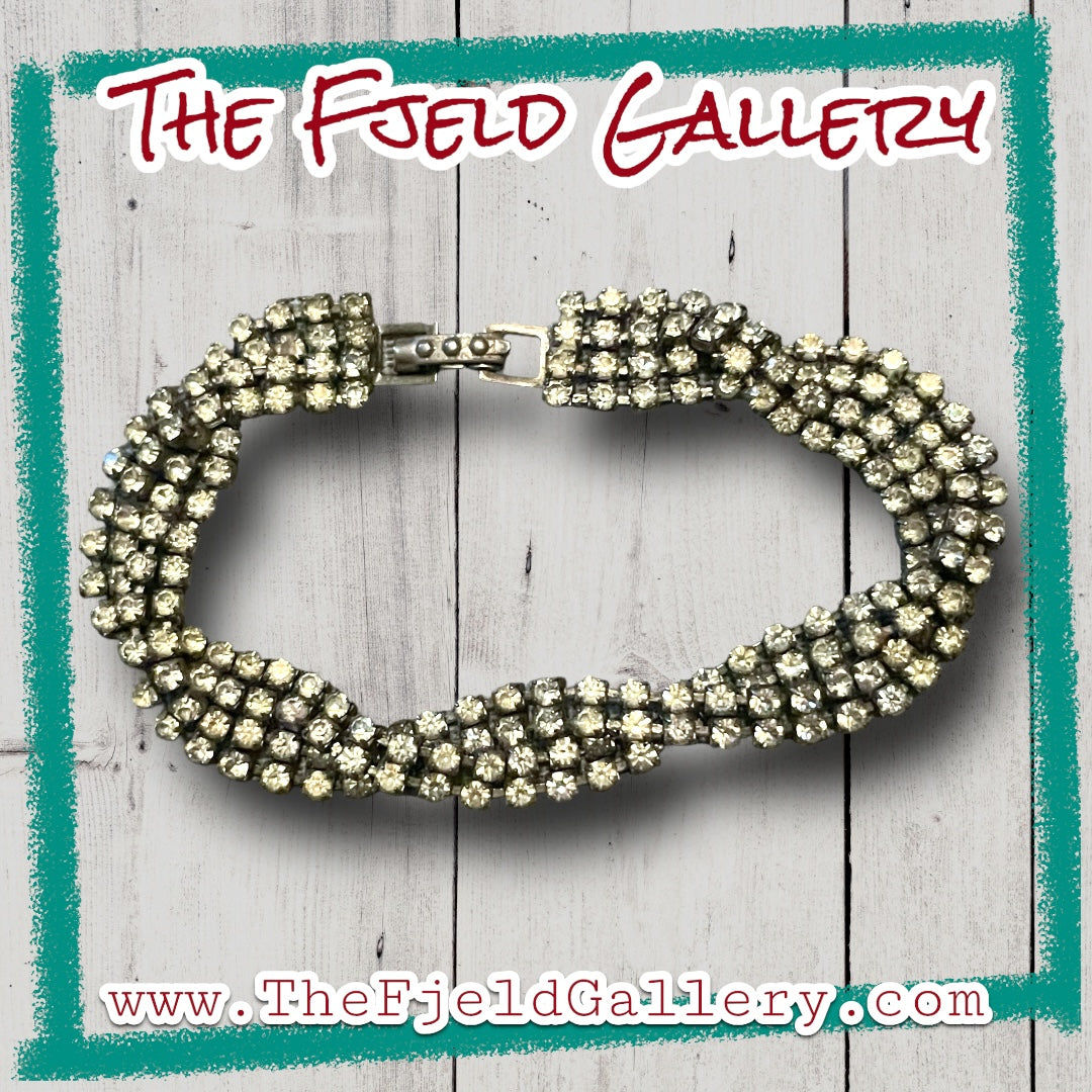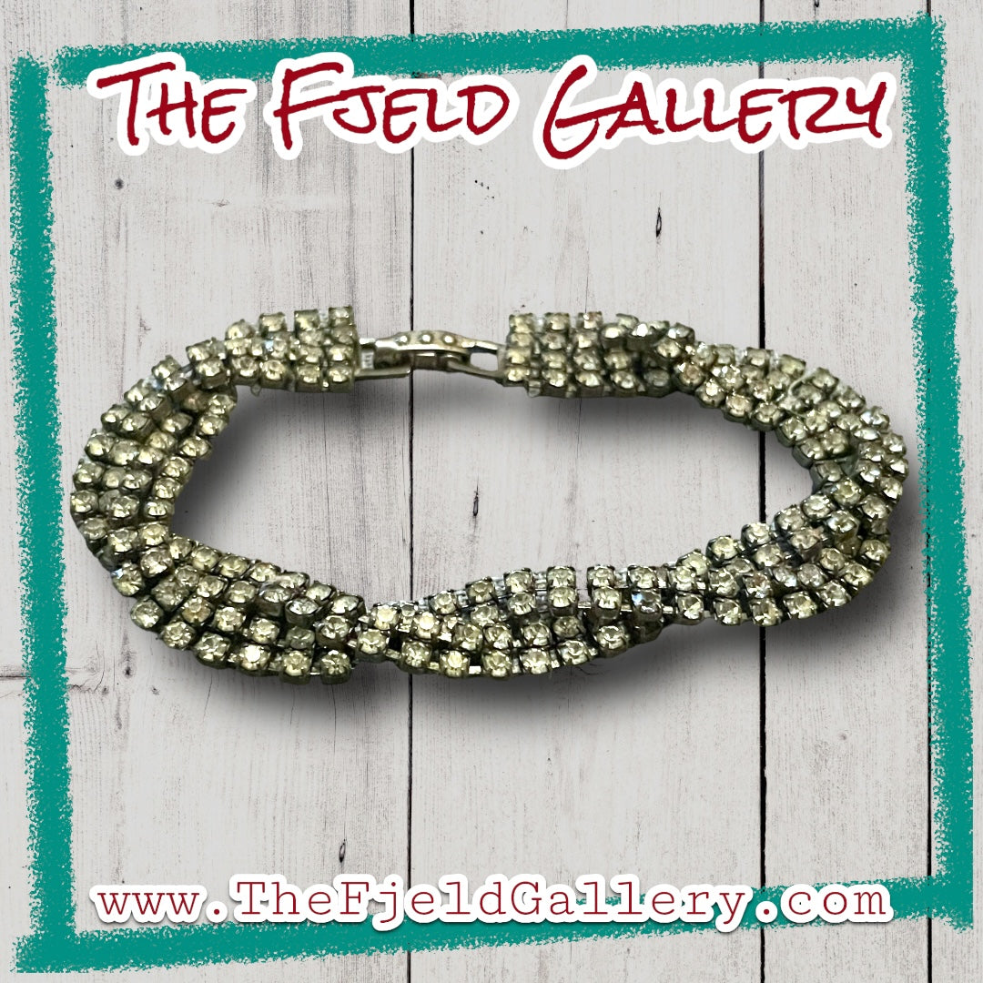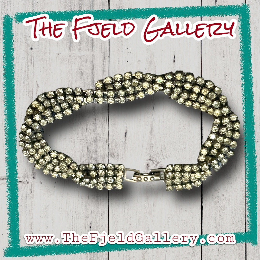 Beautiful vintage silver expansion prong set twisted multi strand crystal rhinestone bracelet. Fold over clasp 7” long.
