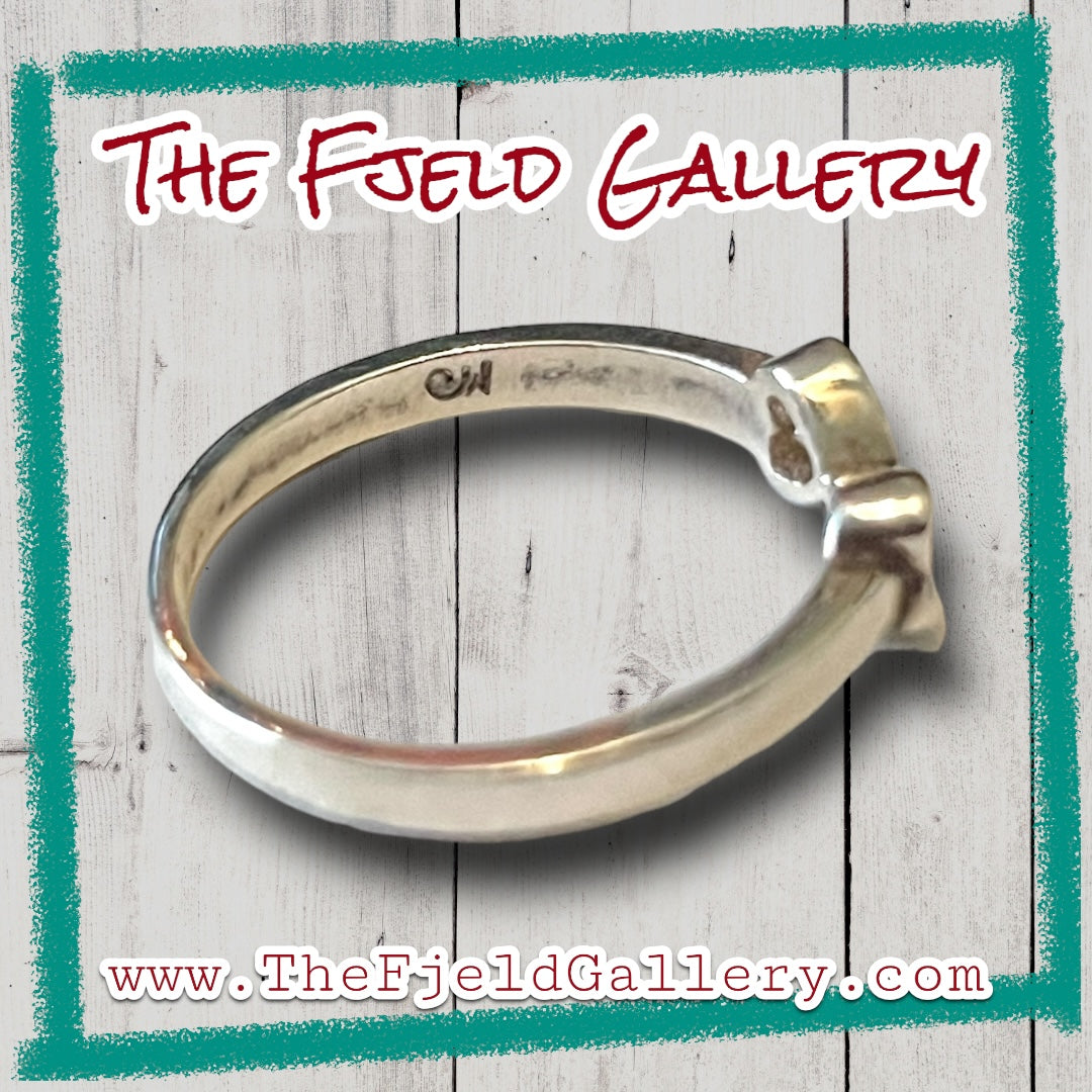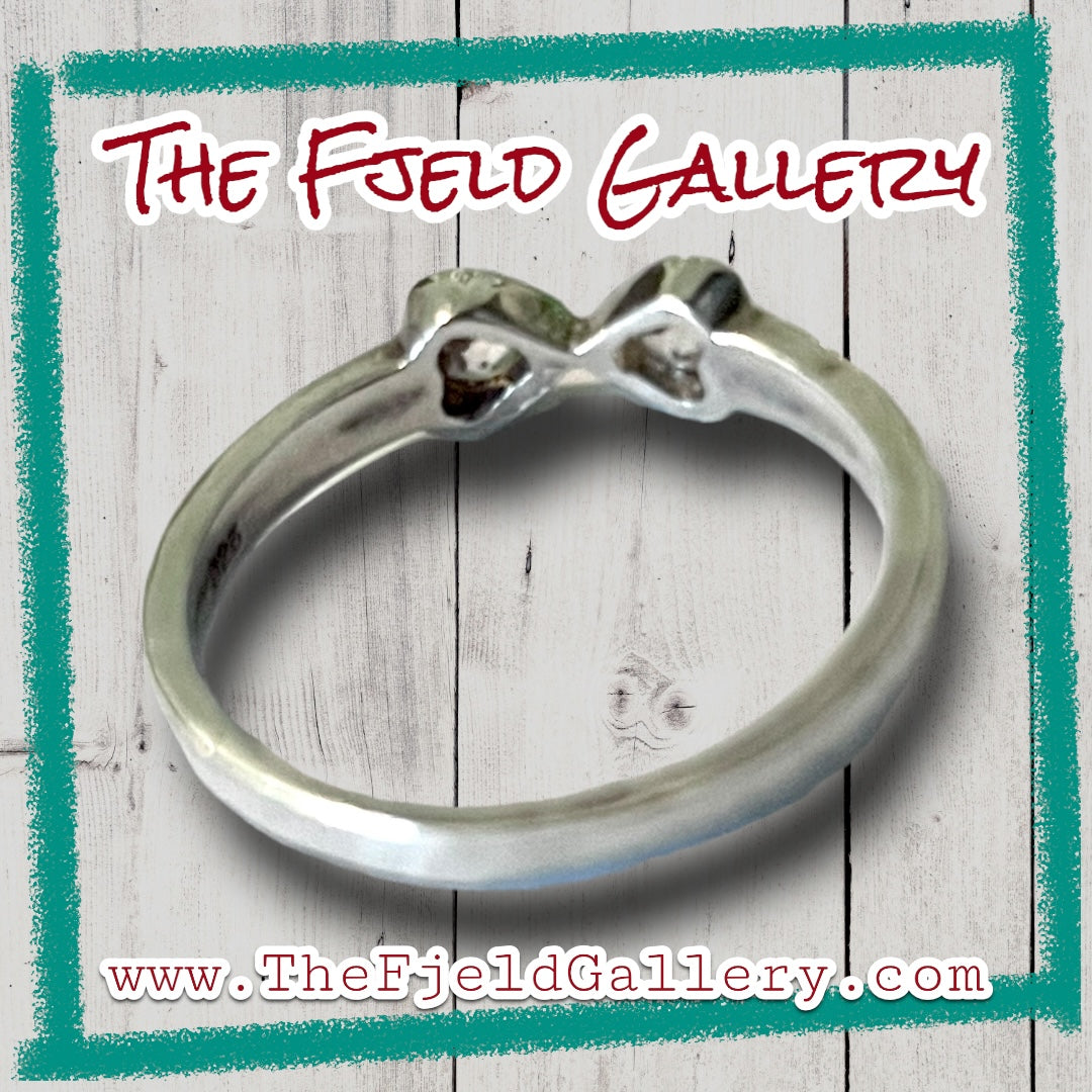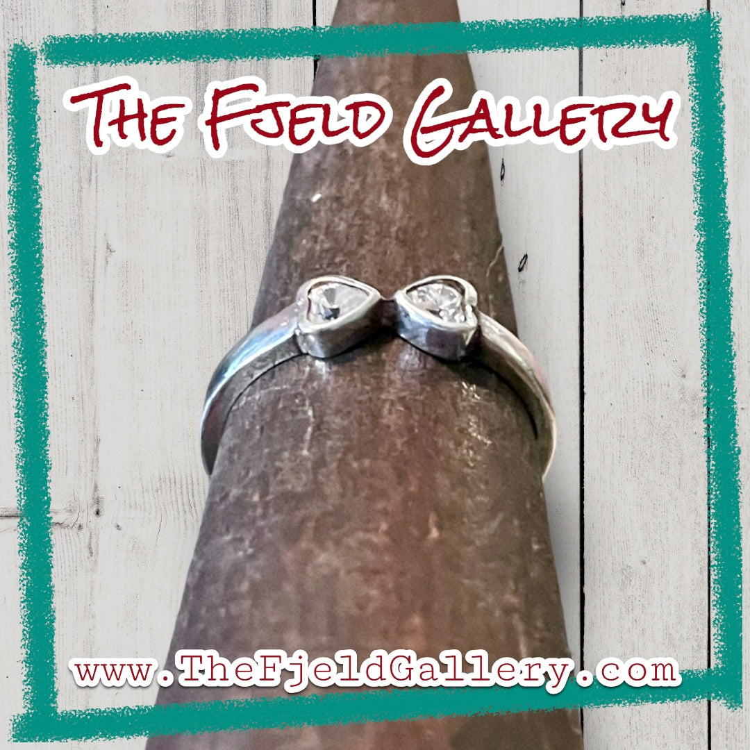 Beautiful,& dainty this double cubic zirconia gemstone prong set in double sterling silver hearts ring.