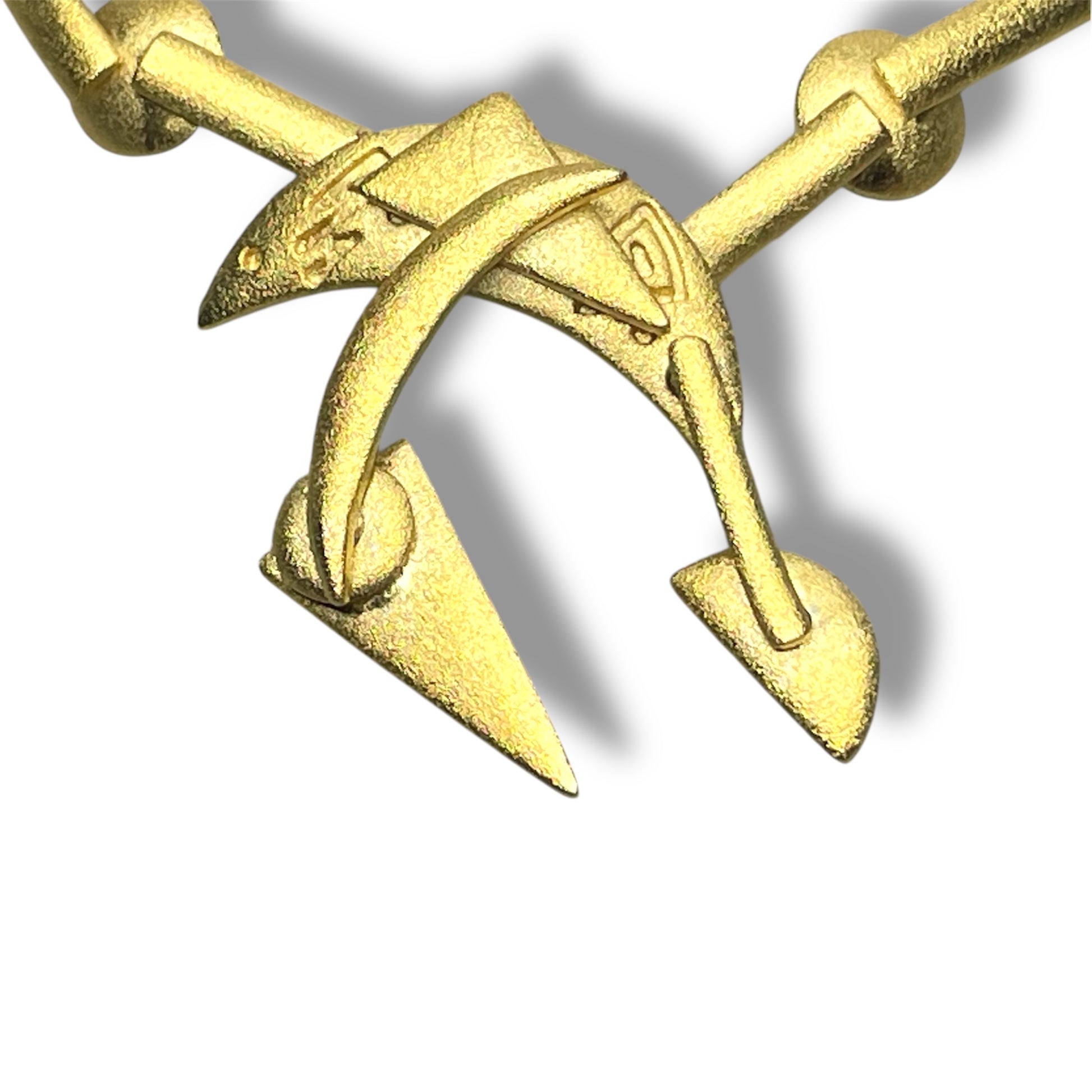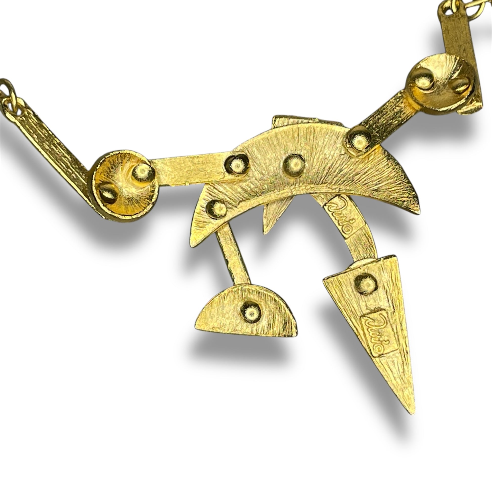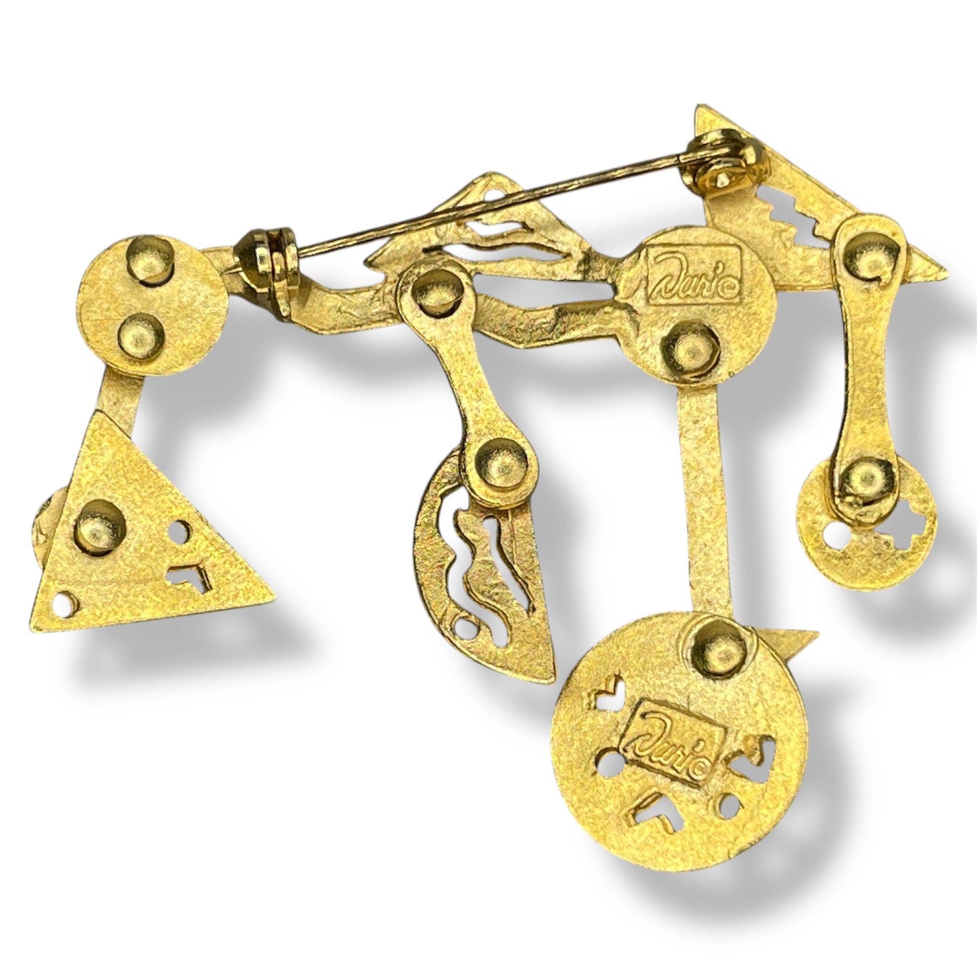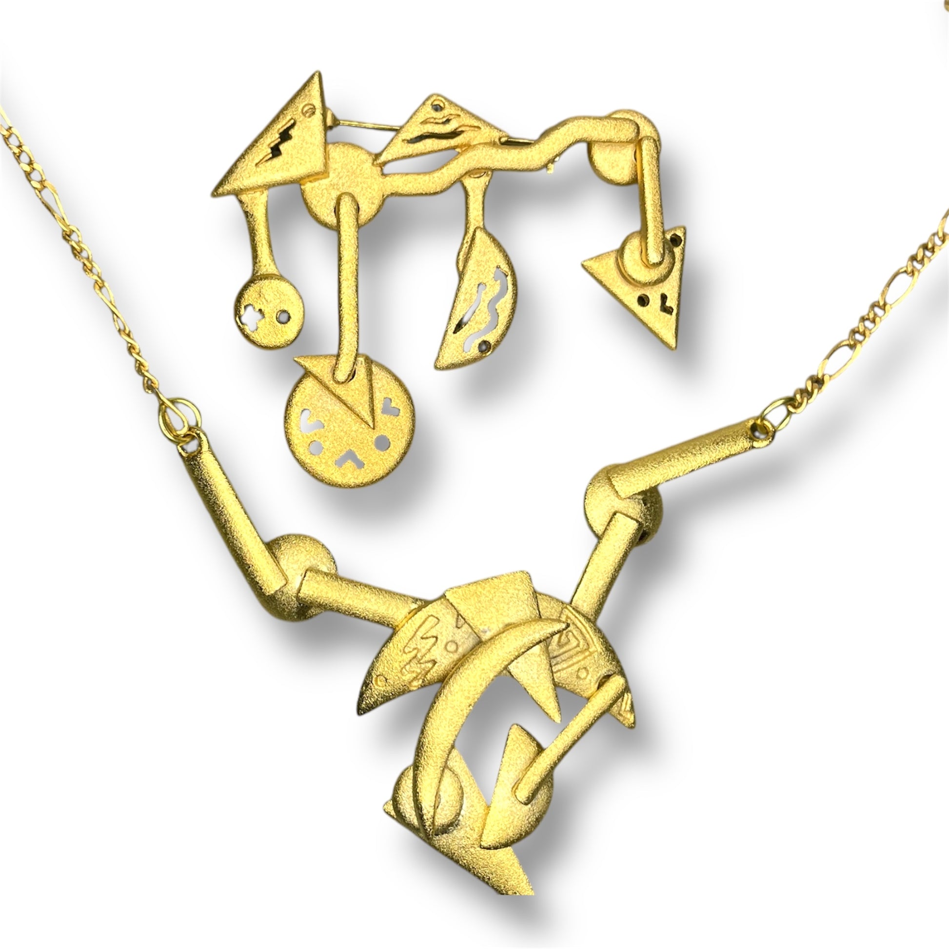 Duri Art Deco Abstract Gold Tone Geometric Articulating Necklace & Brooch Set
