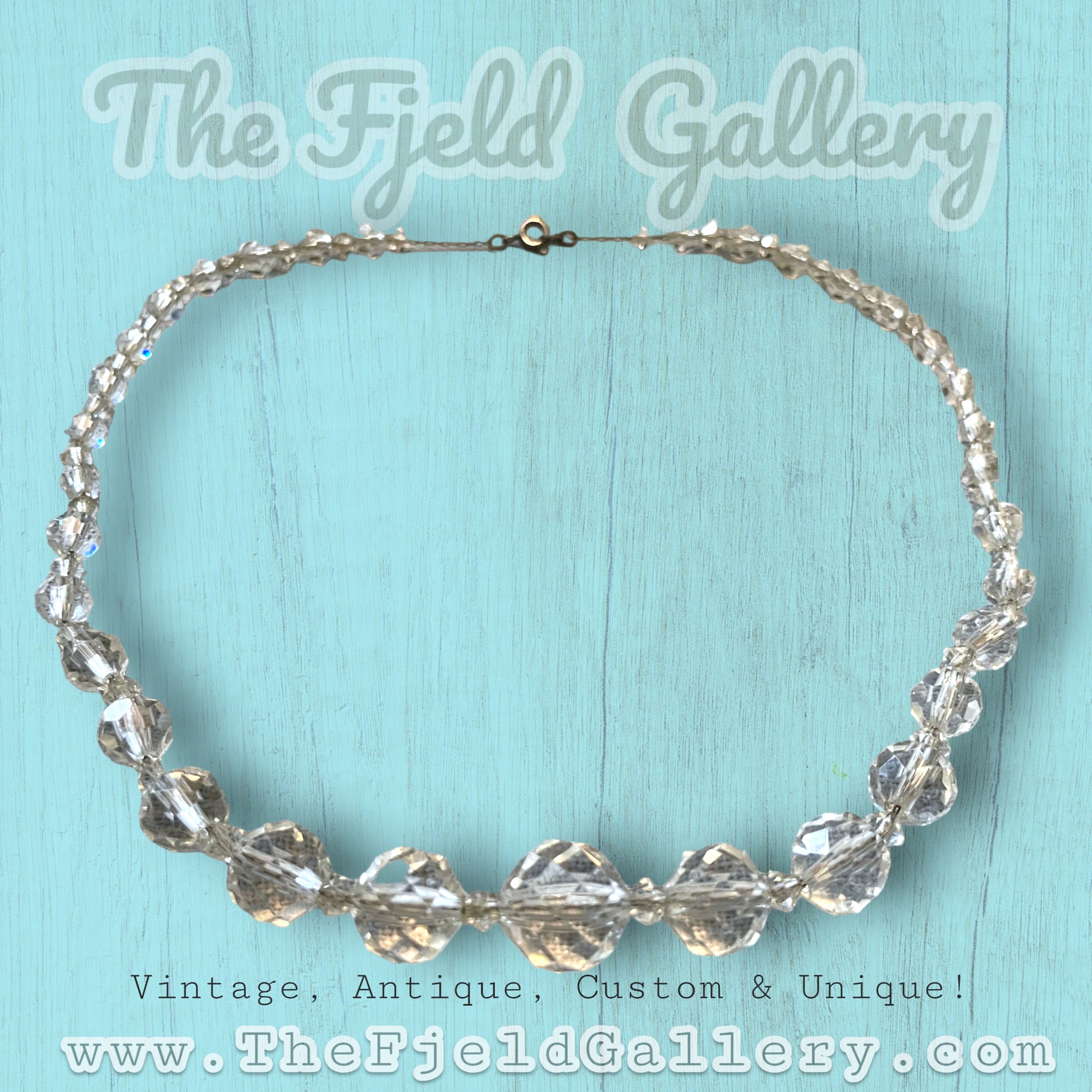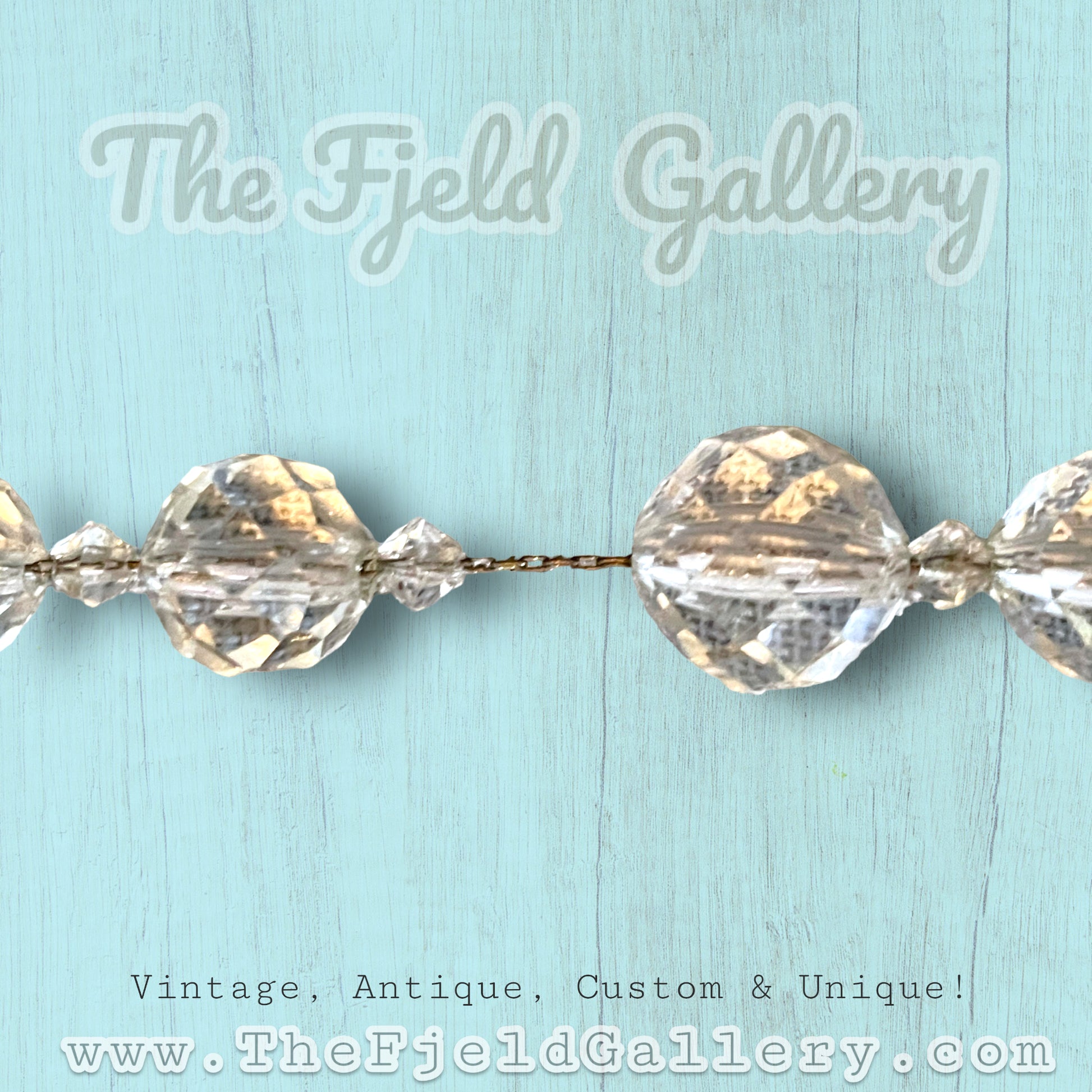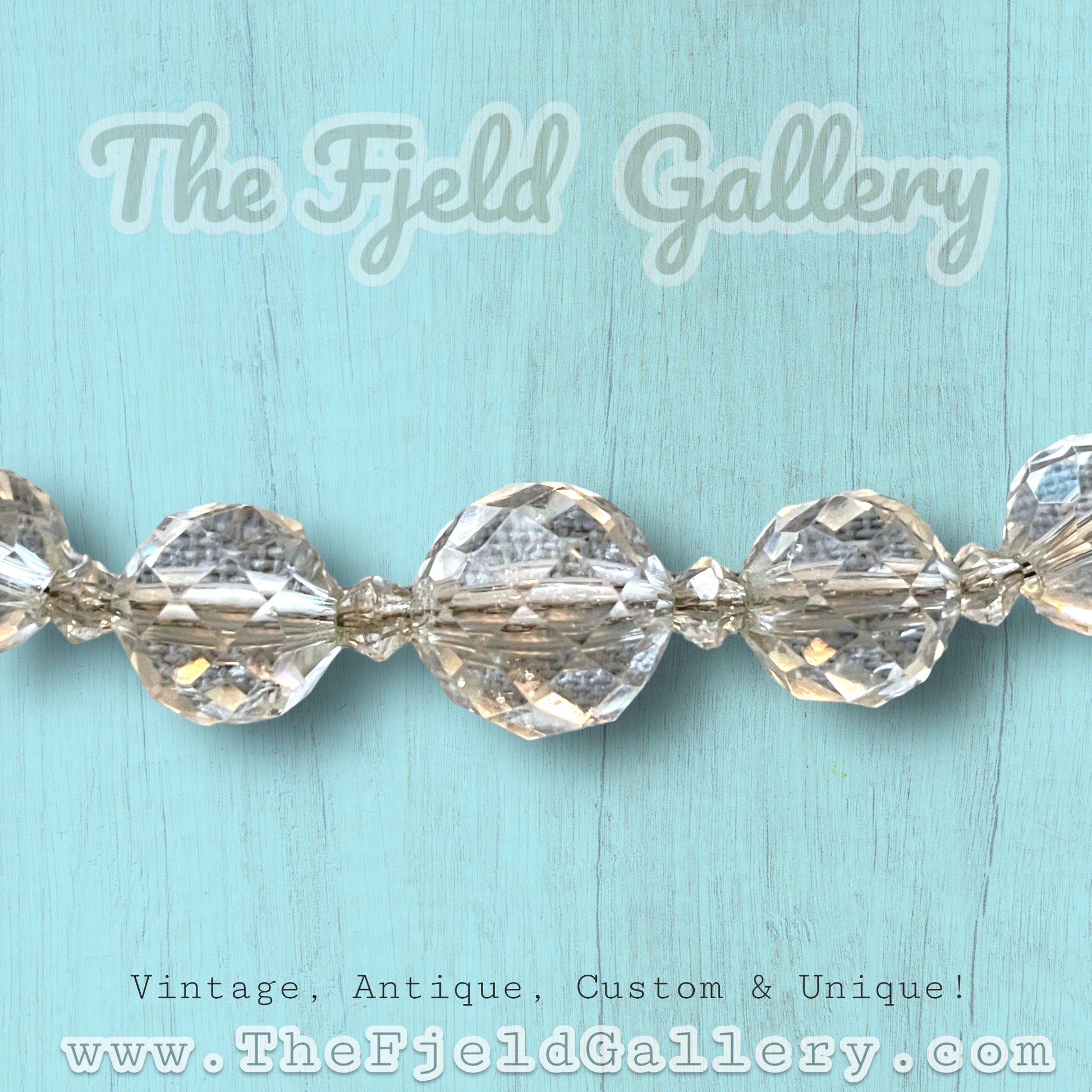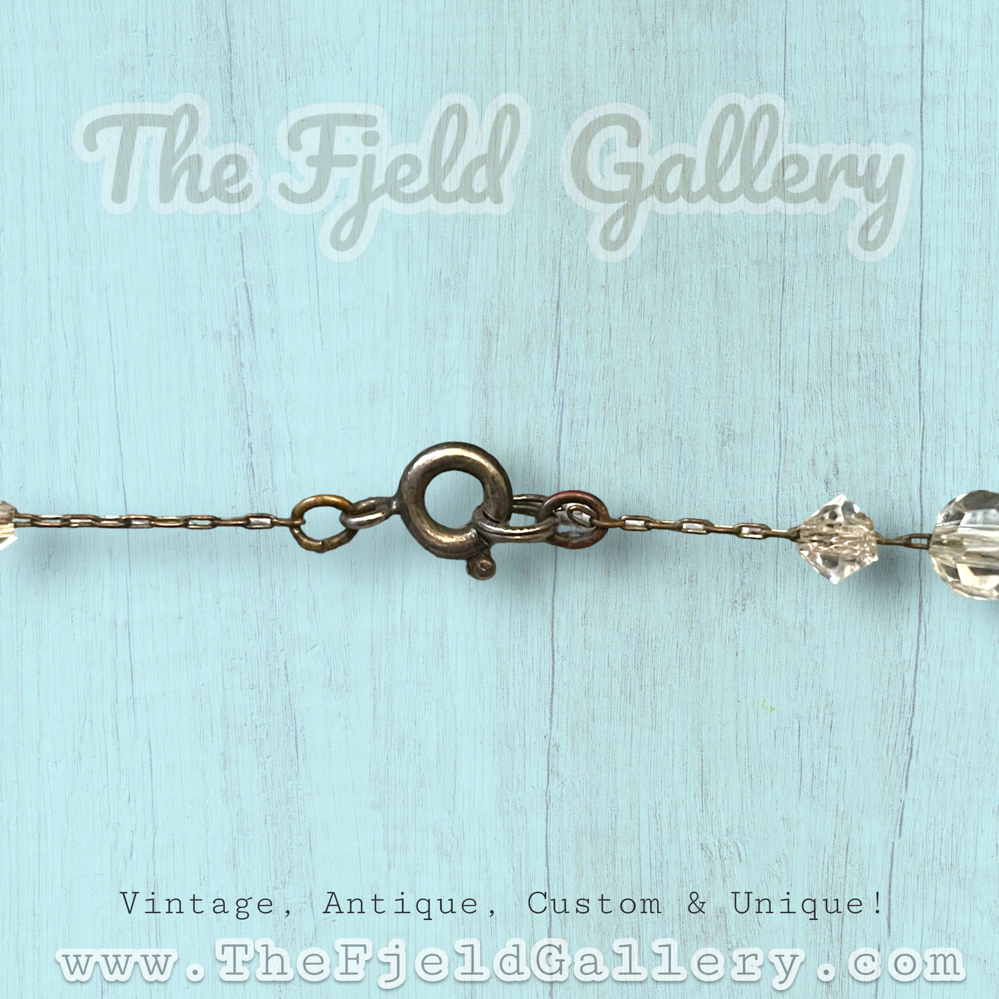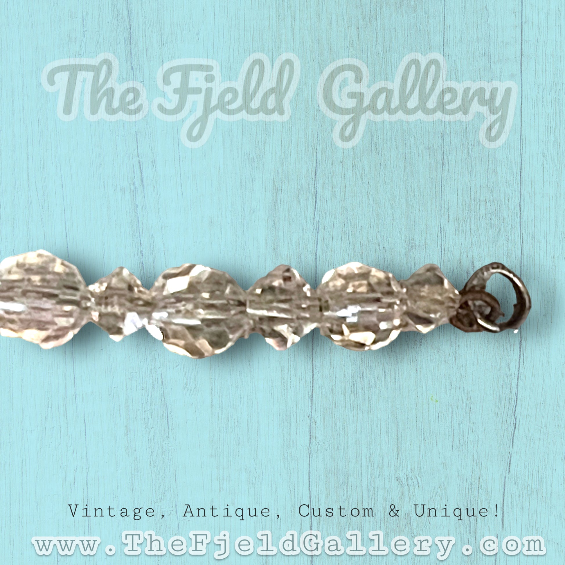 Gorgeous German Edwardian sterling silver chain necklace strung with faceted quartz crystal beads c.1880’s. Spring ring clasp marked Sterling / Made in Germany on both sides.
