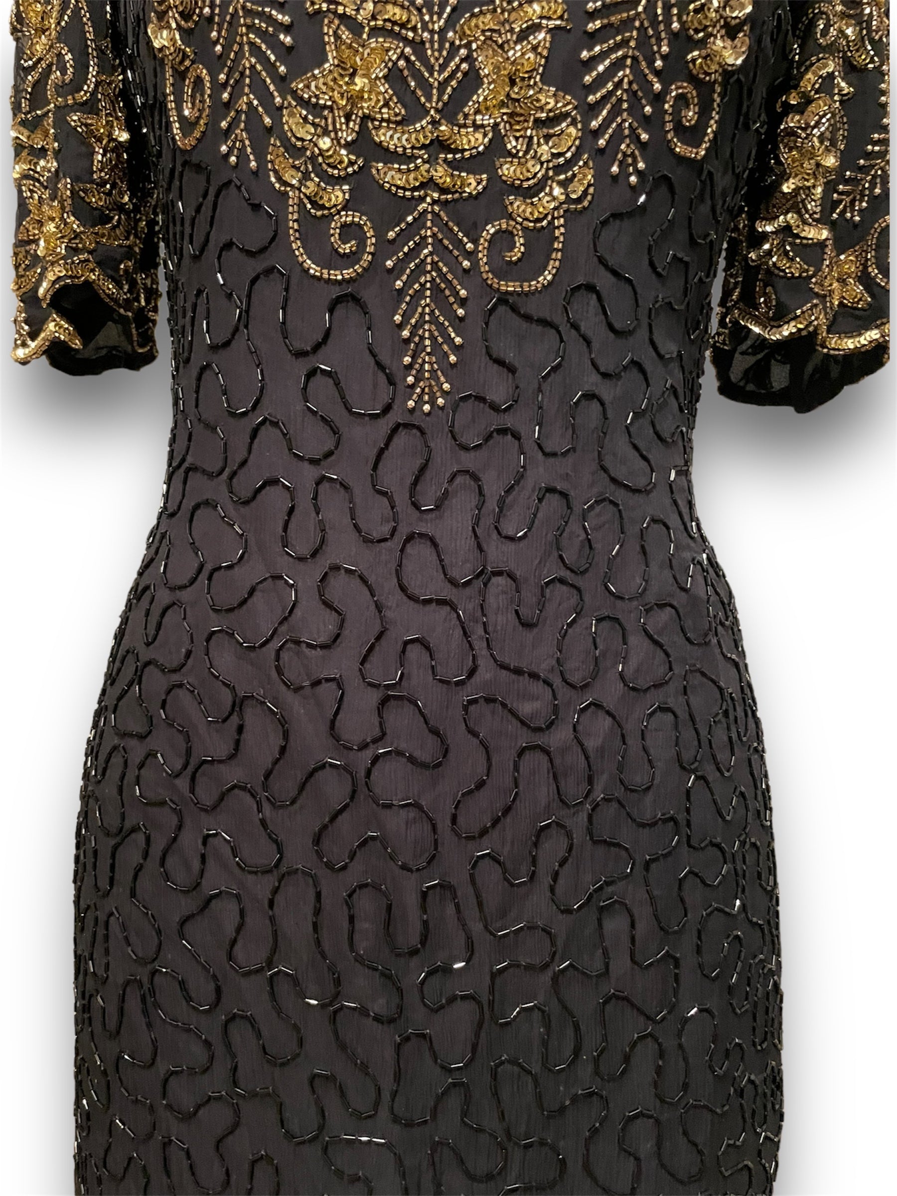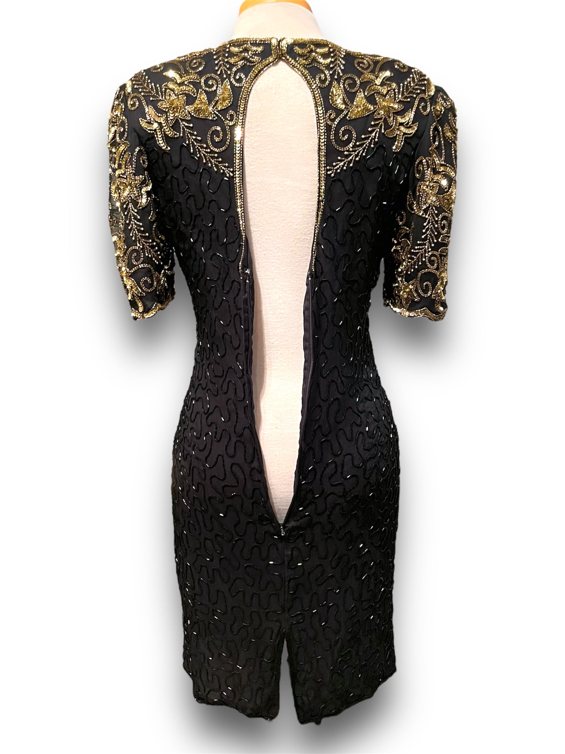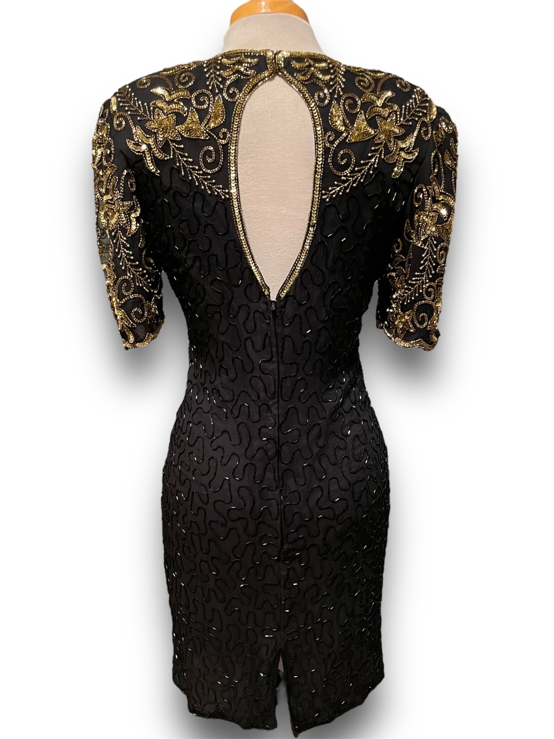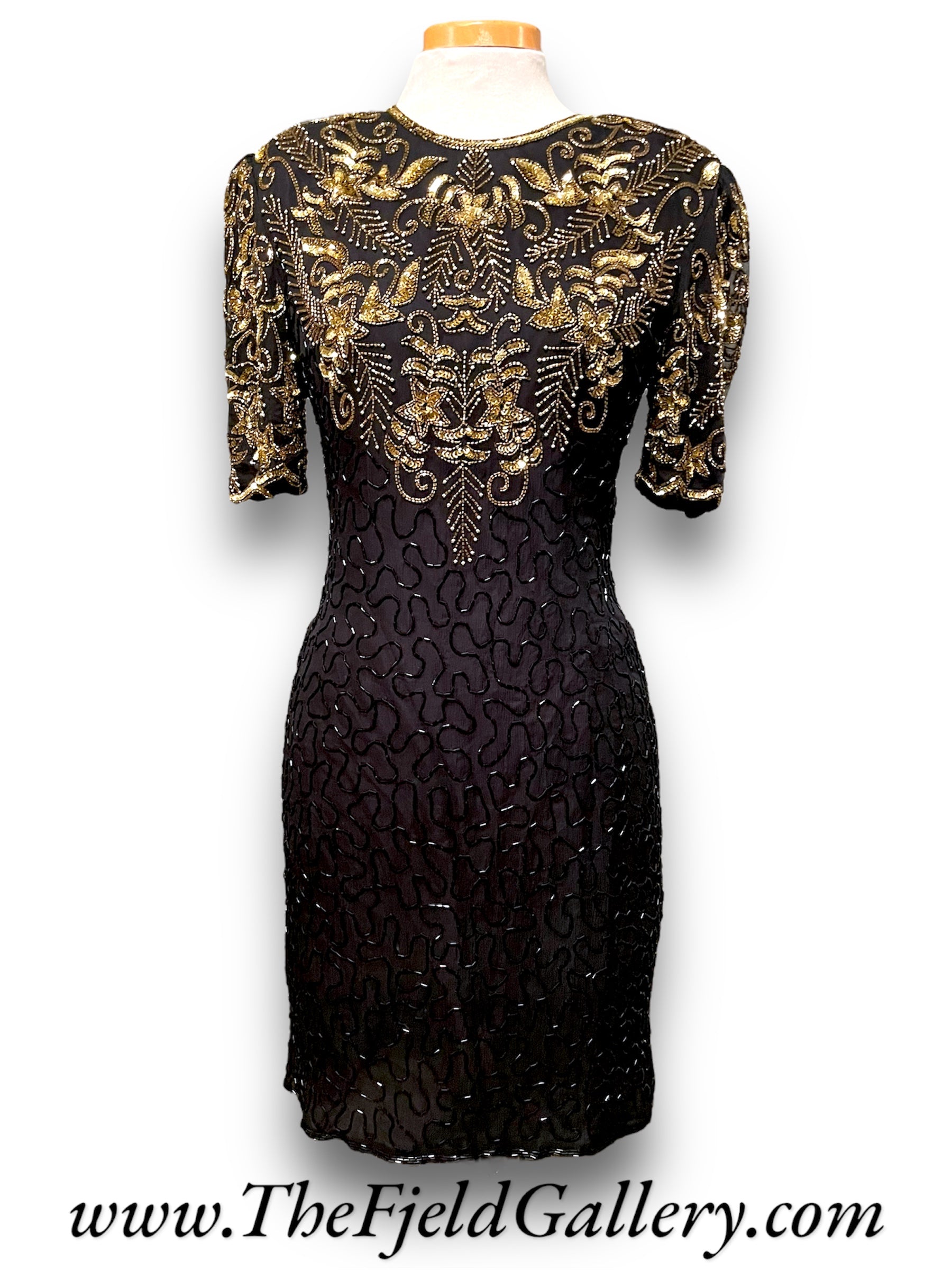 Gorgeous Vintage Beaded Black & Gold 1980’s Party Dress