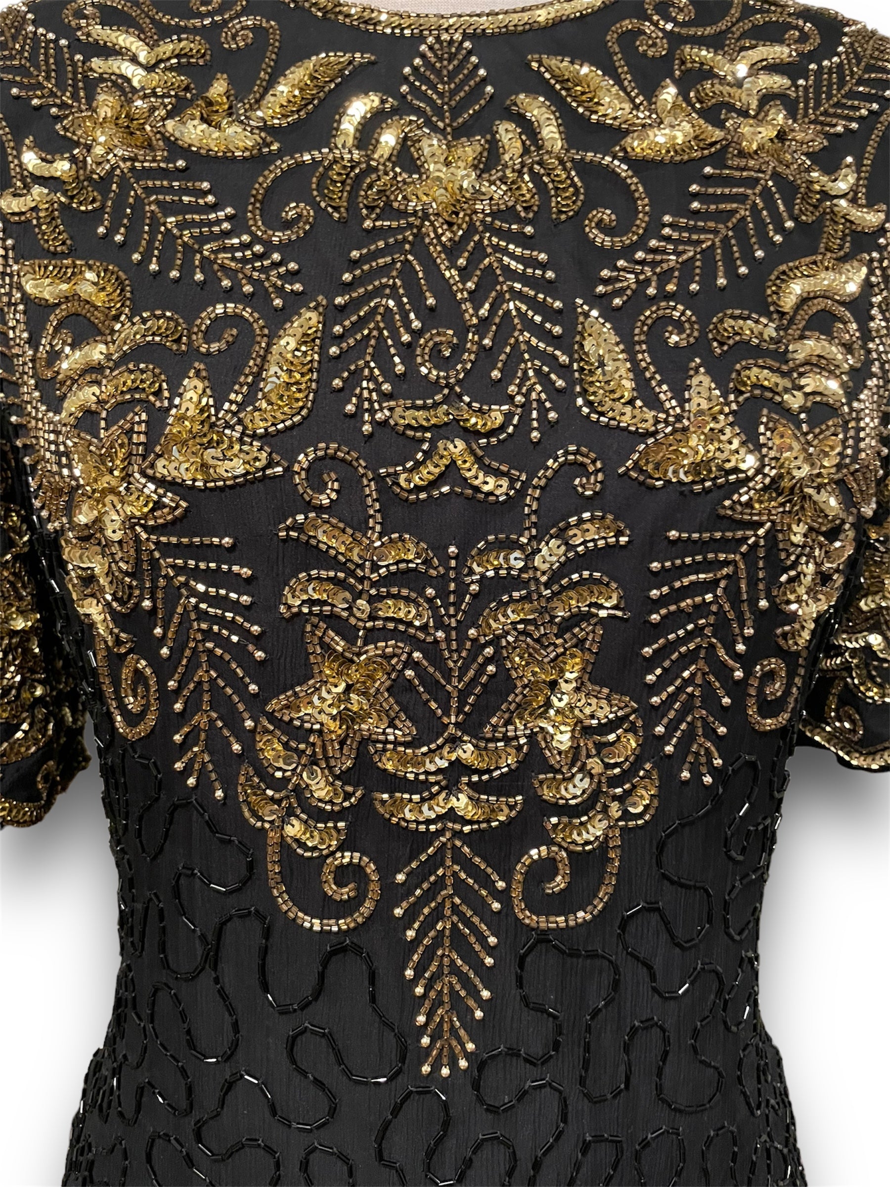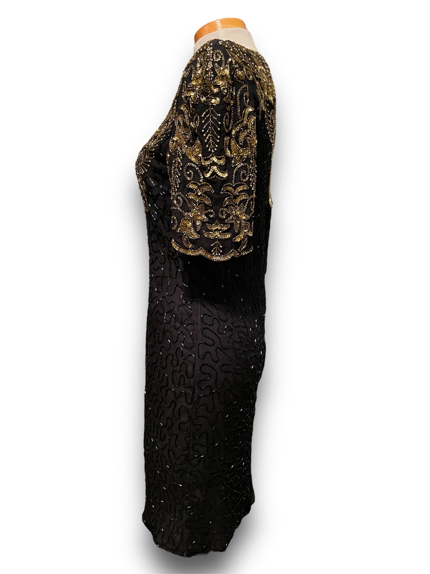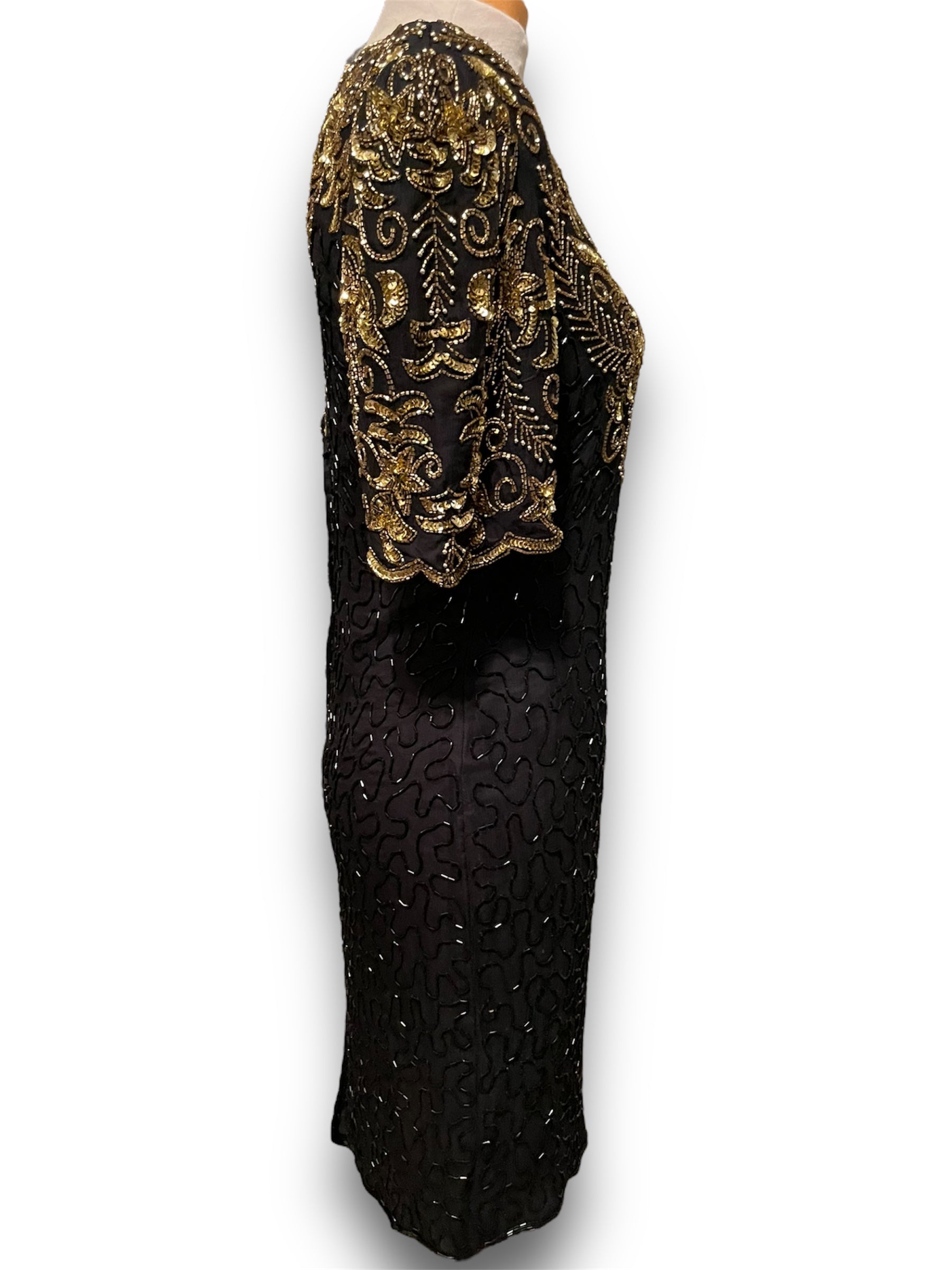 Gorgeous Vintage Beaded Black & Gold 1980’s Party Dress
