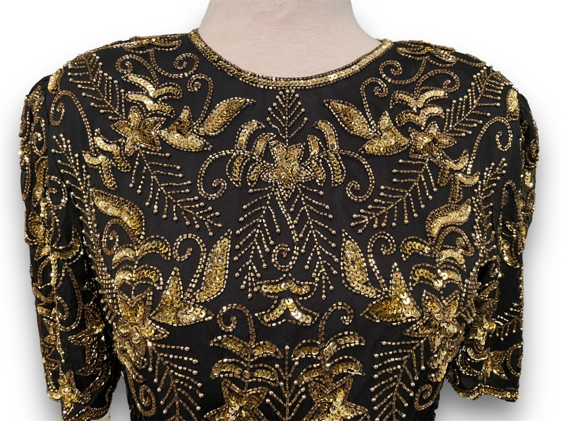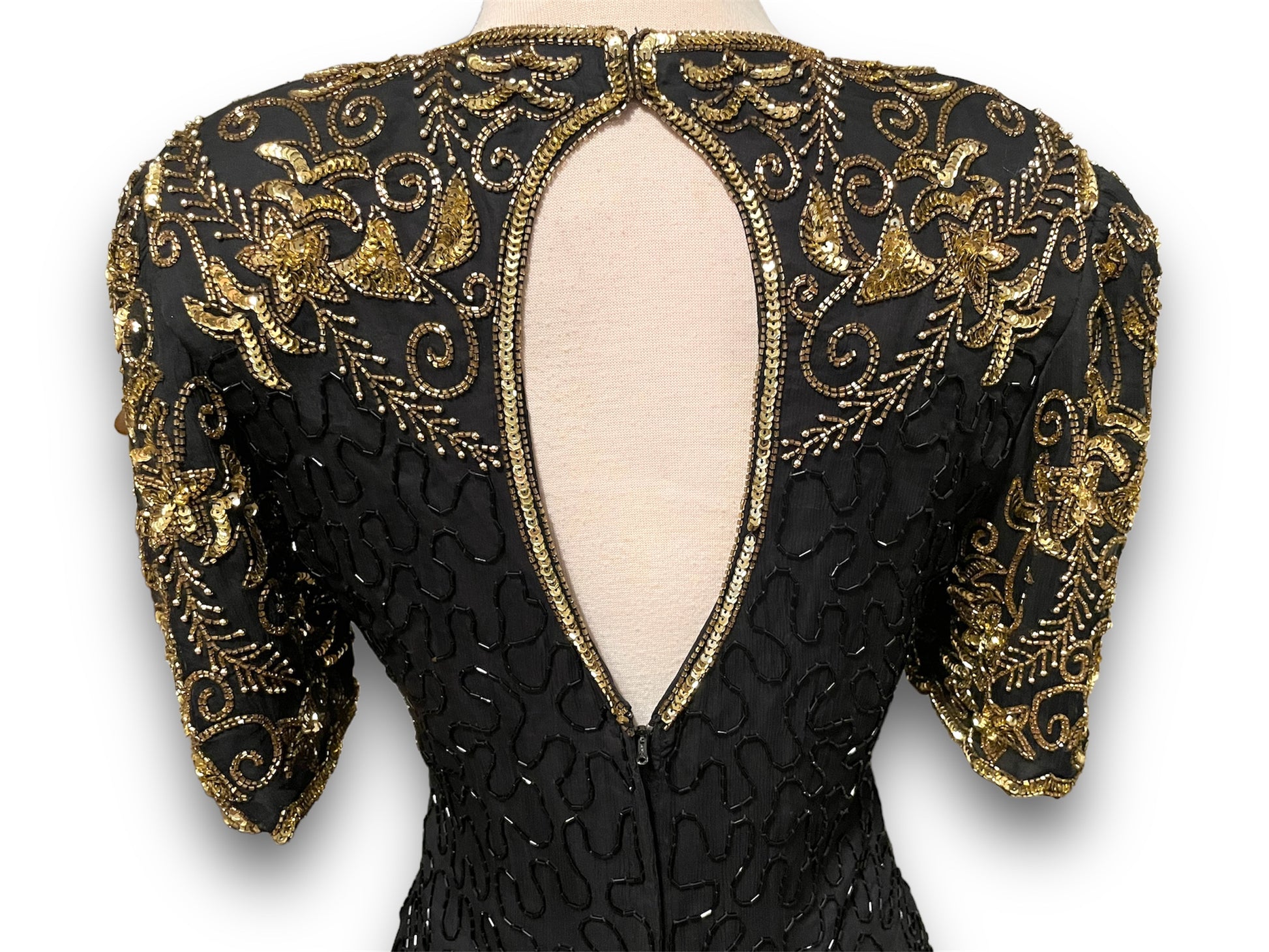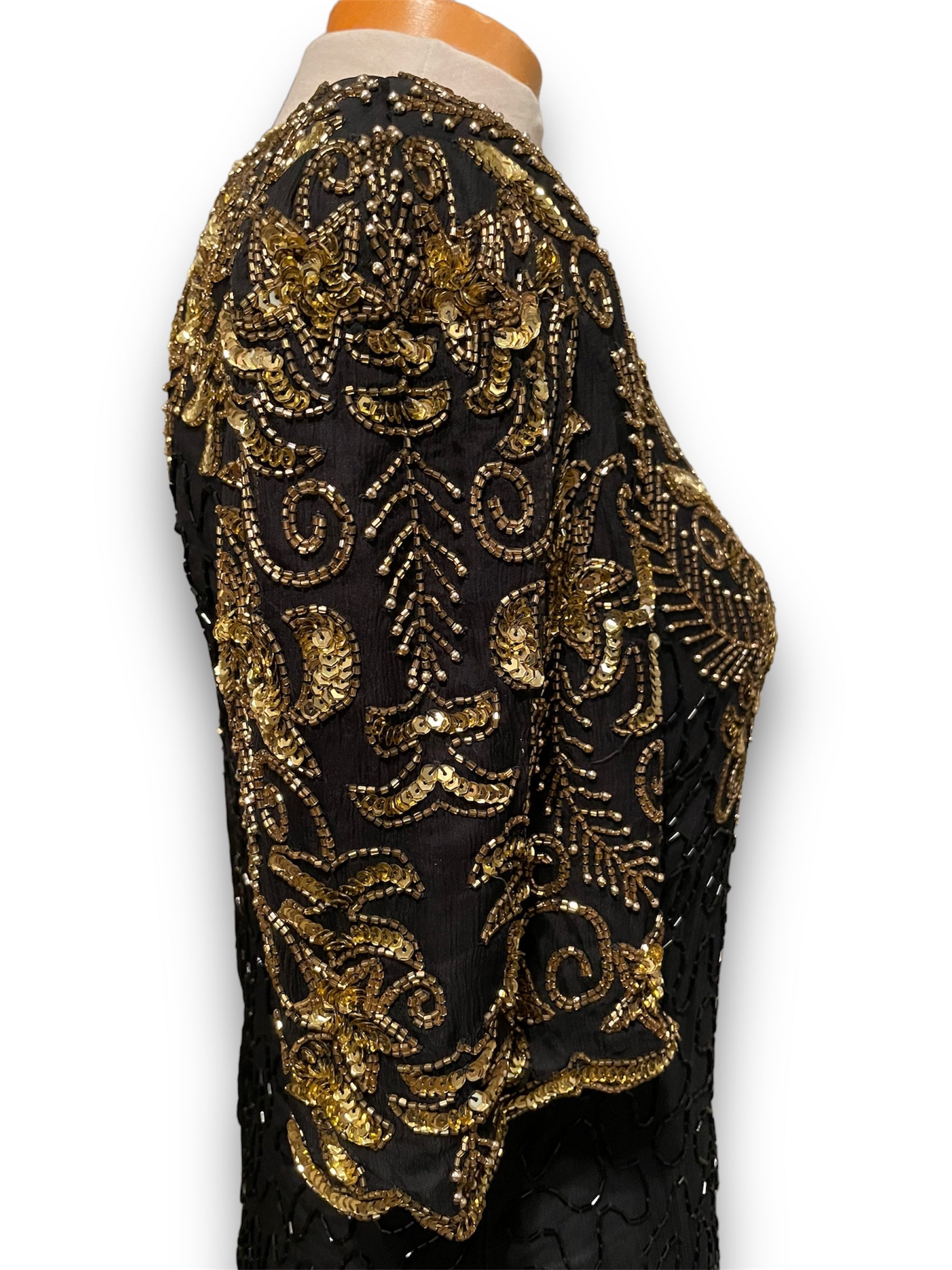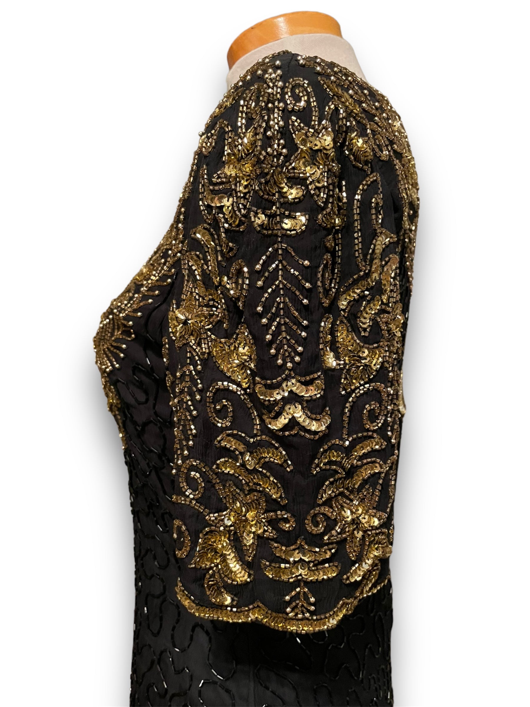 Gorgeous Vintage Beaded Black & Gold 1980’s Party Dress