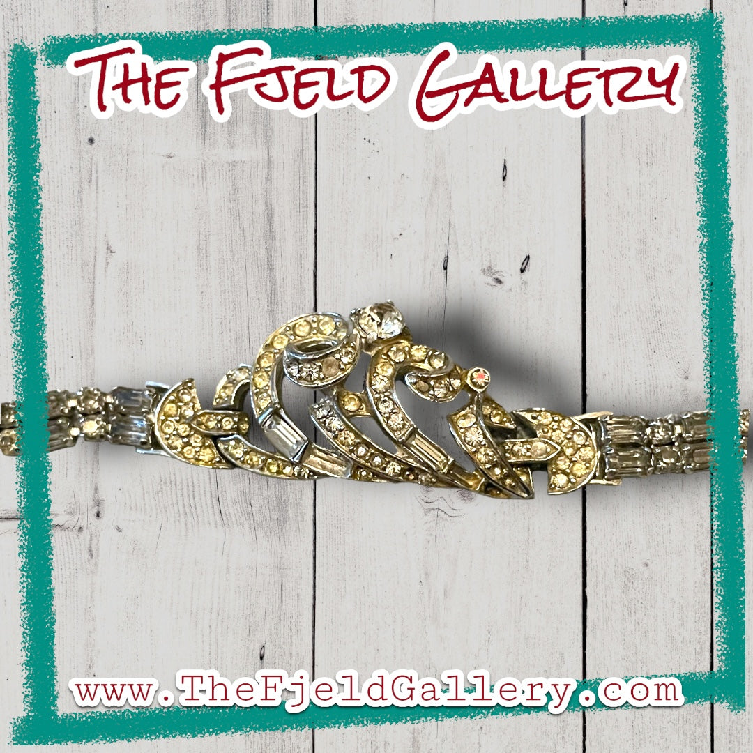 Hollywood Regency Marboux Designer Numbered Silver Crown Crystal Rhinestone Bracelet