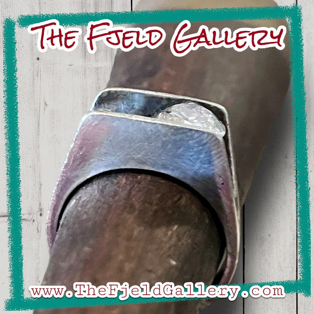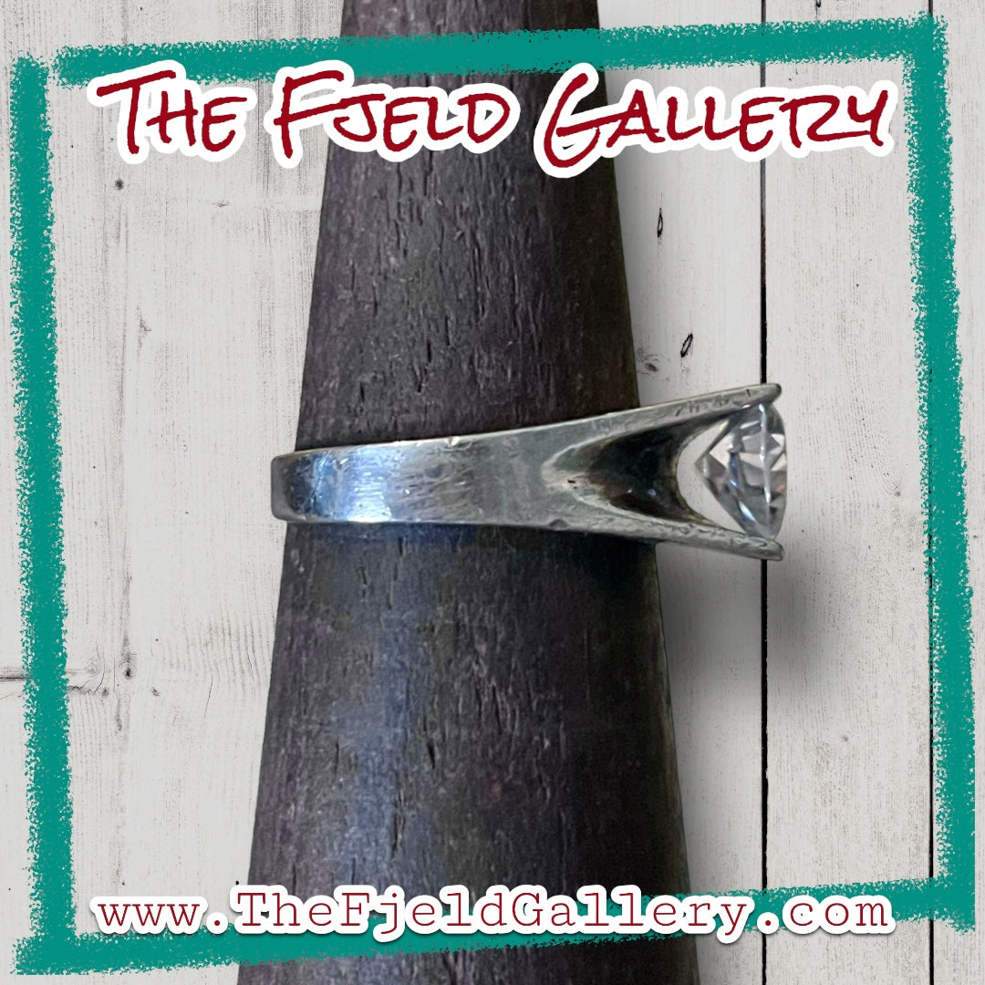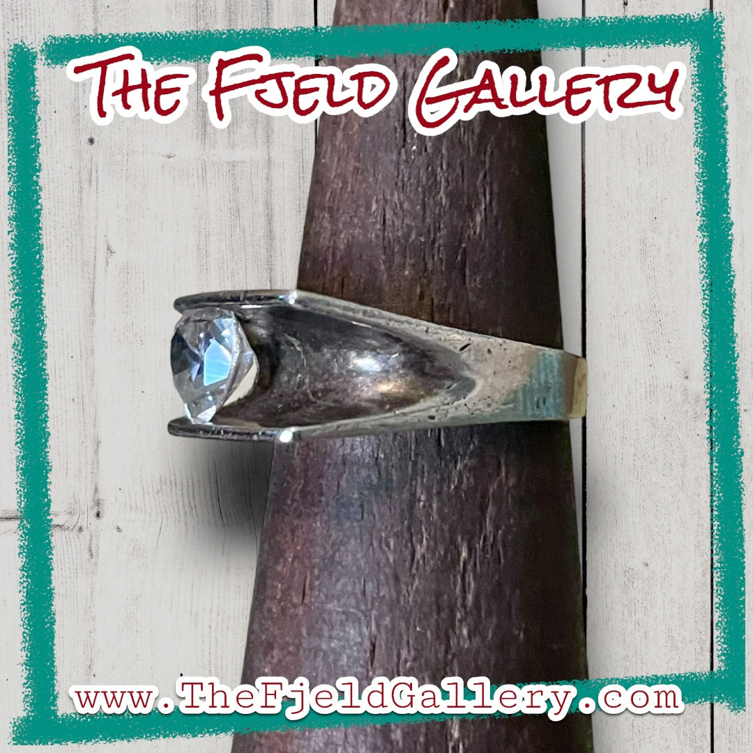 Modernist Zircon Faceted Heart Set in Double Wall Sterling Silver Setting Ring