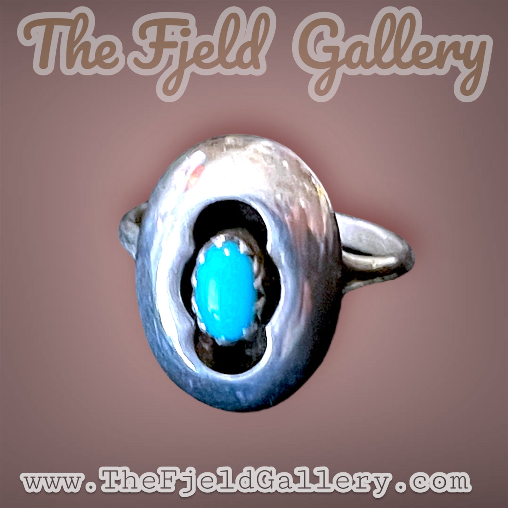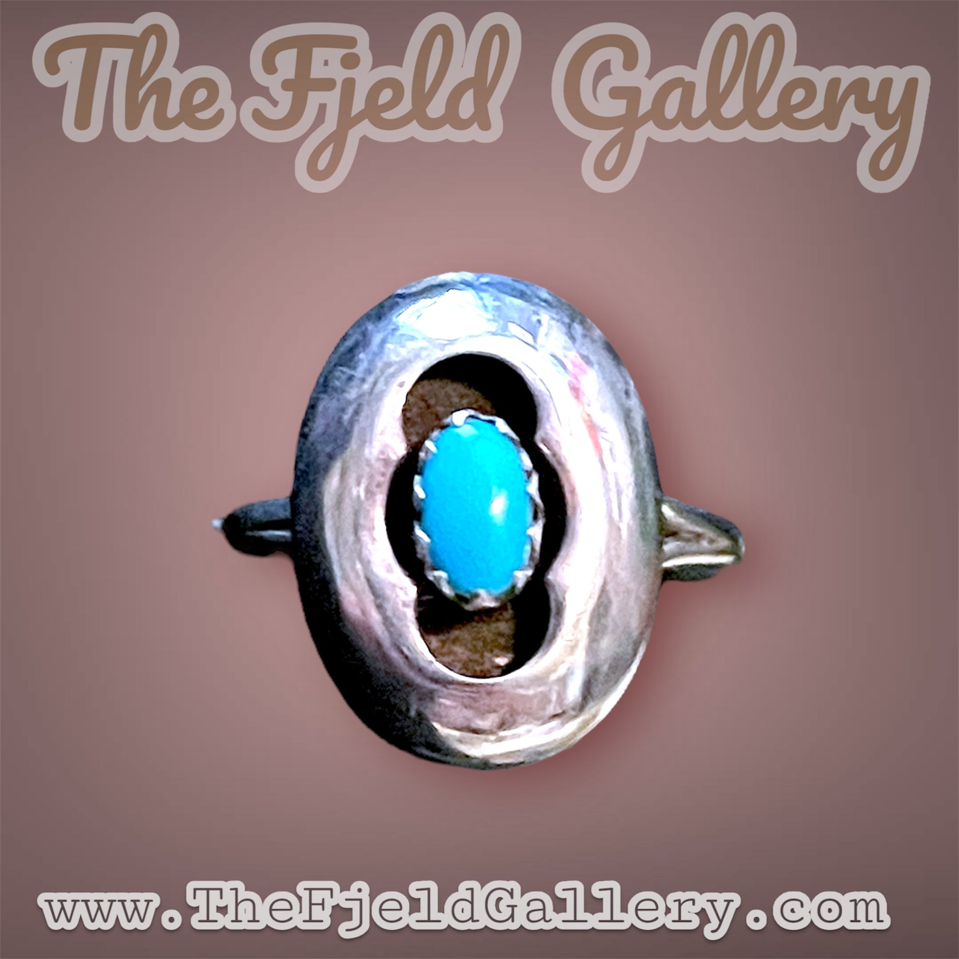 Native American Sterling Silver & Turquoise Shadowbox Ring