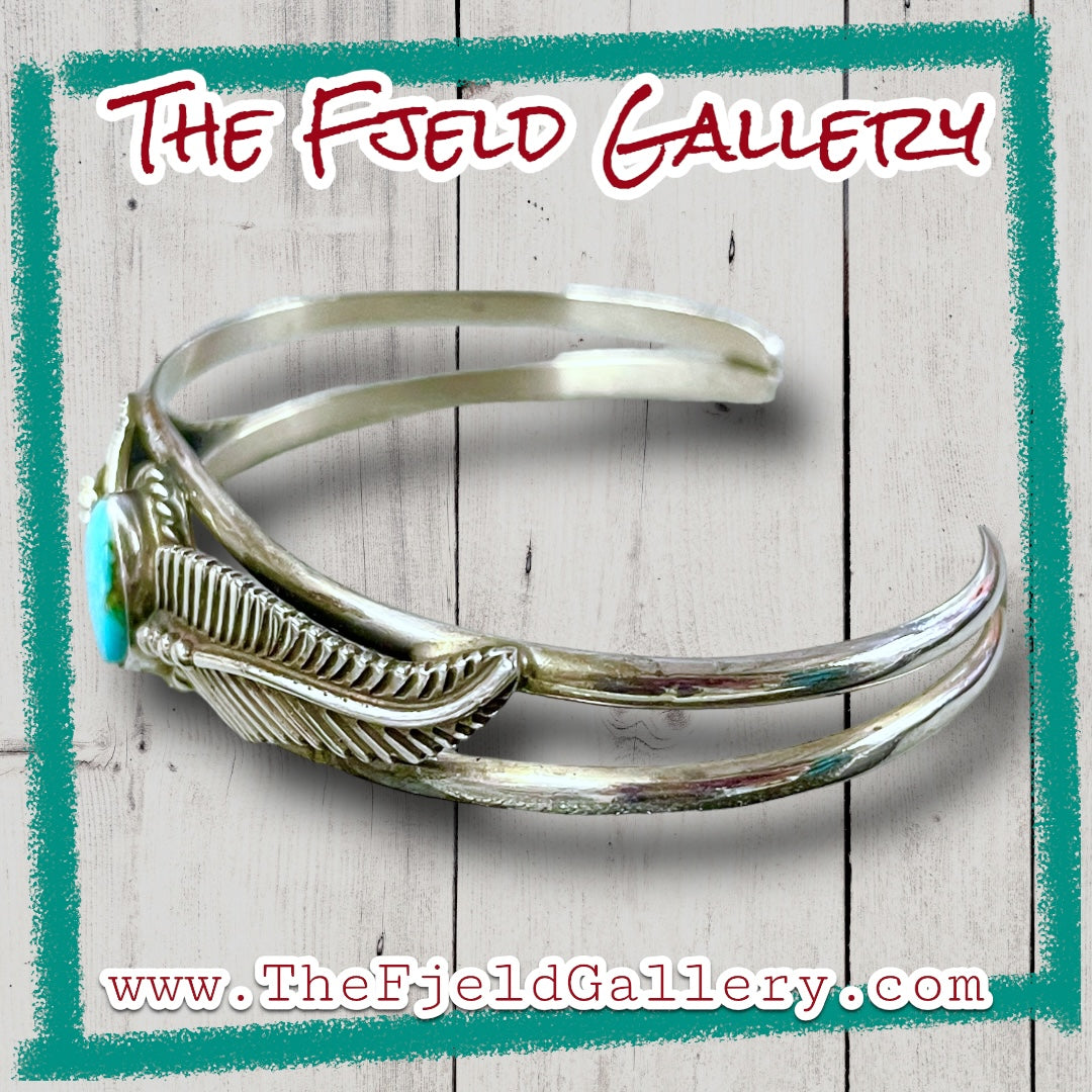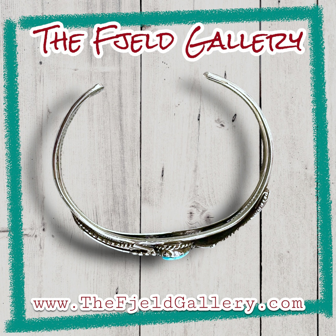 Native American Turquoise Double Leaf Sterling Silver Cuff Bracelet