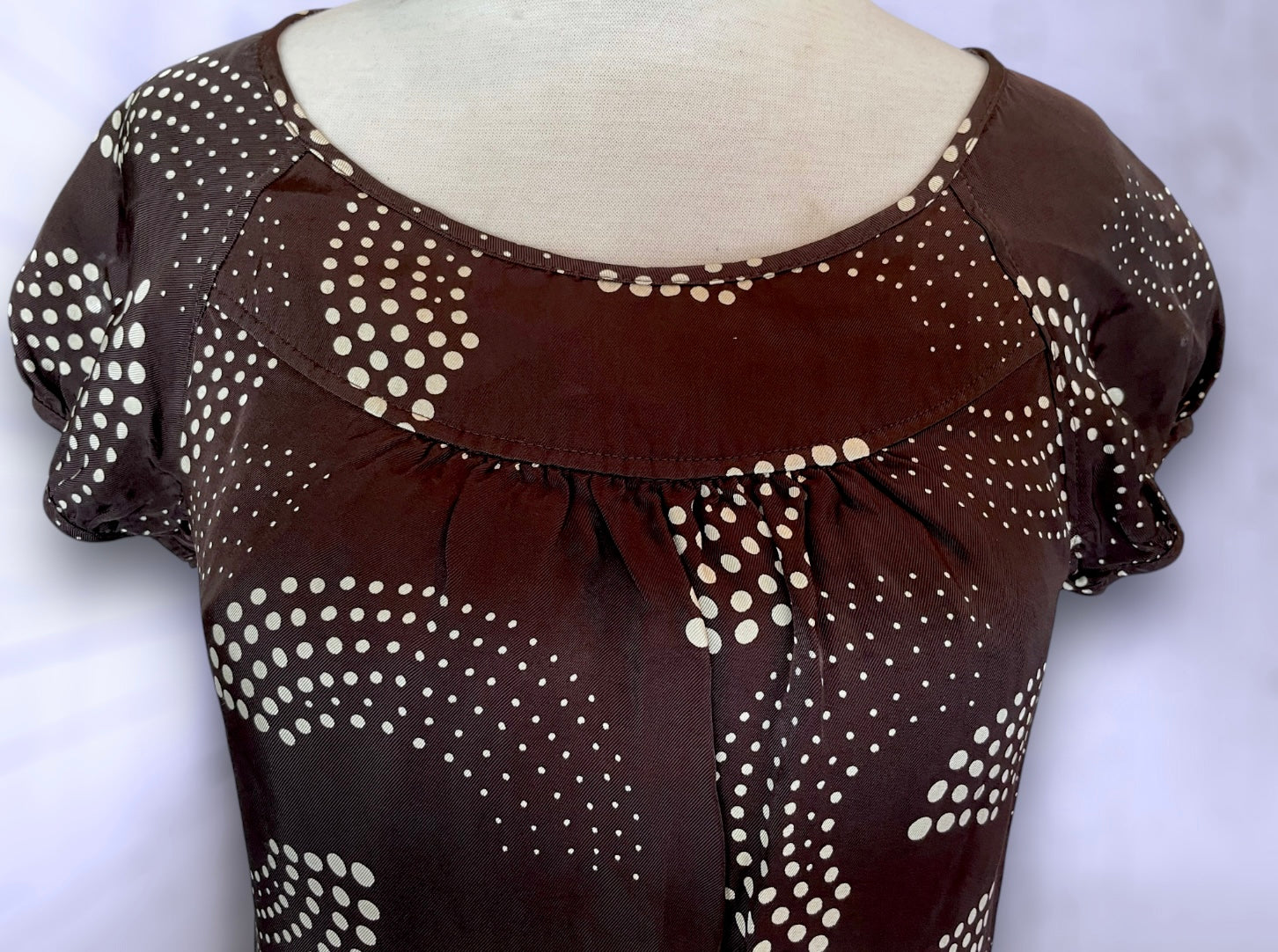Retro 1960’s Brown & Cream Abstract Polkadot Print Short Dress
