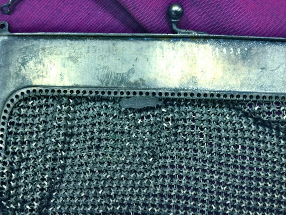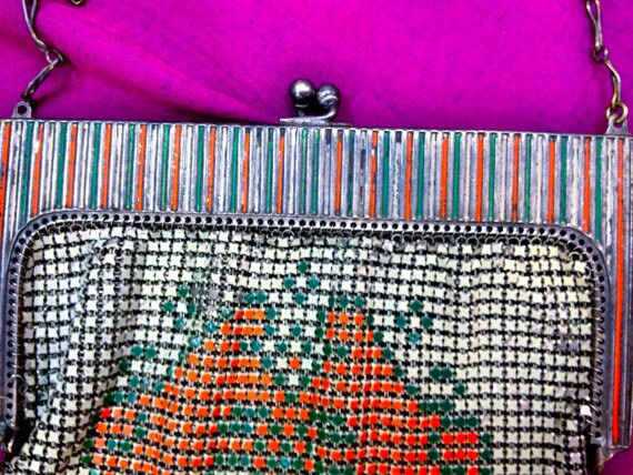 SALE Antique 1920's Whiting & Davis Enamel Art Deco Metal Mesh Purse