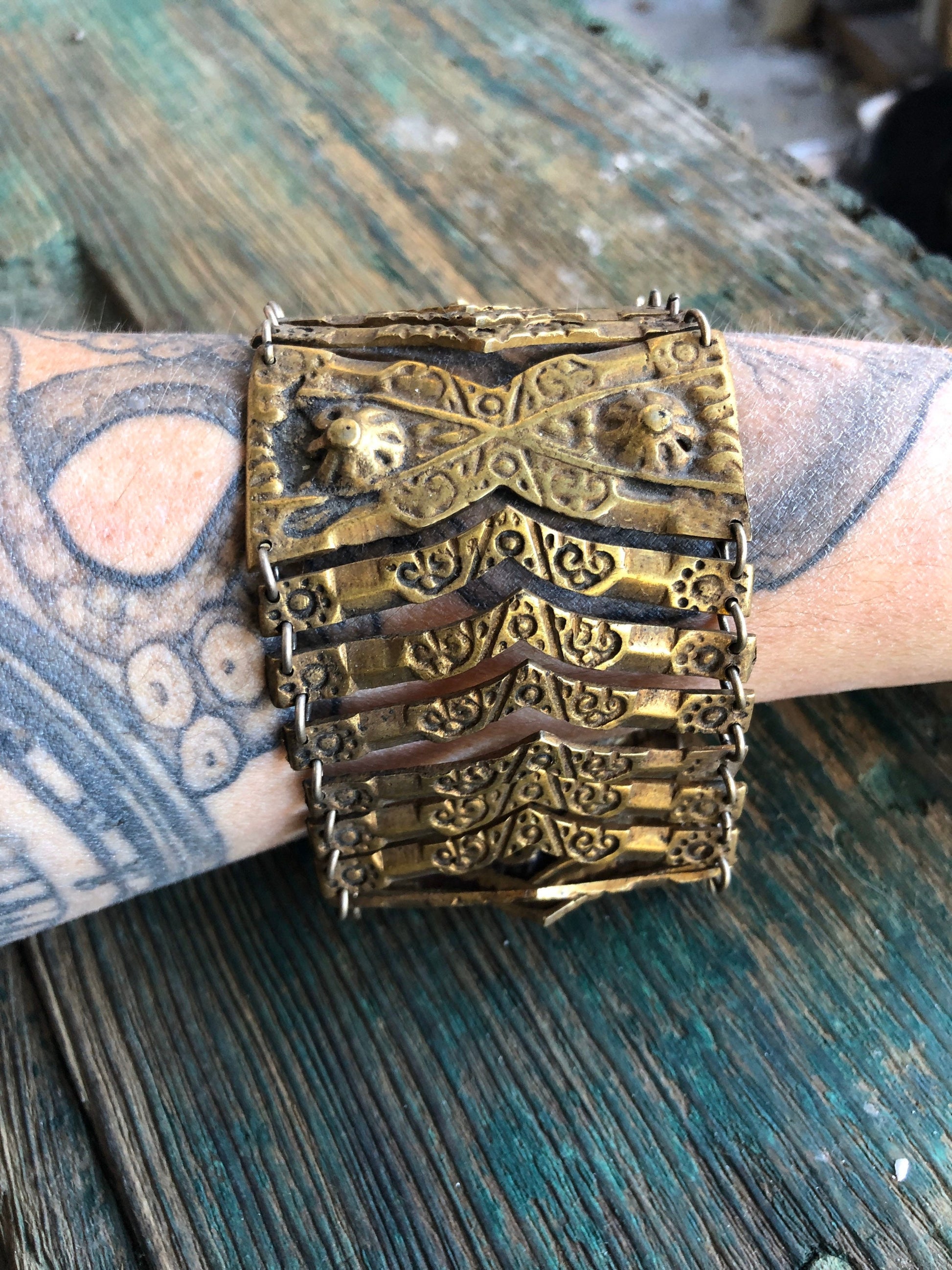 SALE Antique Barbaric Brass Pin Hinged Link Bracelet