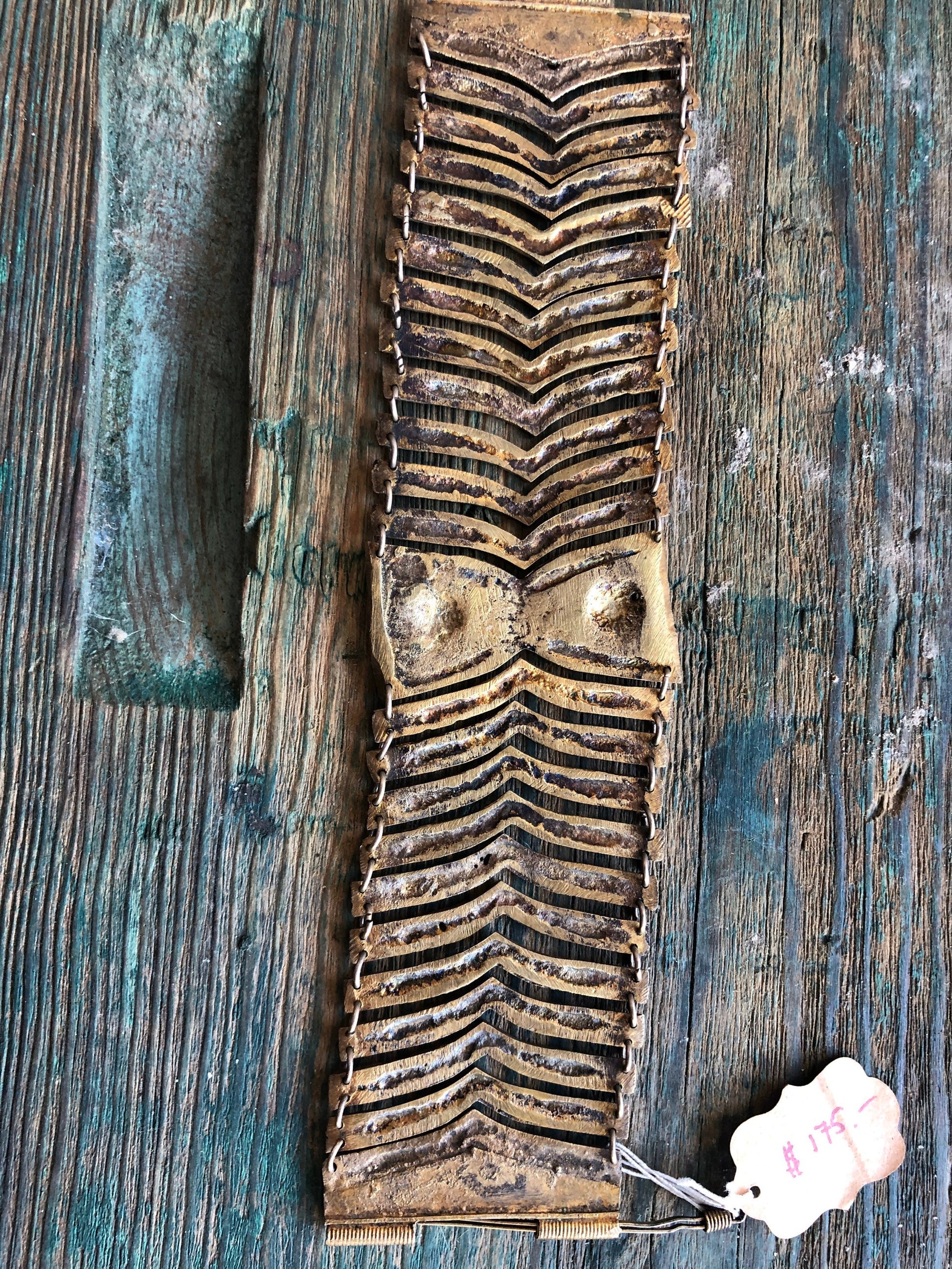 Antique Barbaric Brass Pin Hinged Link Bracelet