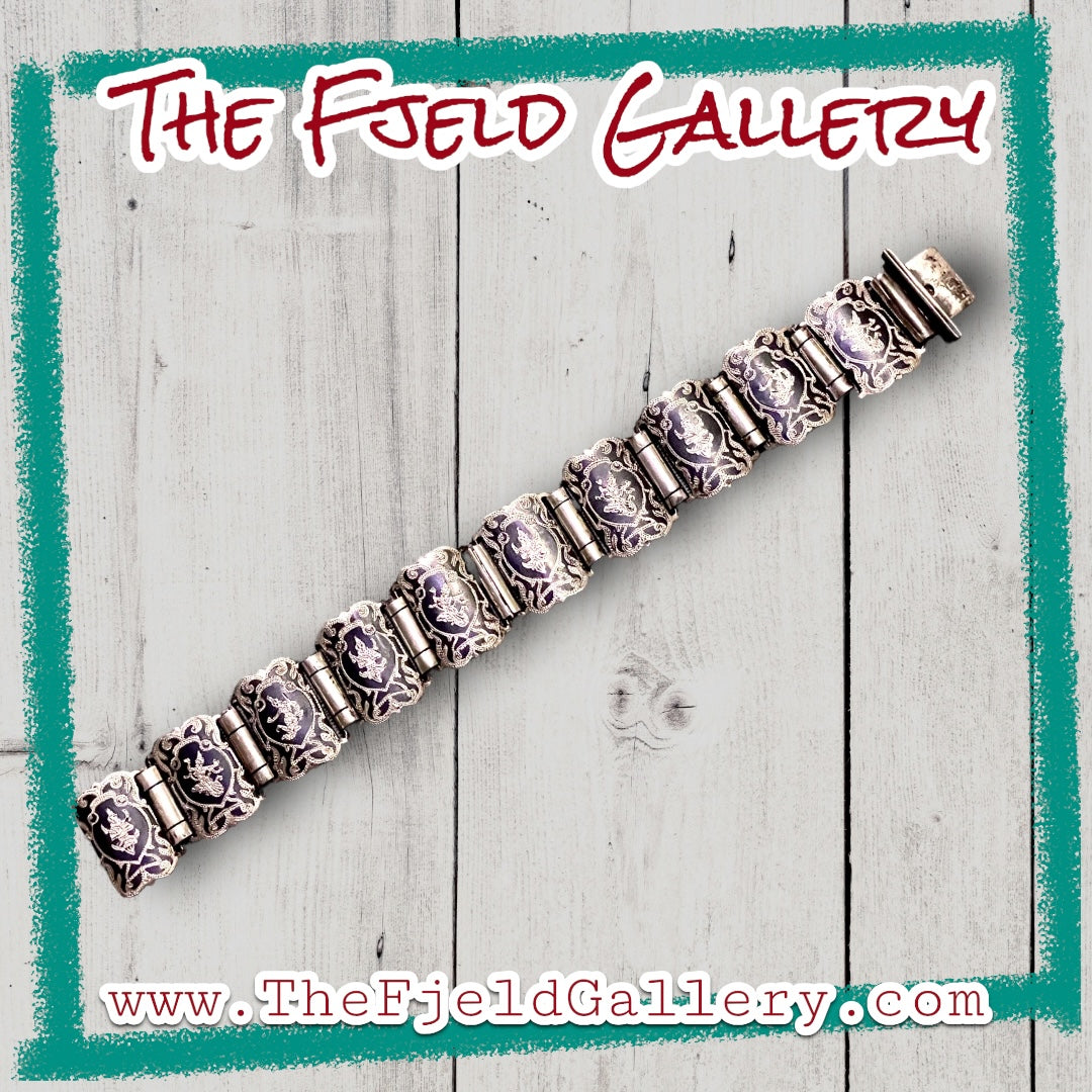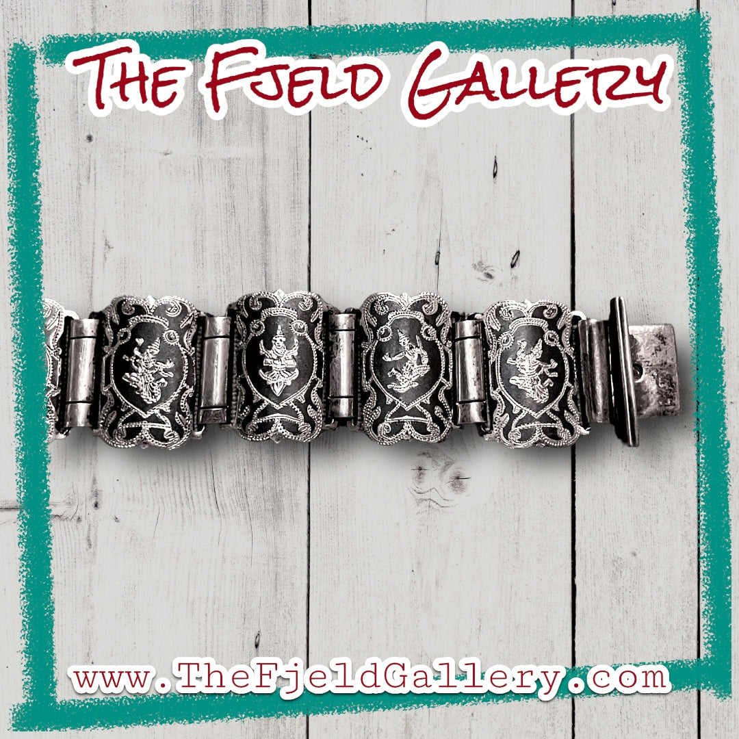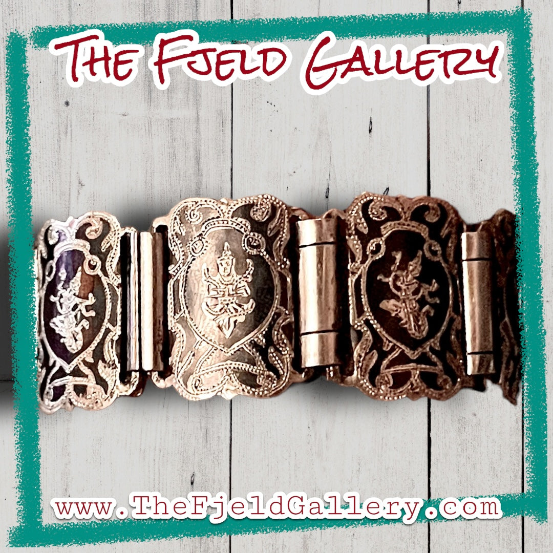 Siam Sterling Silver Nielloware Vintage Gods & Goddess Black Enamel Vintage Panel Bracelet