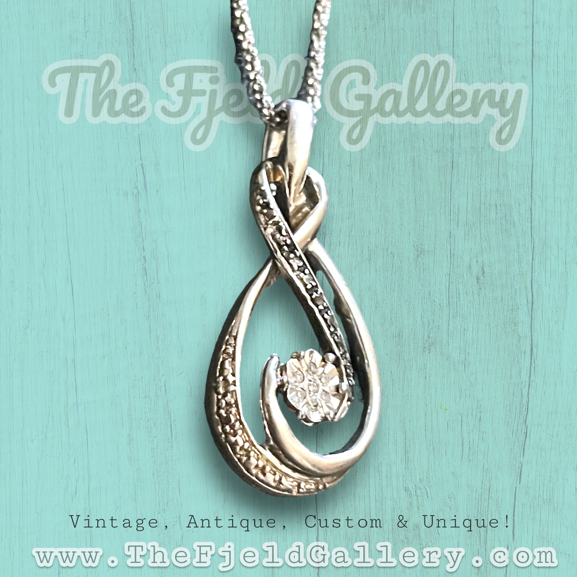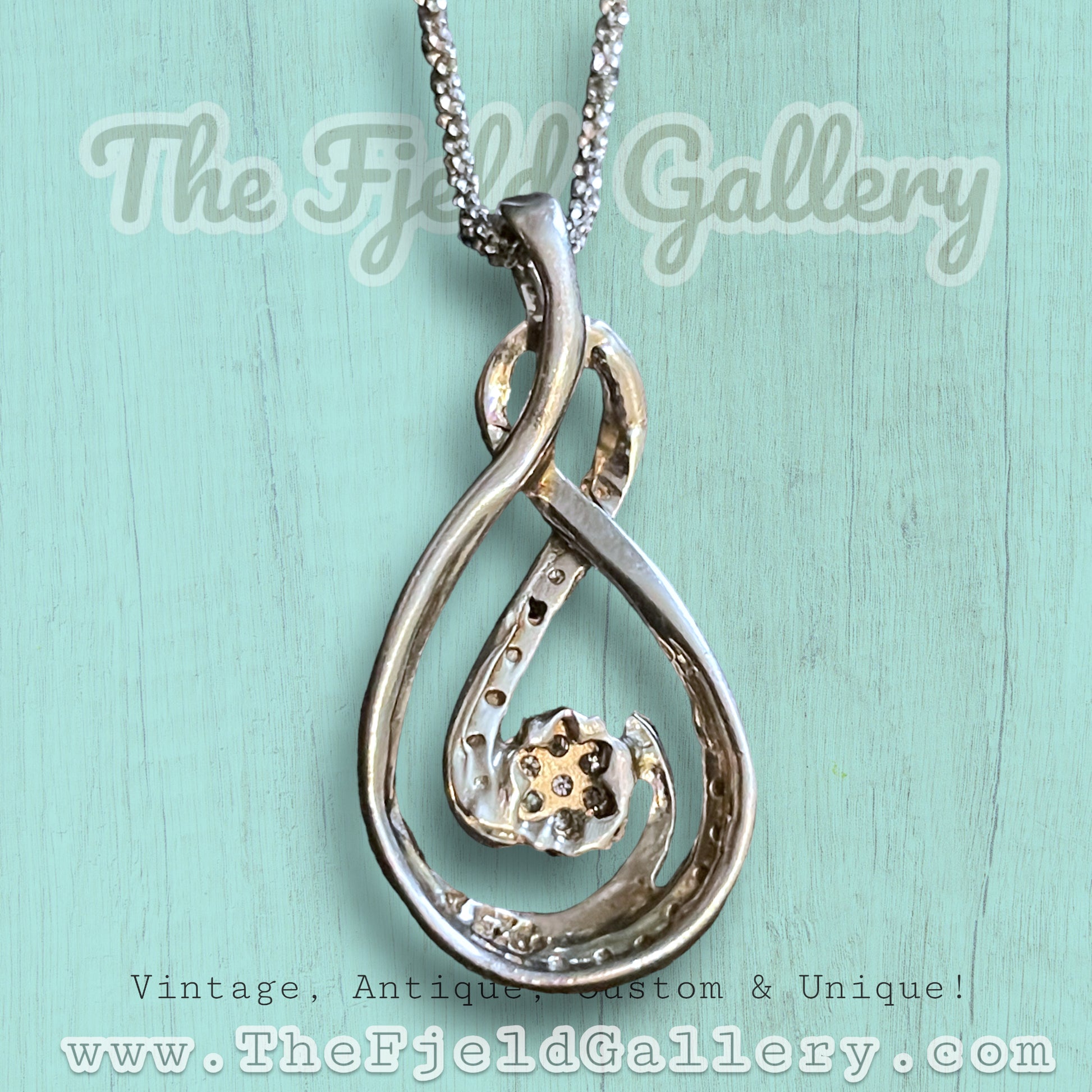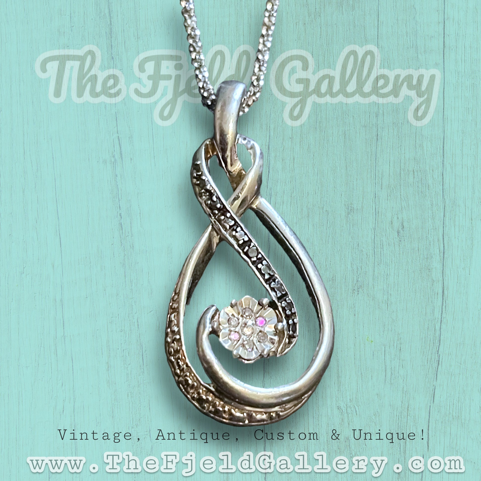 Beautiful vintage black & white diamond necklace pendant on a sterling chain.