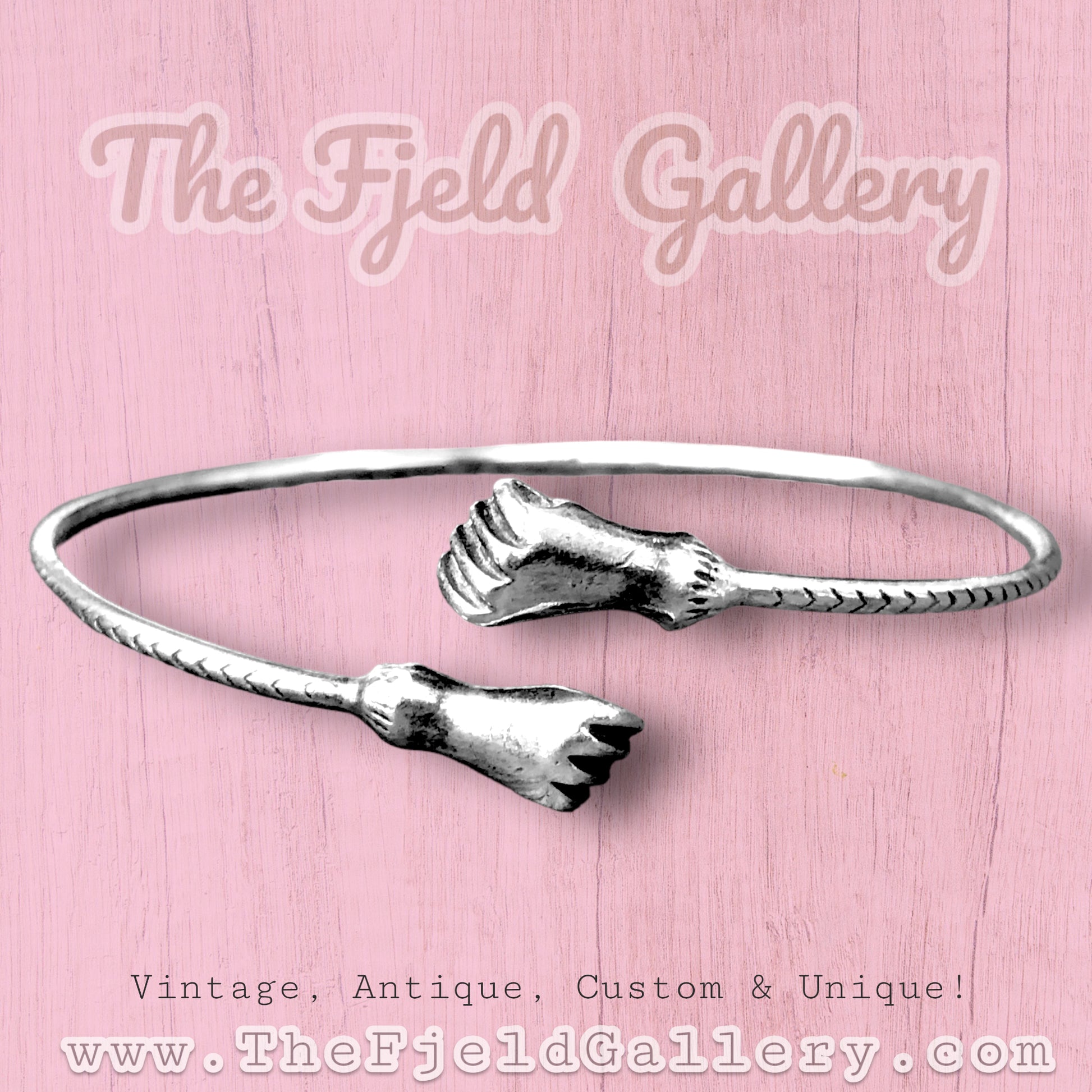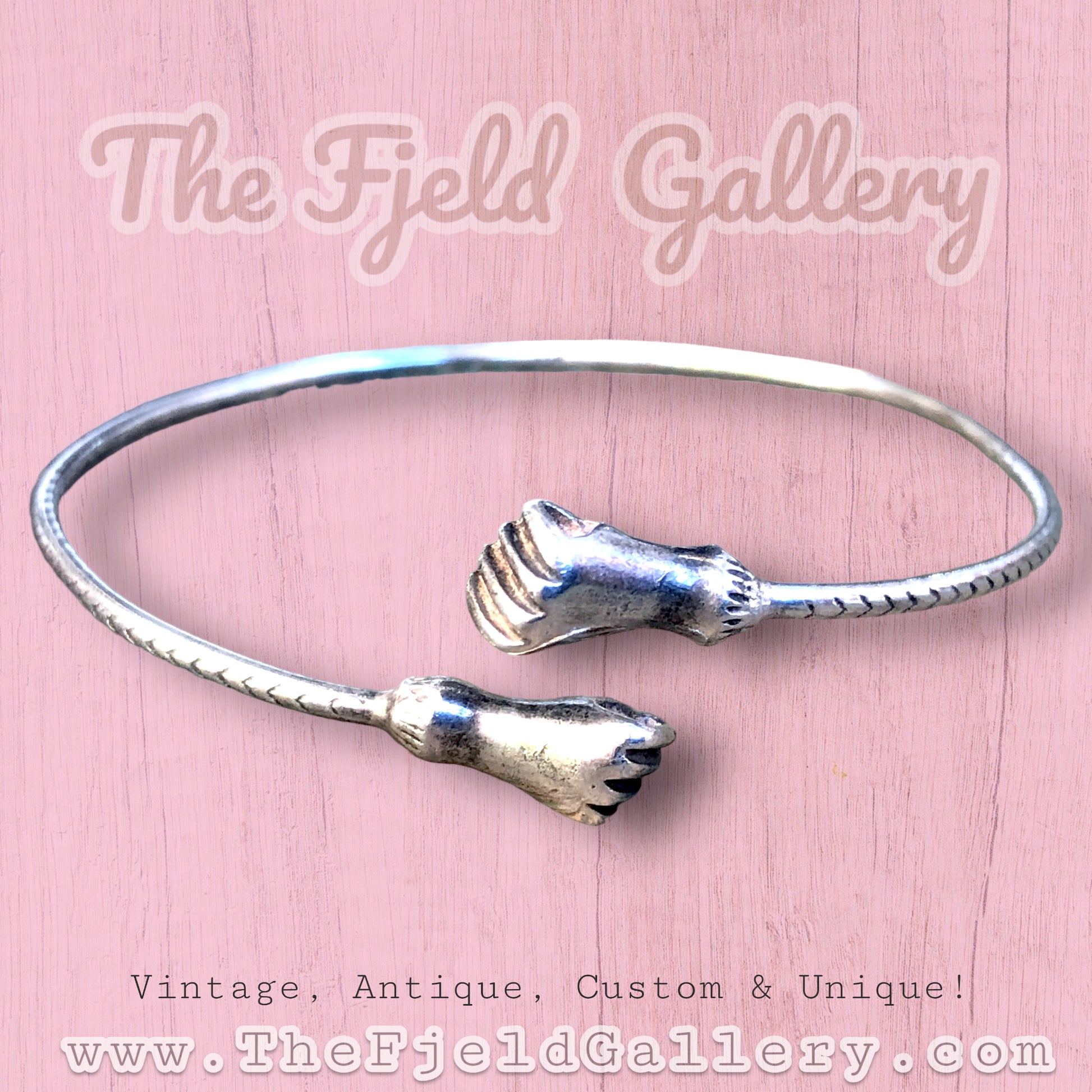 Unique vintage sterling silver hands bypass bracelet c.1930