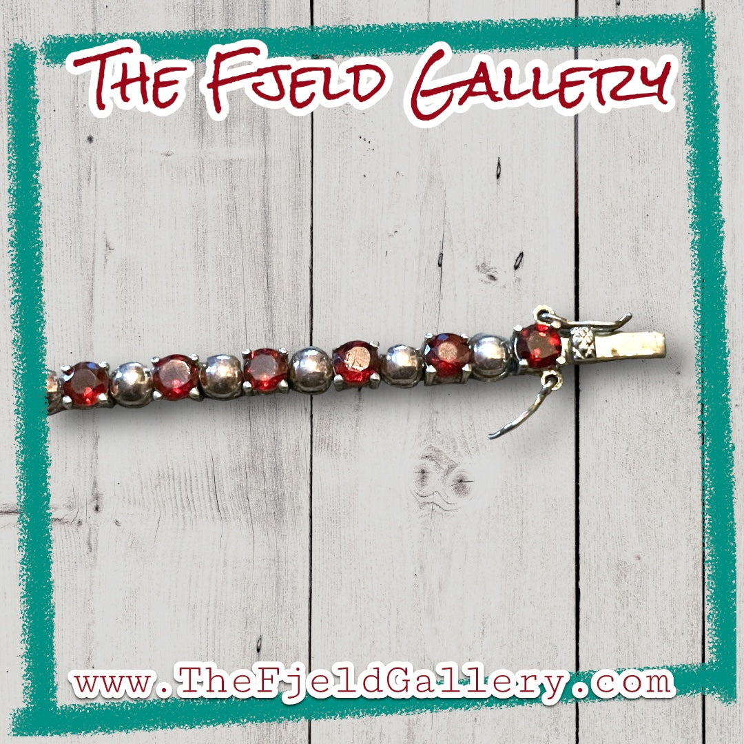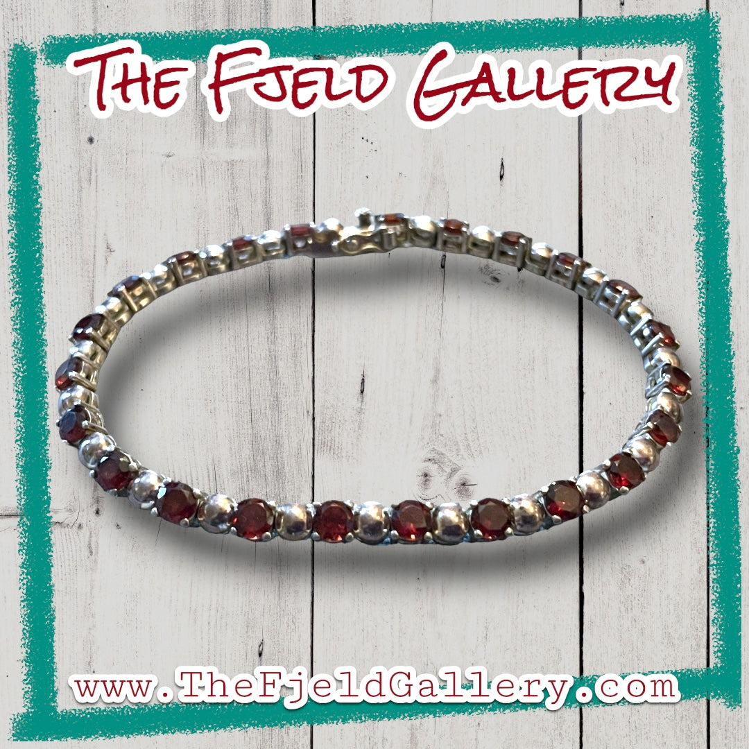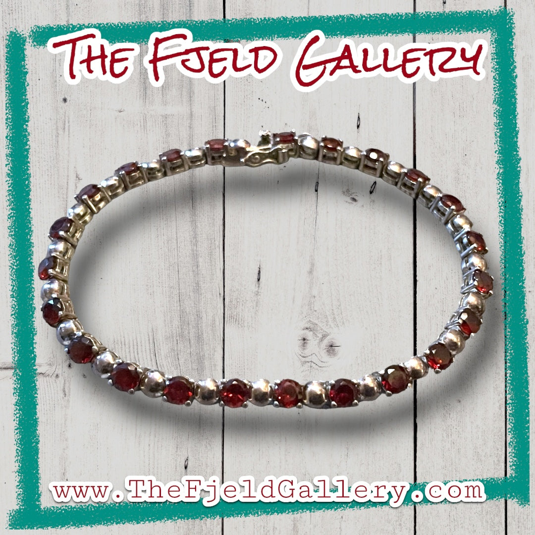 Vintage sterling silver and garnet gemstone tennis bracelet.