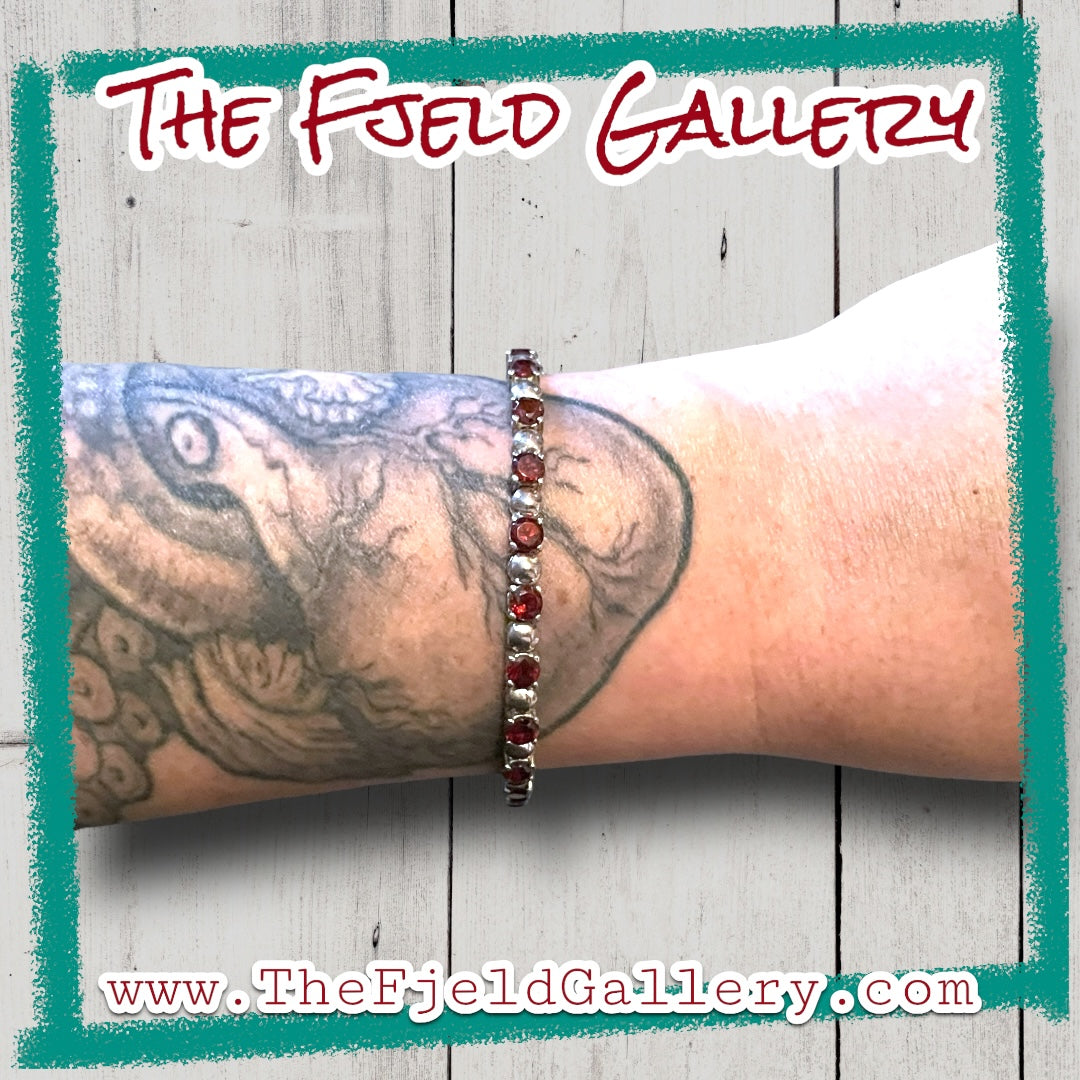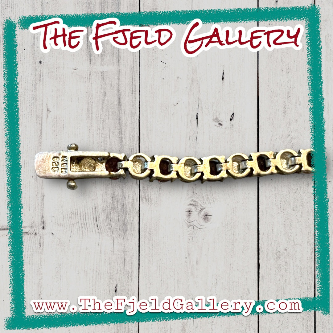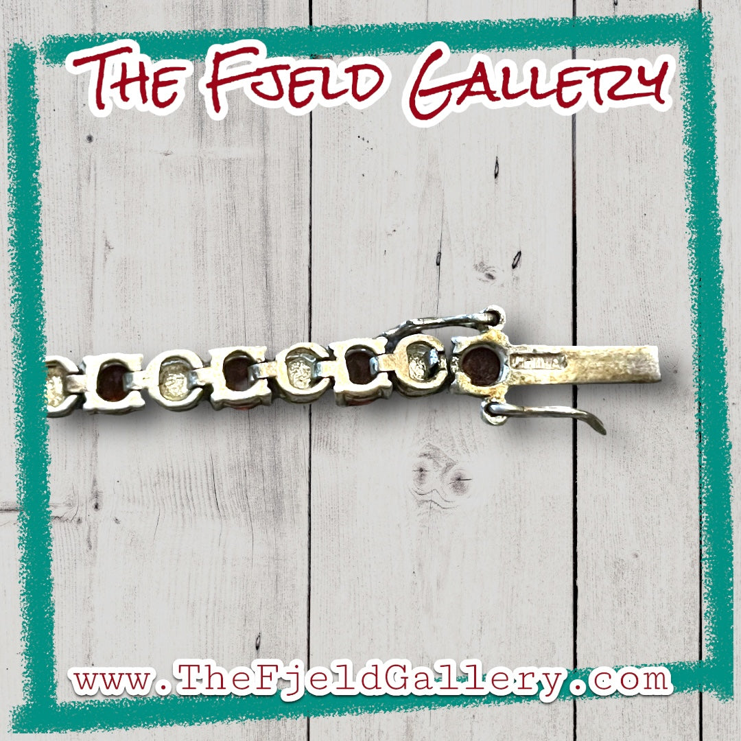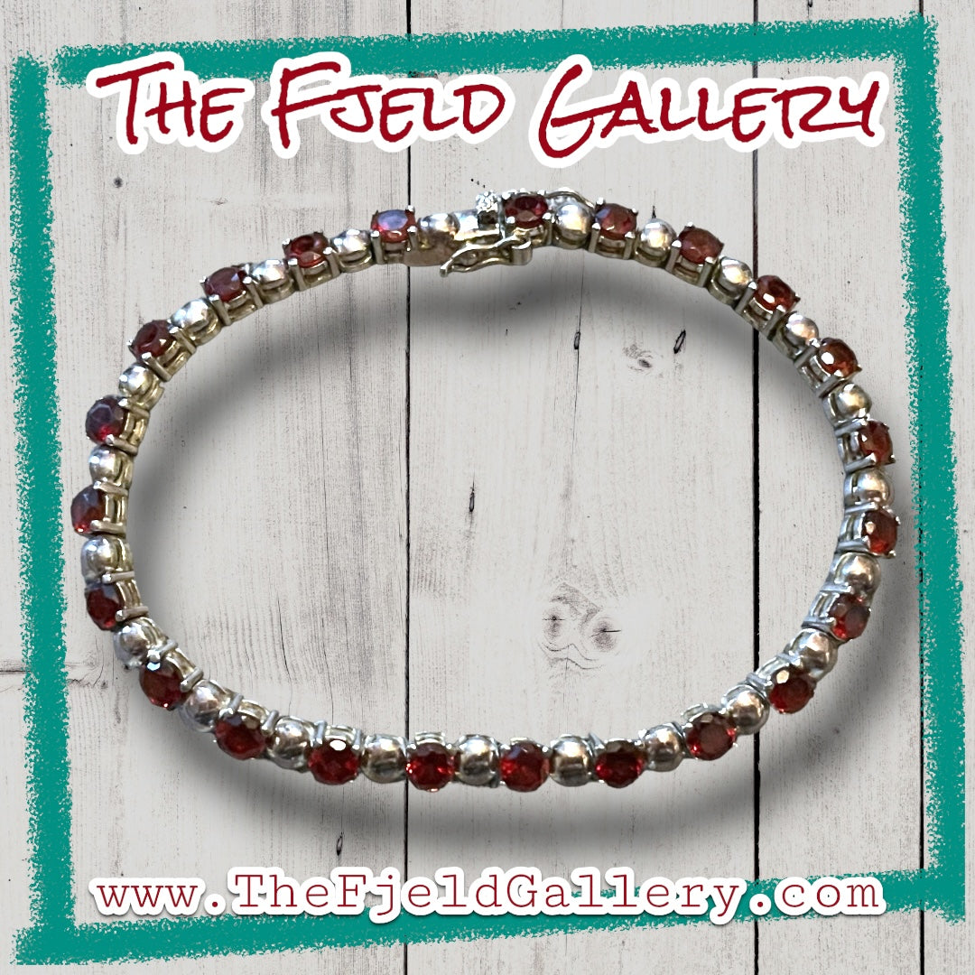 Vintage sterling silver and garnet gemstone tennis bracelet.