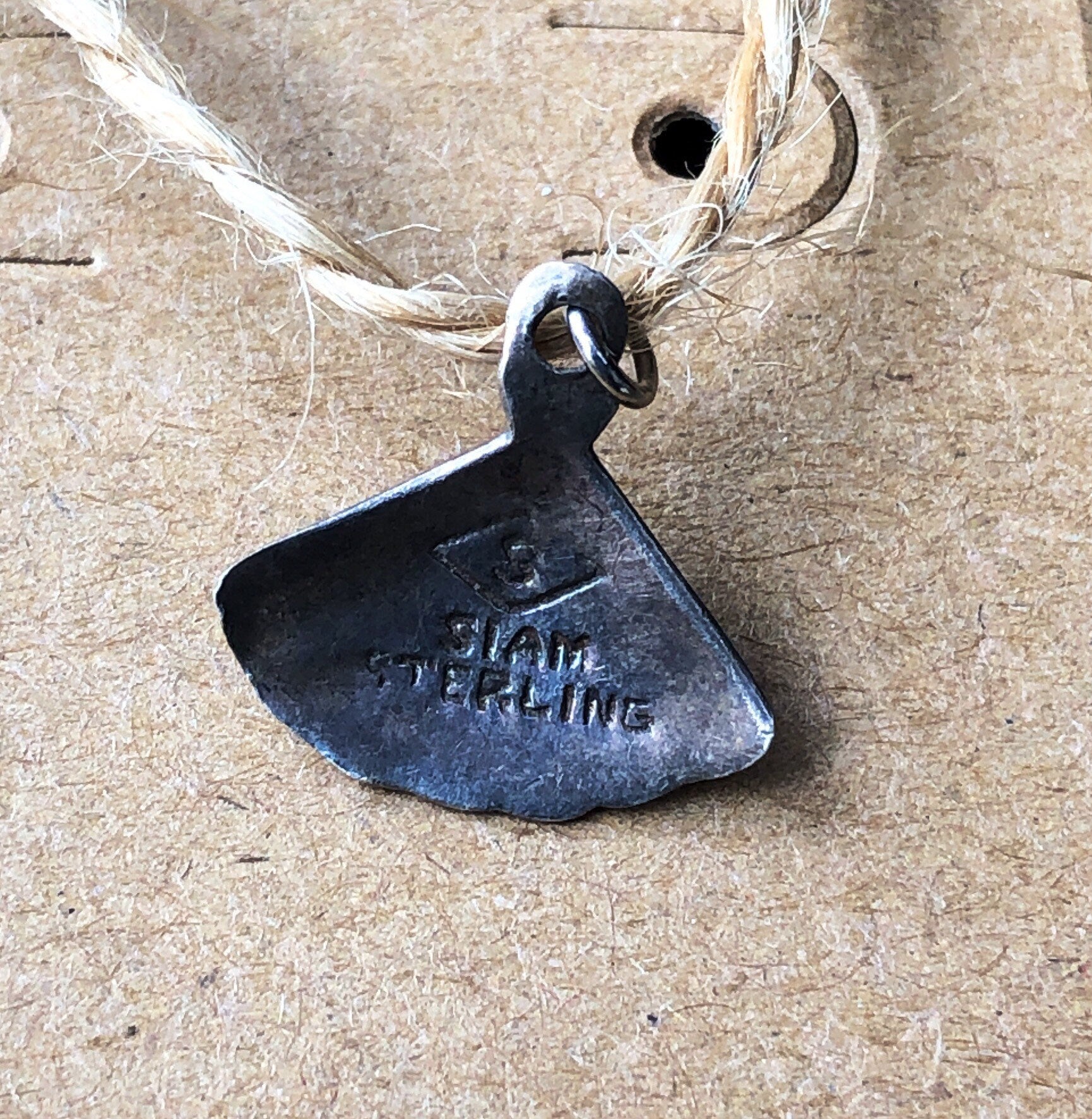 Sterling Silver Siam Nielloware 1940 Fan Charm Pendant
