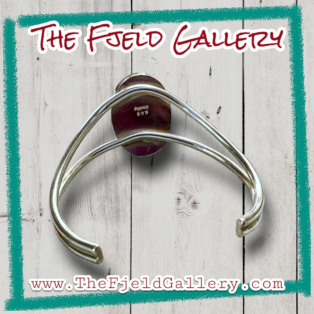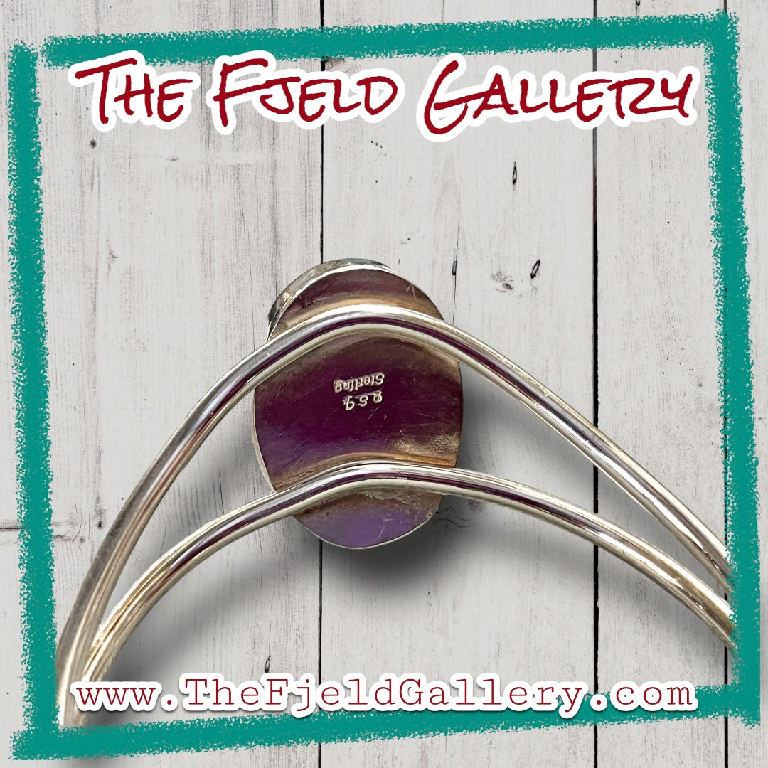 Tigers Eye Gemstone Sterling Silver Chevron Cuff Bracelet