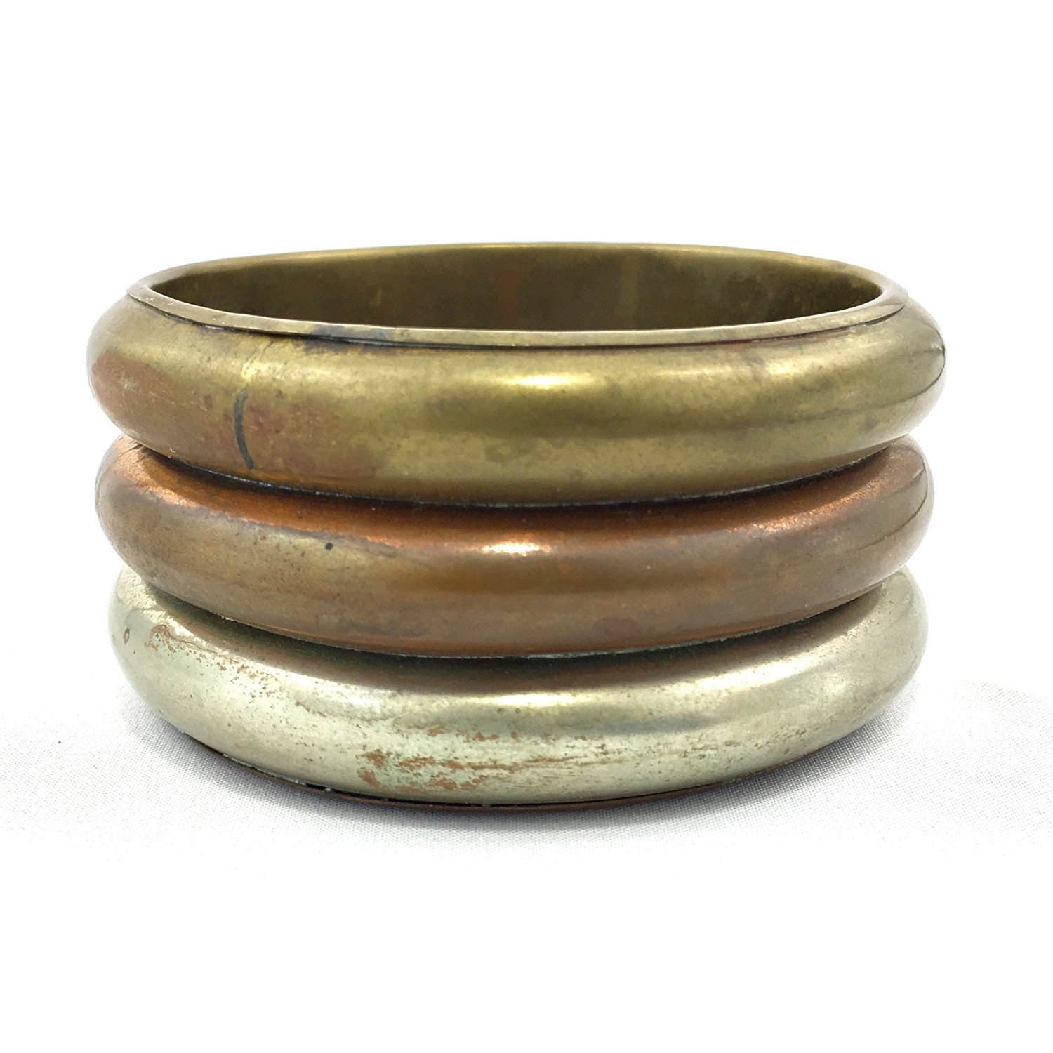 Tri-Metal Chunky Brass Copper Silver Bangle