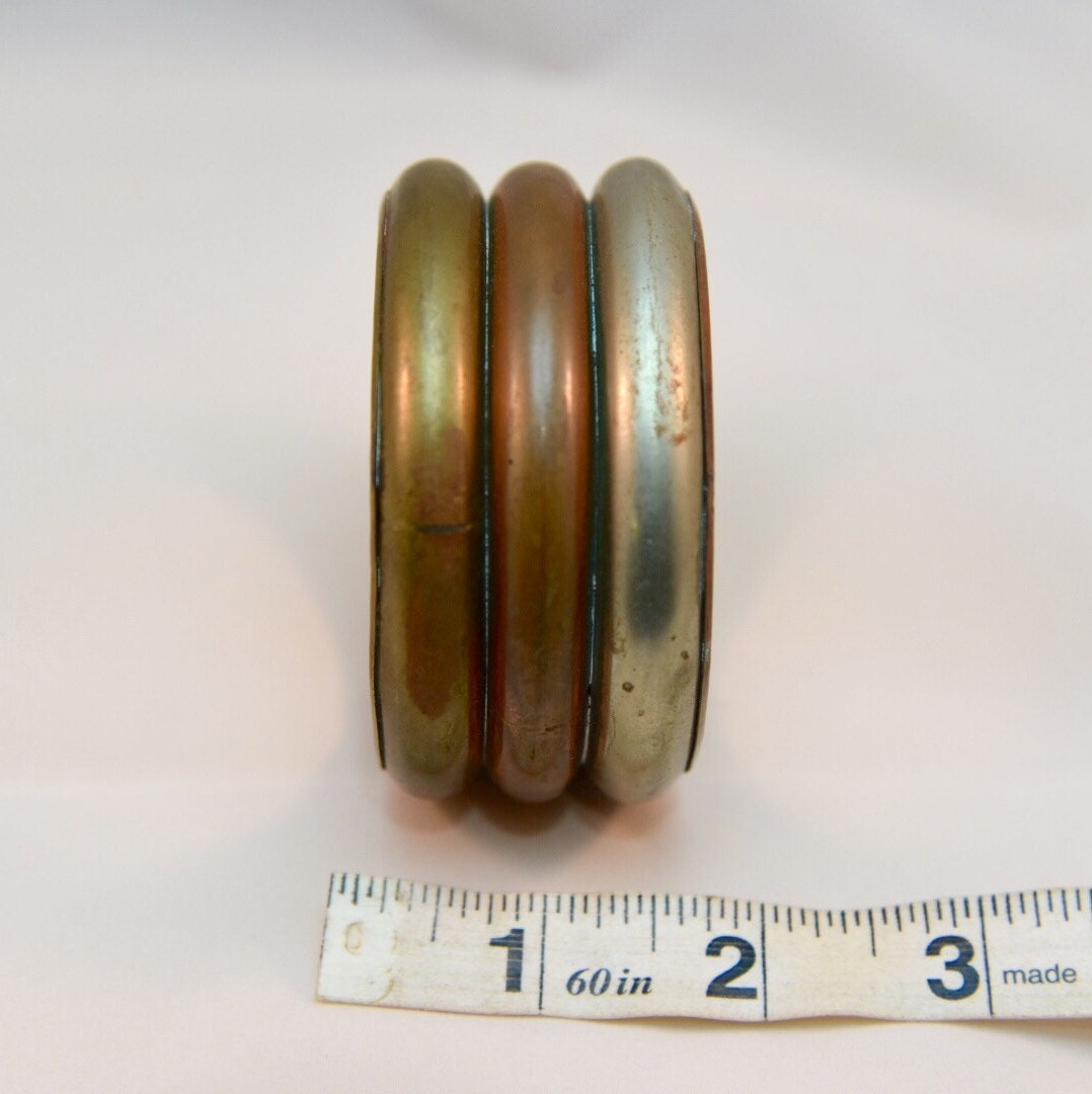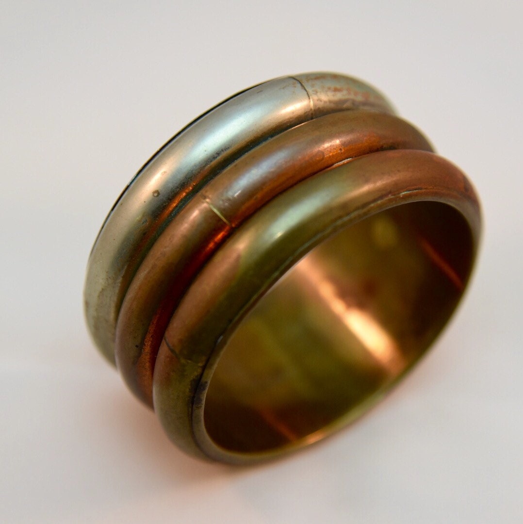 Super cool funky vintage 1970's tri-metal copper, brass and silver chunky bangle. Be the boho baby, baby!