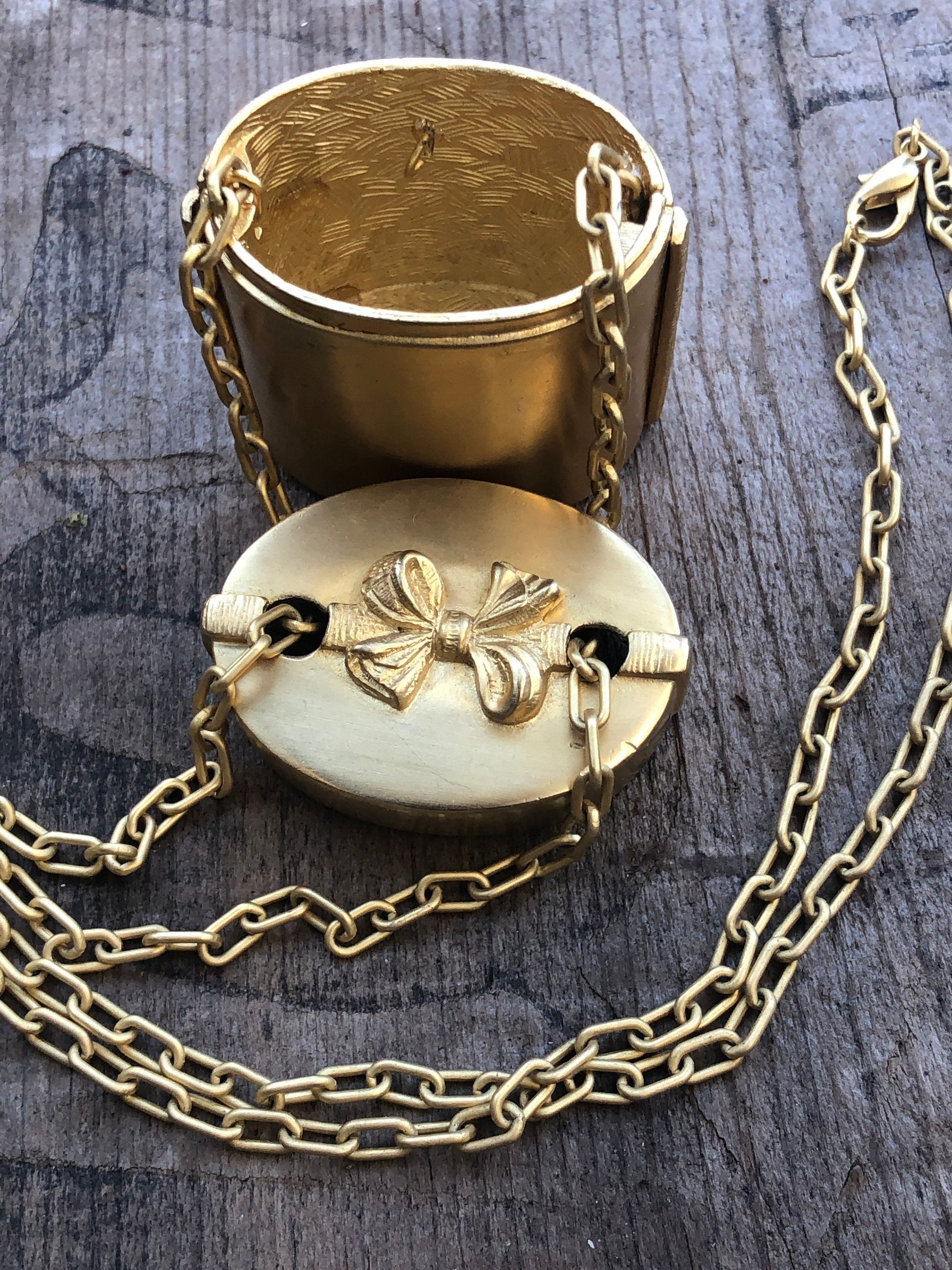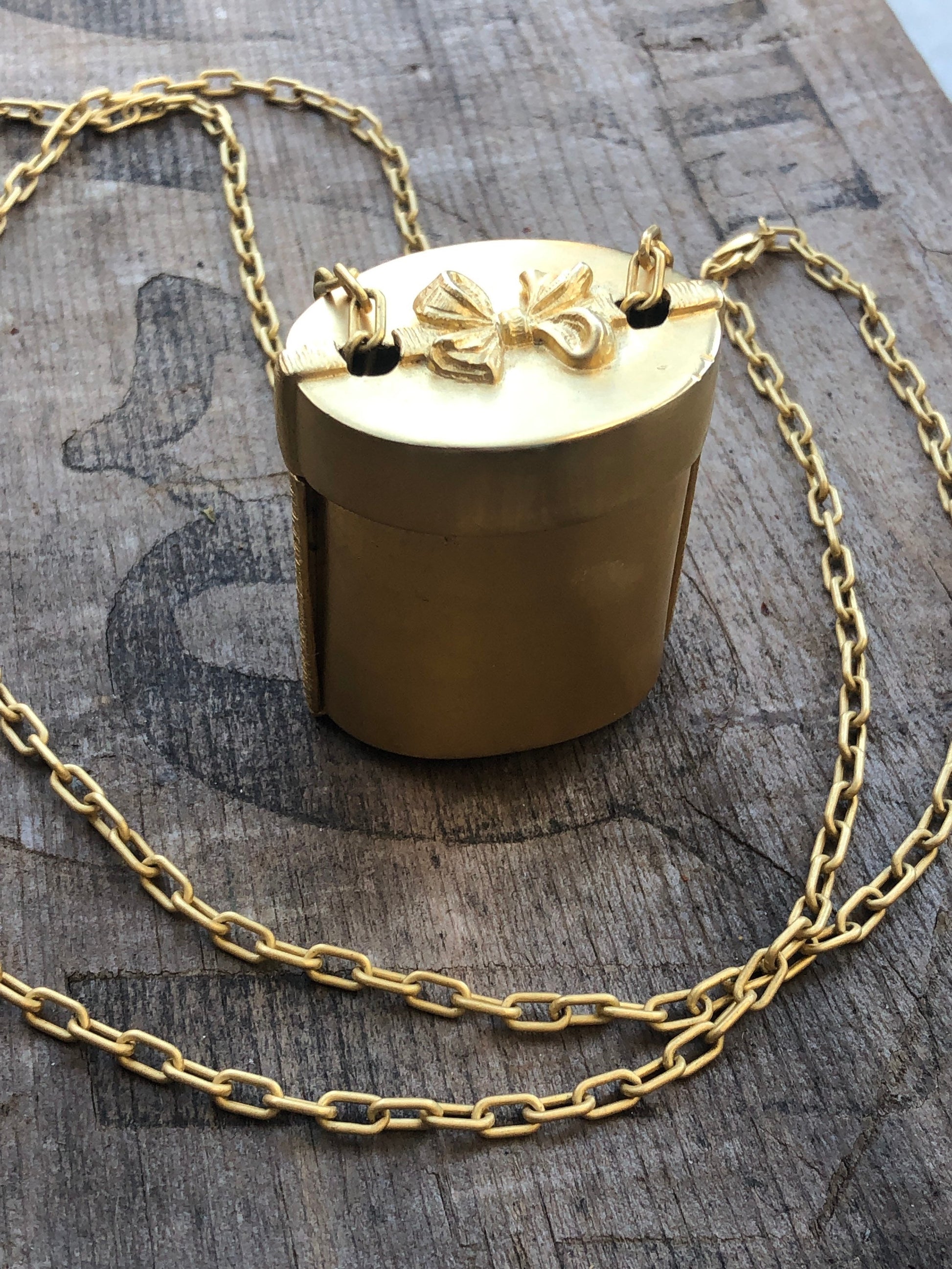 Unique Vintage Gold Opening Gift Box with Bow Necklace