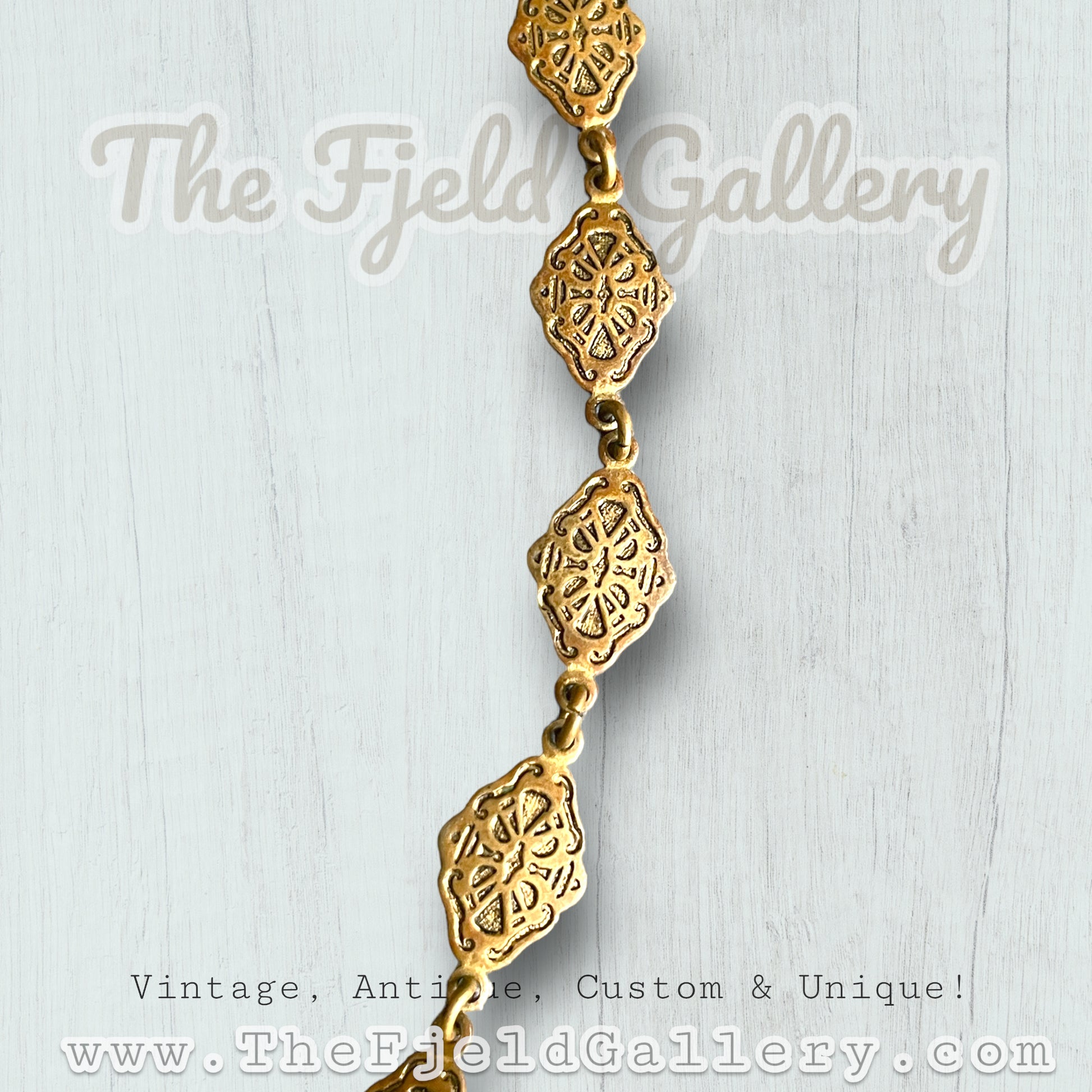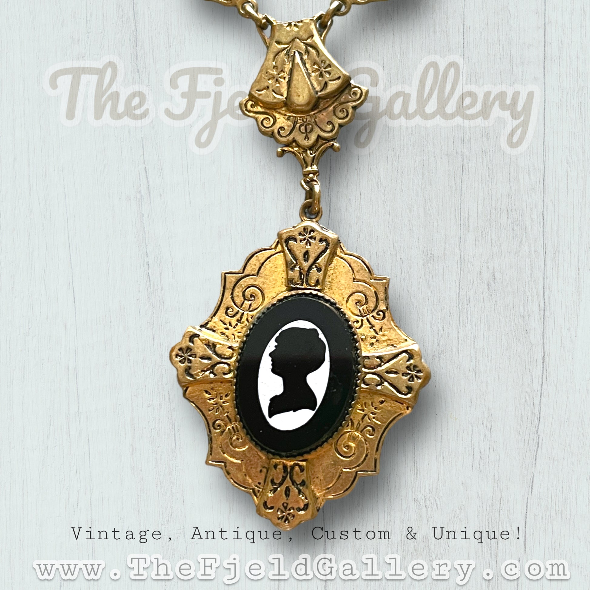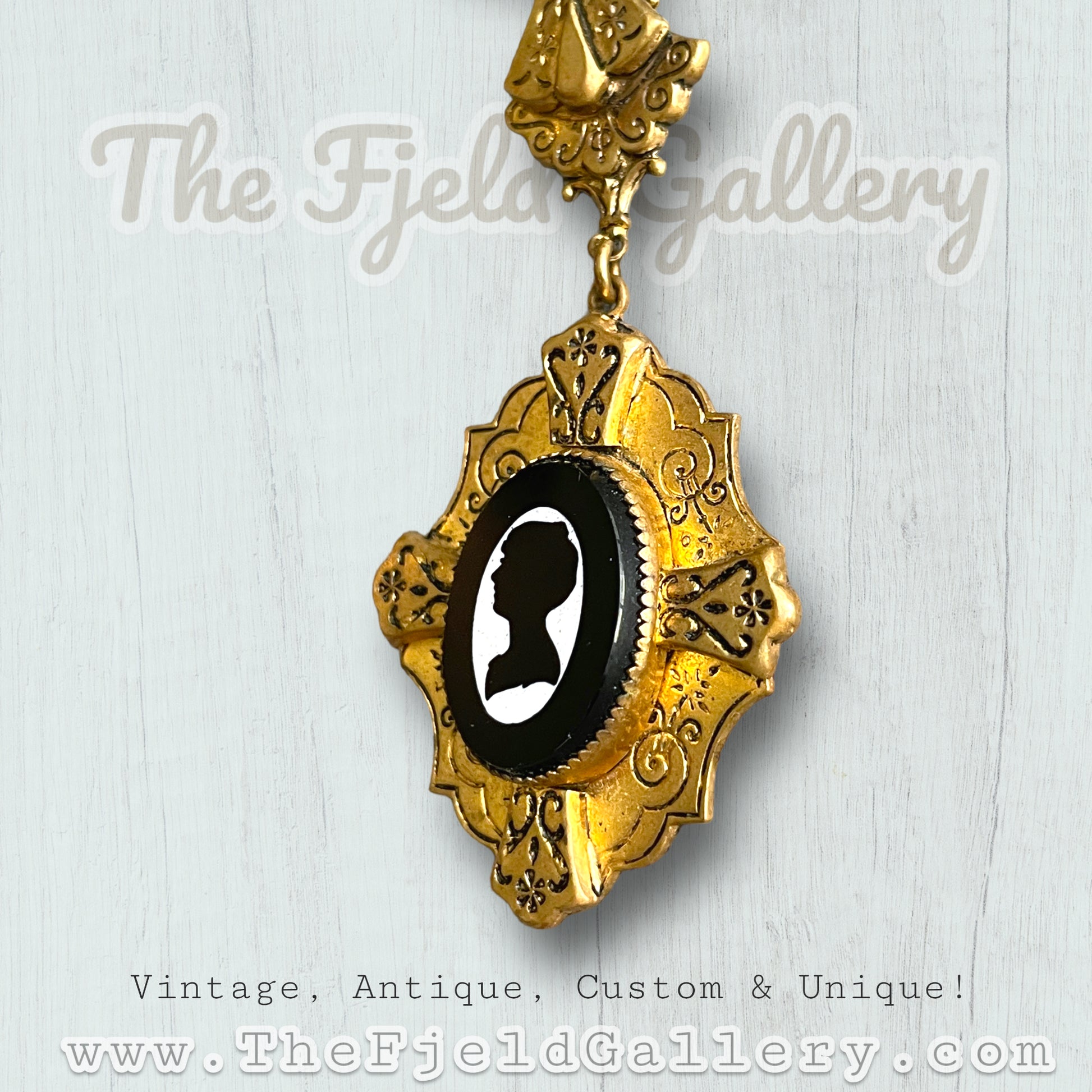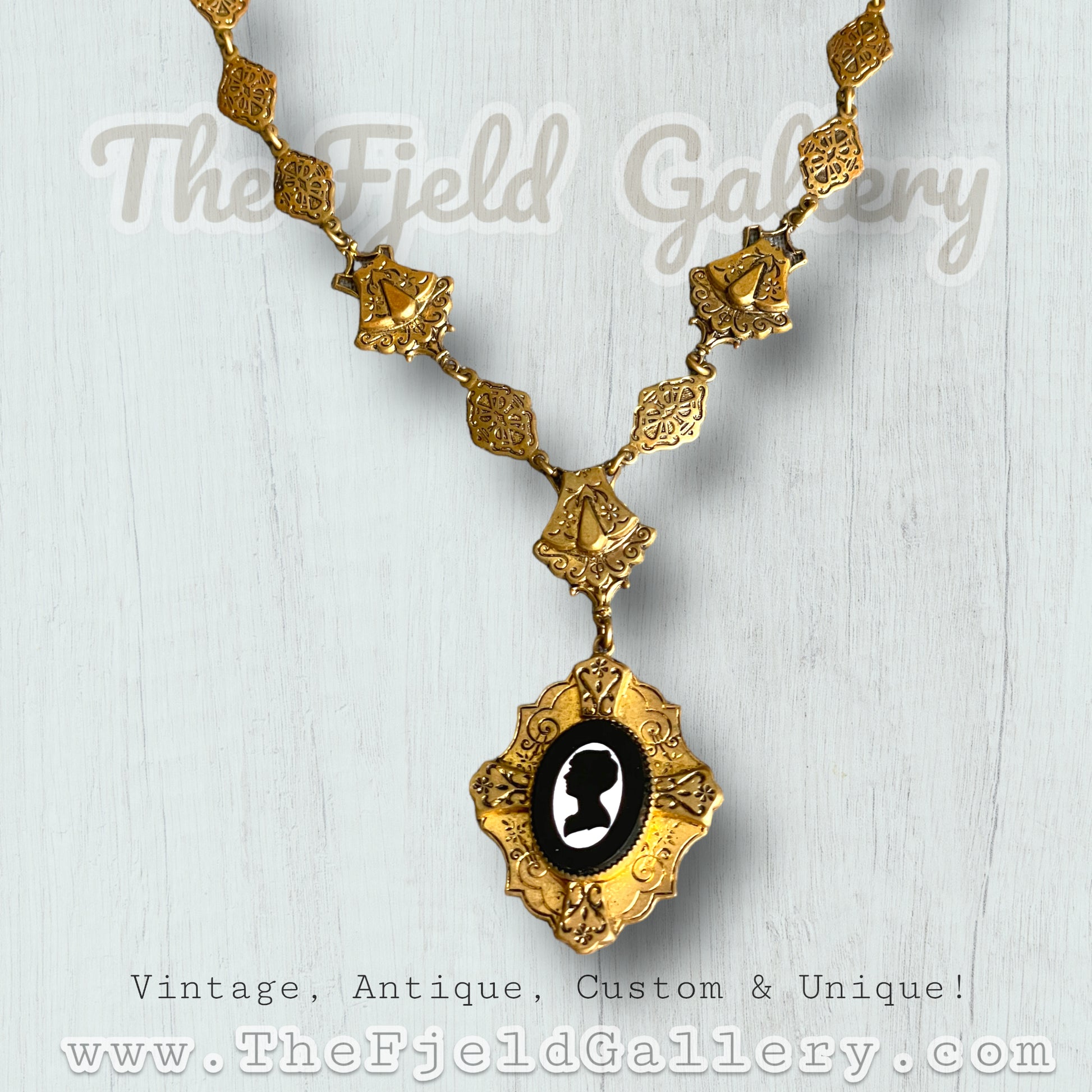 Victorian Mourning Cameo on Gold Embossed Chain Necklace