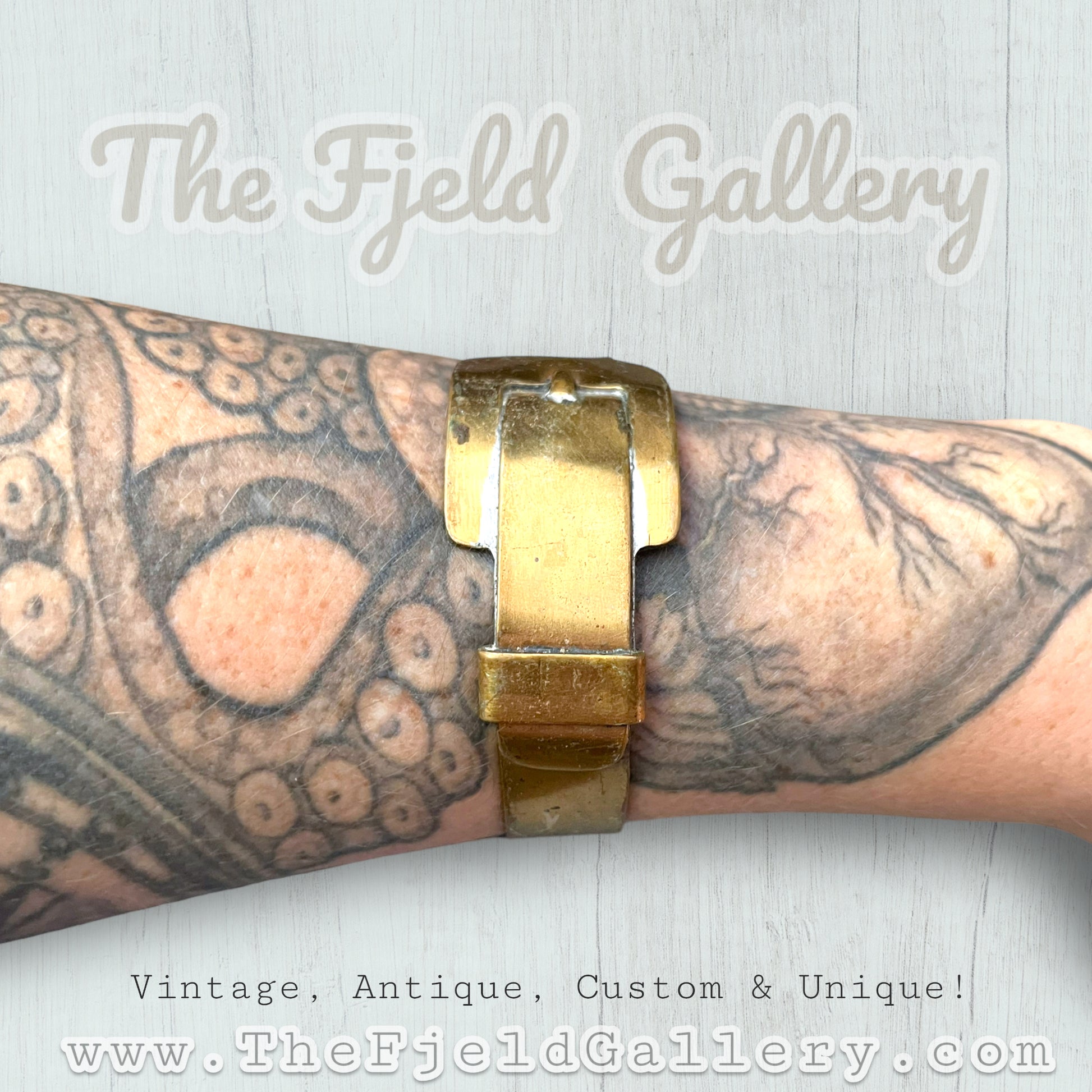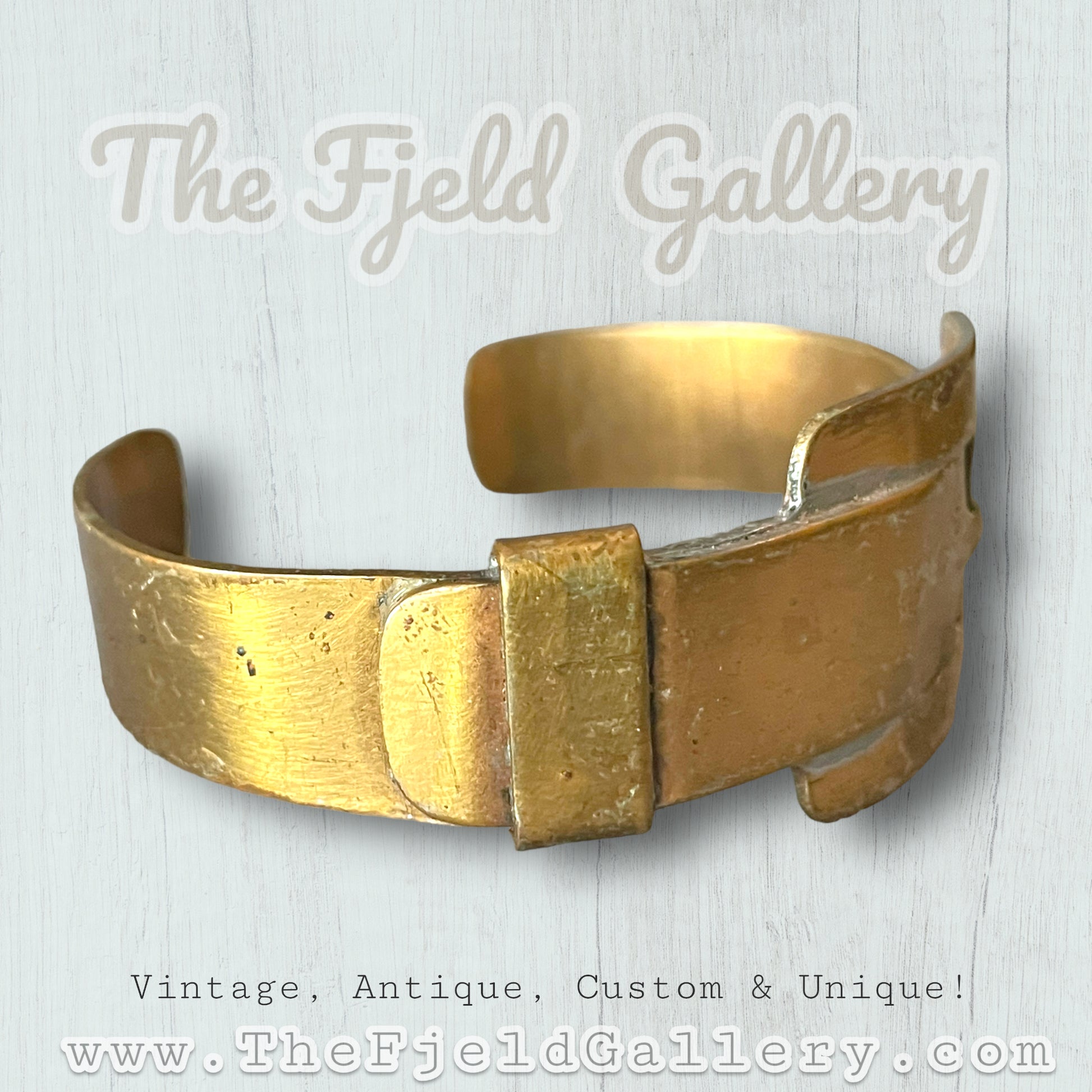 Unique vintage brass belt design cuff bracelet c.1920’s. Excellent condition, no issues.
