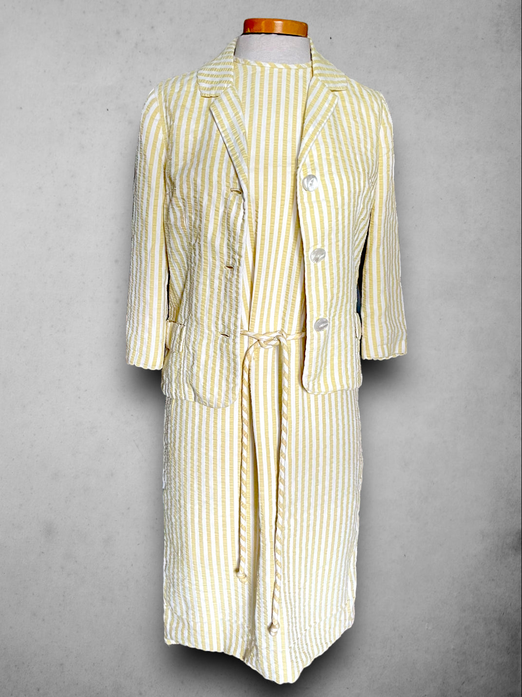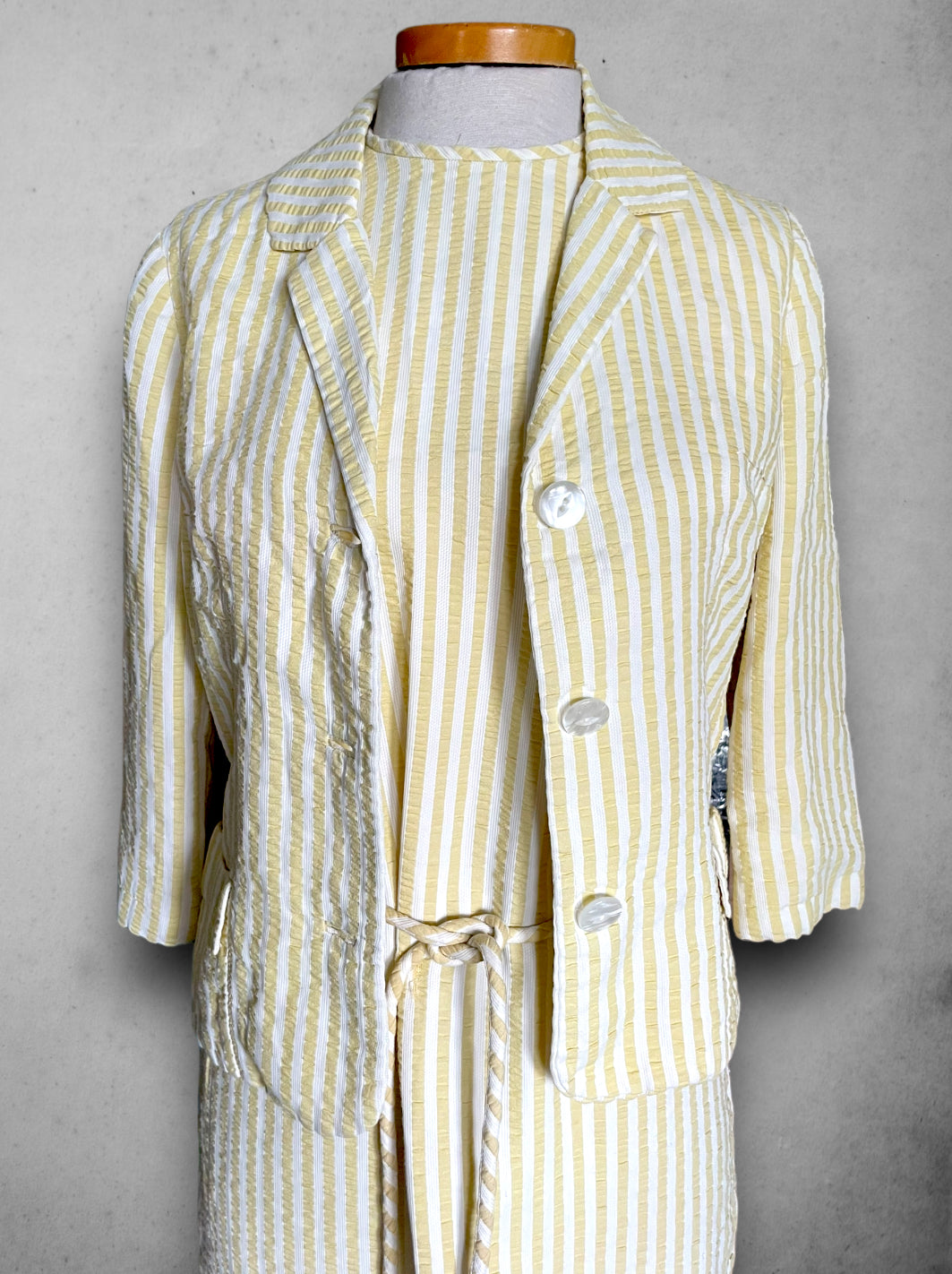 1960’s Yellow Gingham Striped Summer Dress & Blazer Set