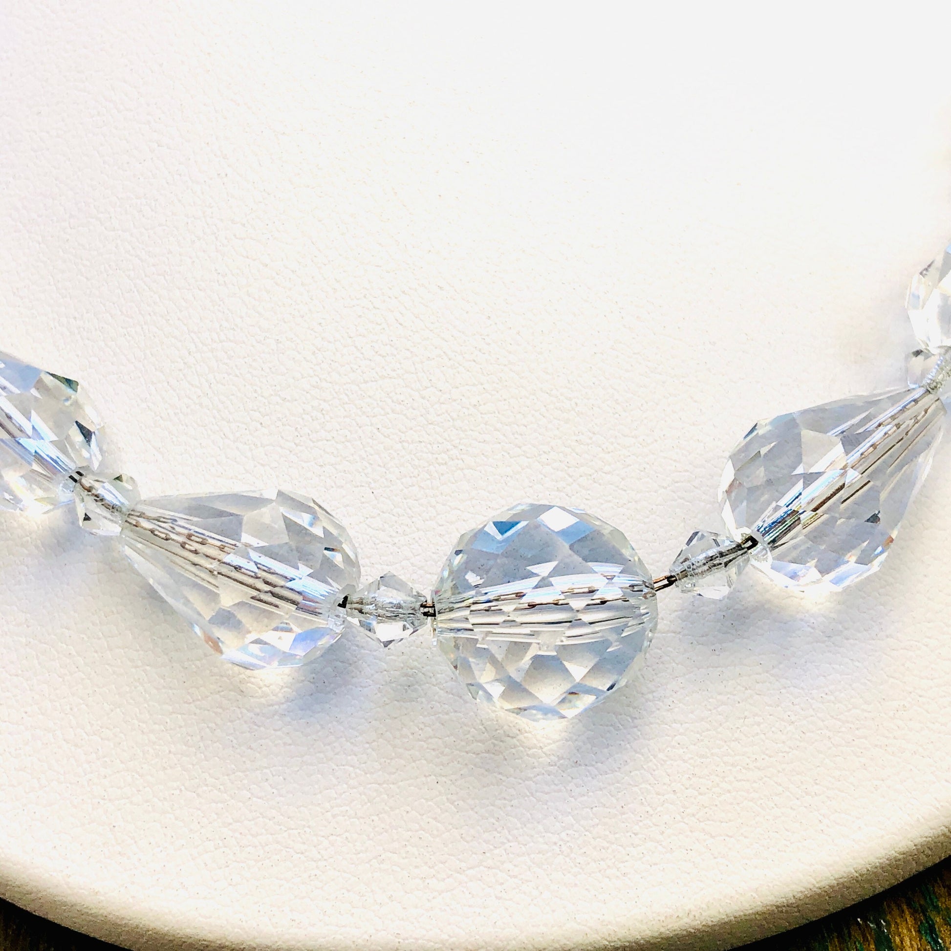 Victorian Sterling Silver Chain Faceted Czech Quartz Crystal Necklace 16” necklace