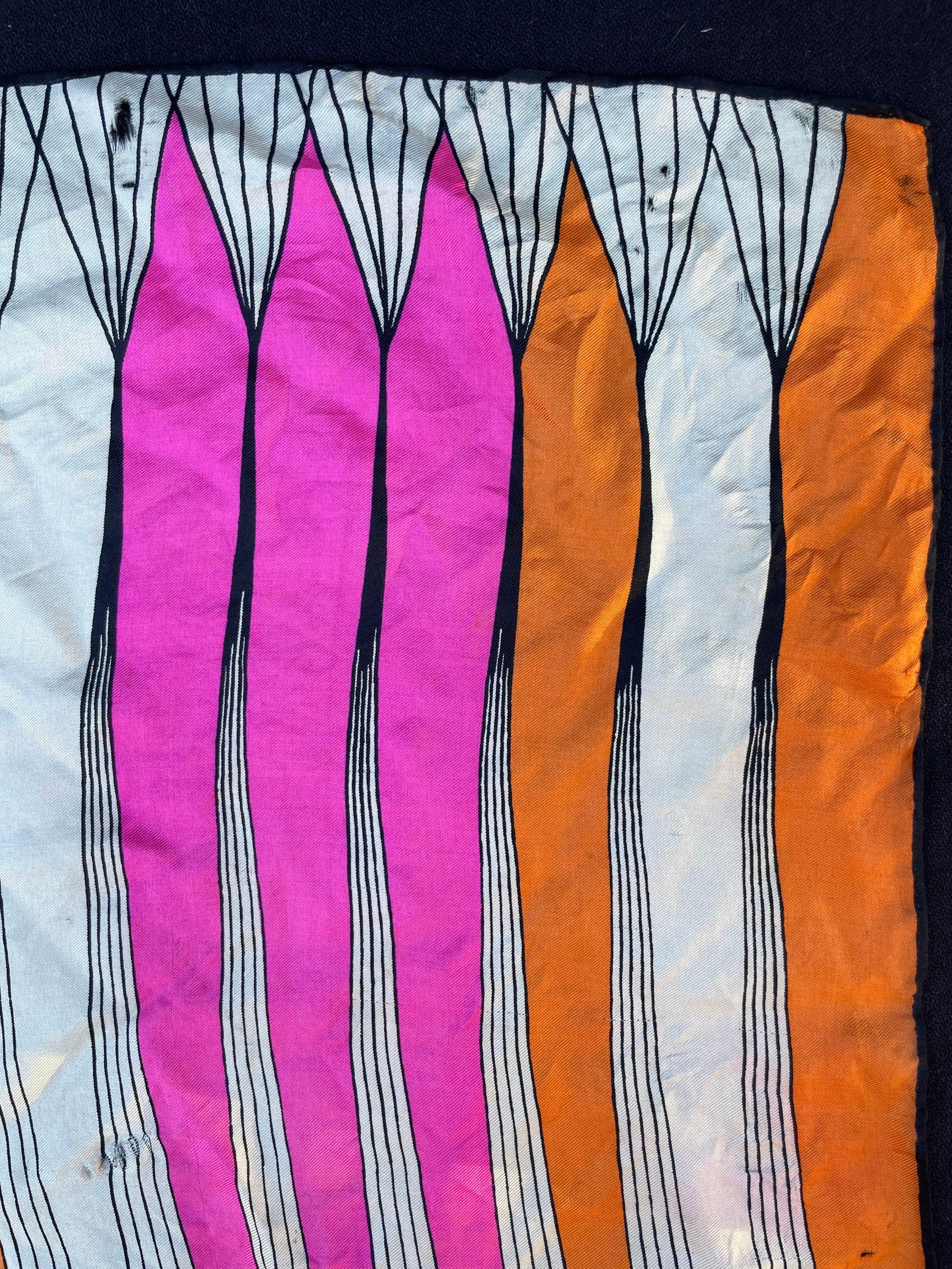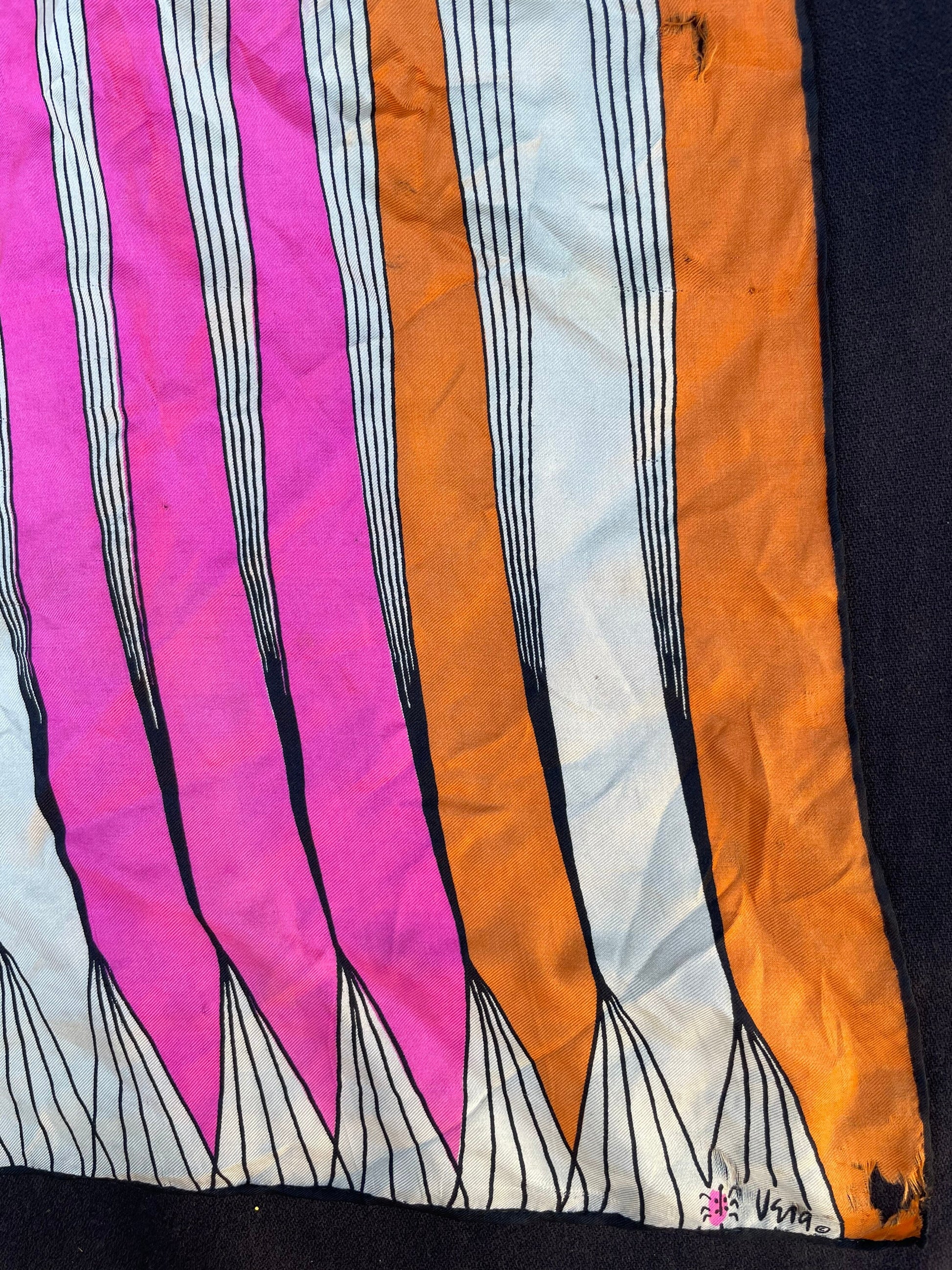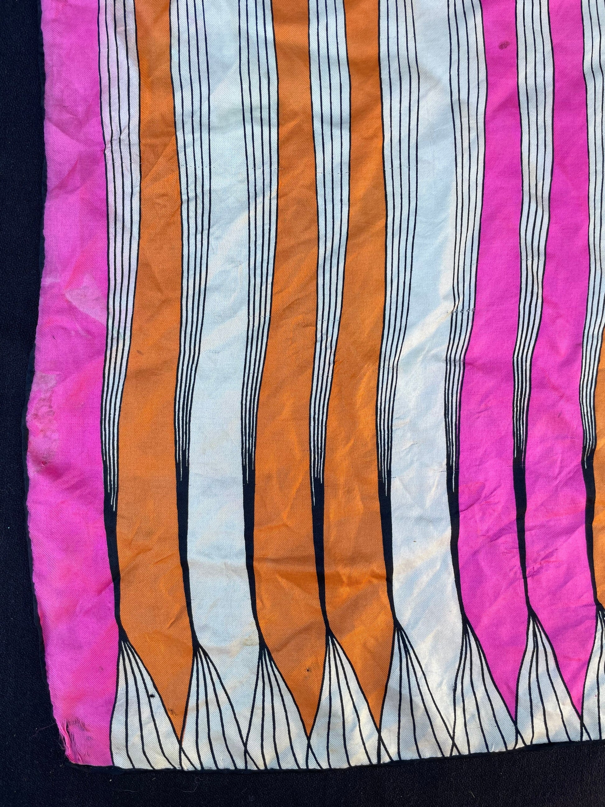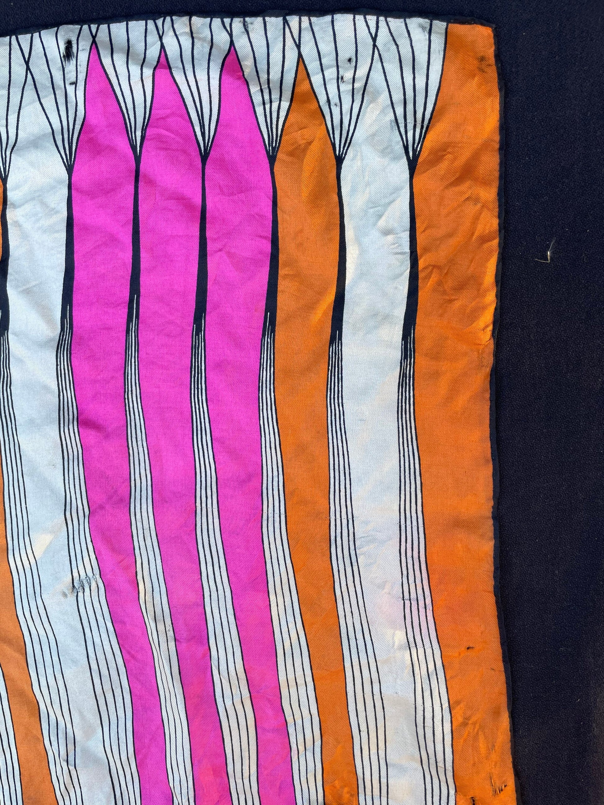 Vintage 1960 Geometric Designer Vera Scarf : Pink, Orange, White & Black Stripe
