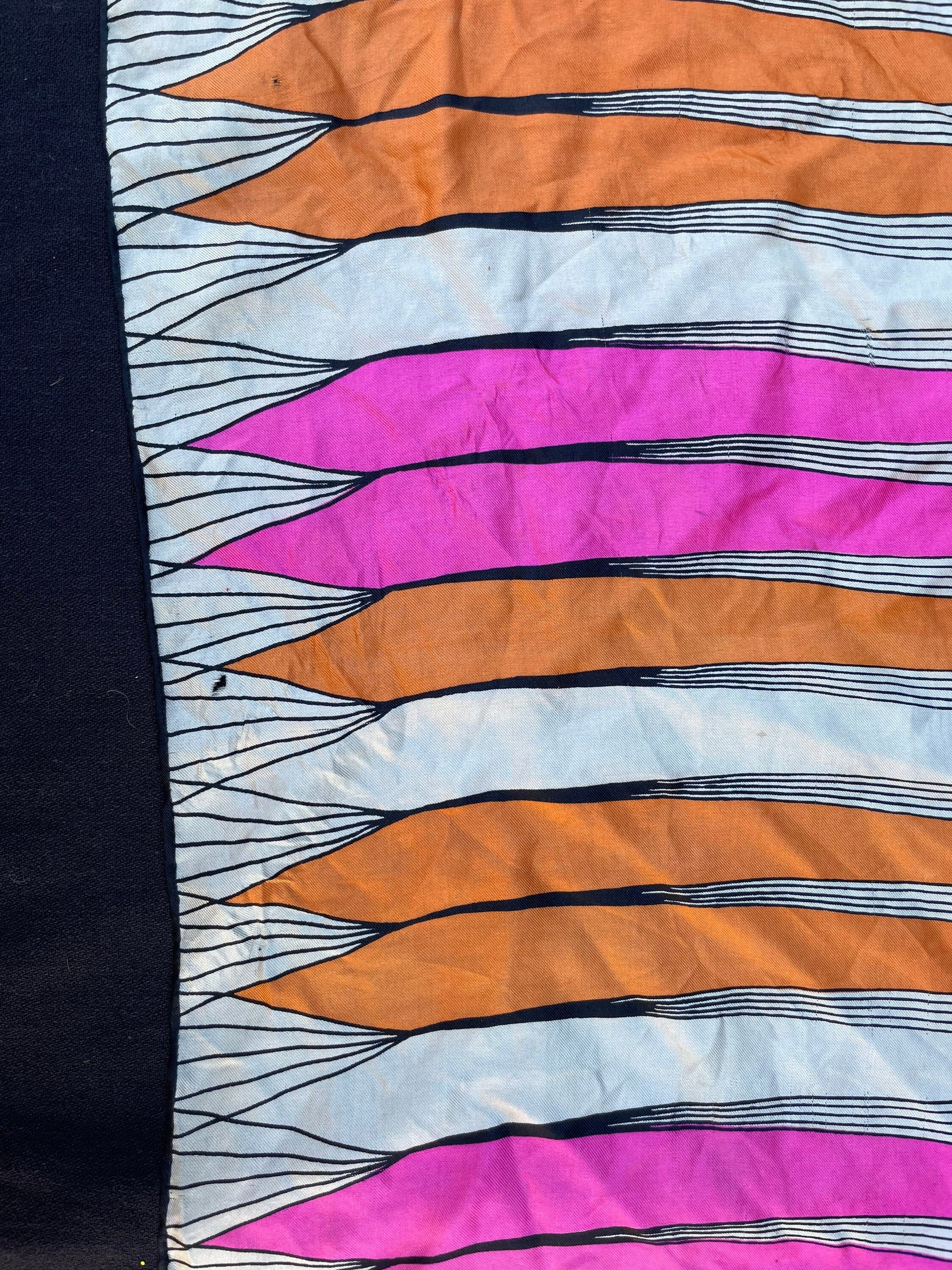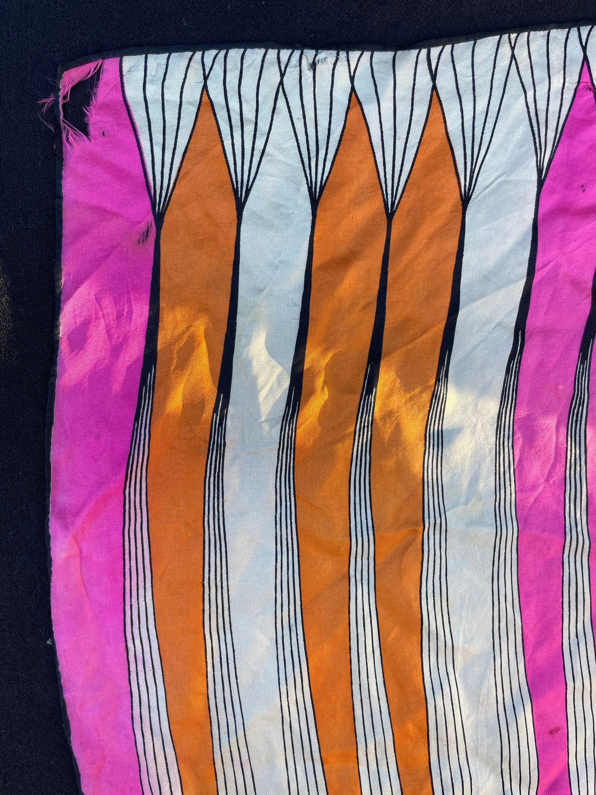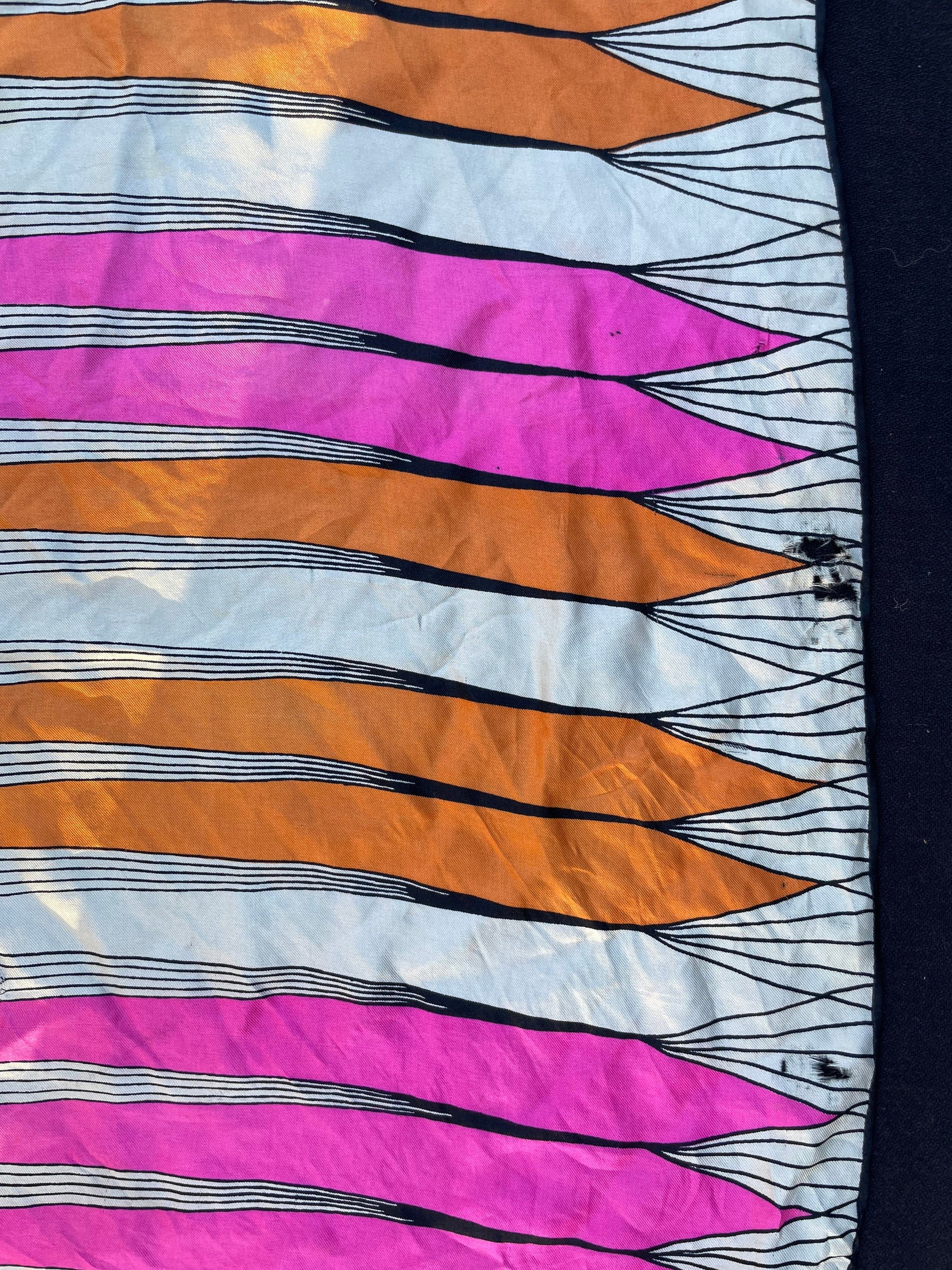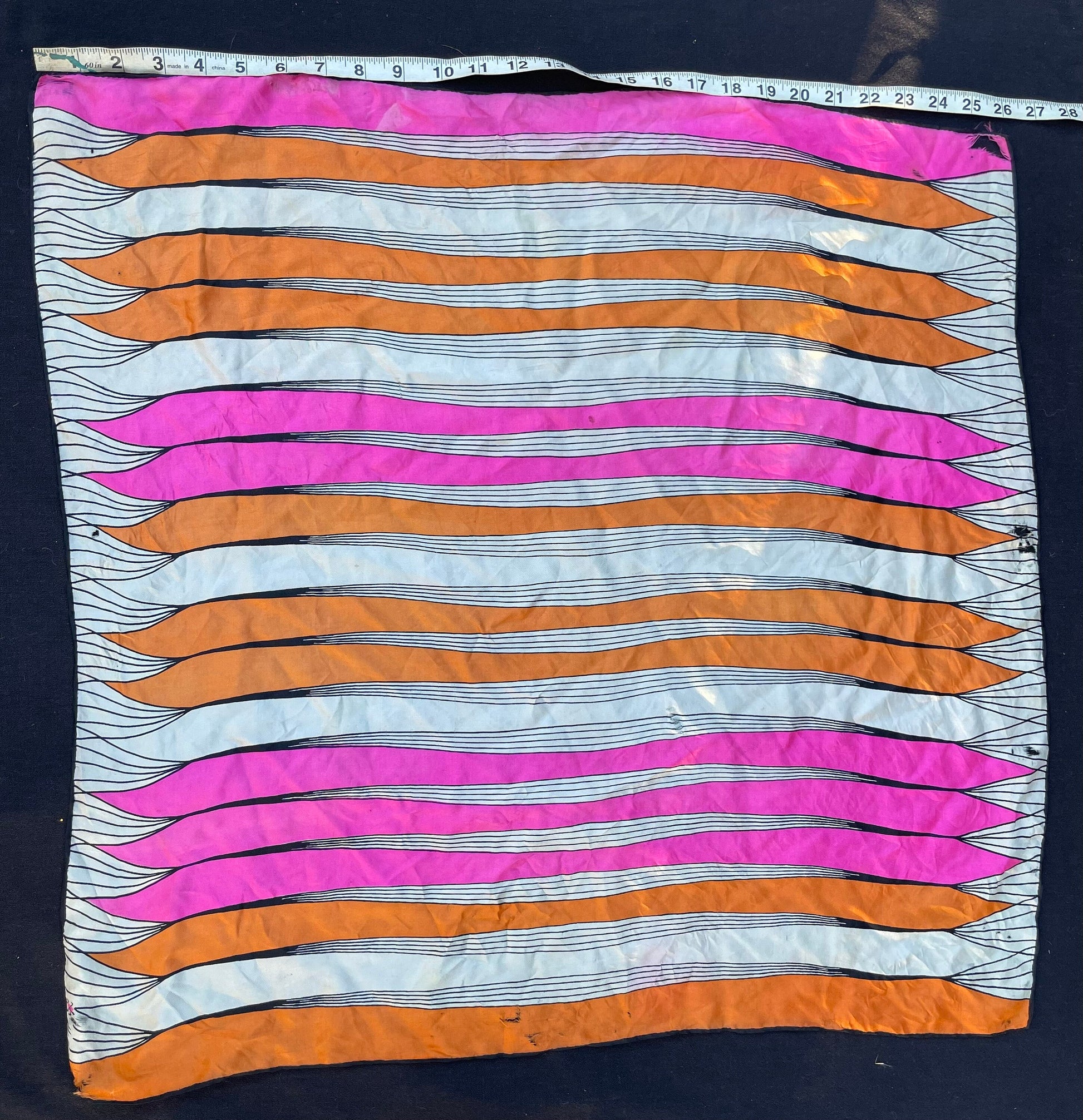 Vintage 1960 Geometric Designer Vera Scarf : Pink, Orange, White & Black Stripe