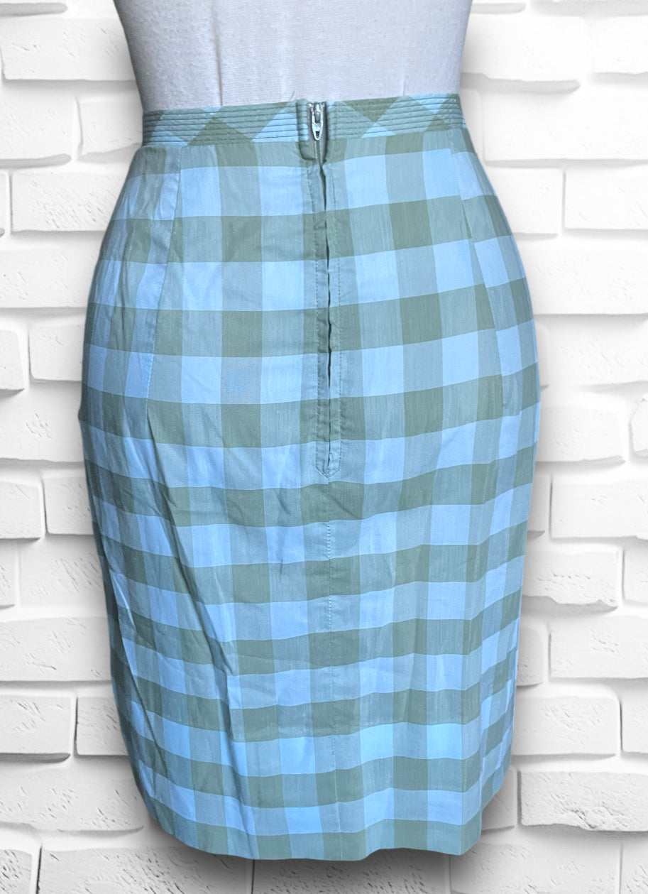 Vintage 1960’s Baby Blue & Green Plaid Skirt & Shirt Set