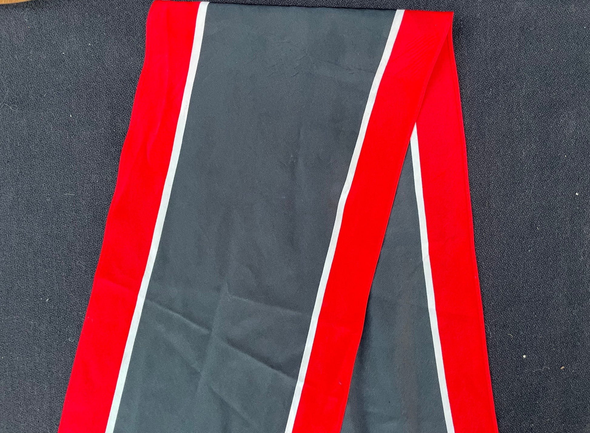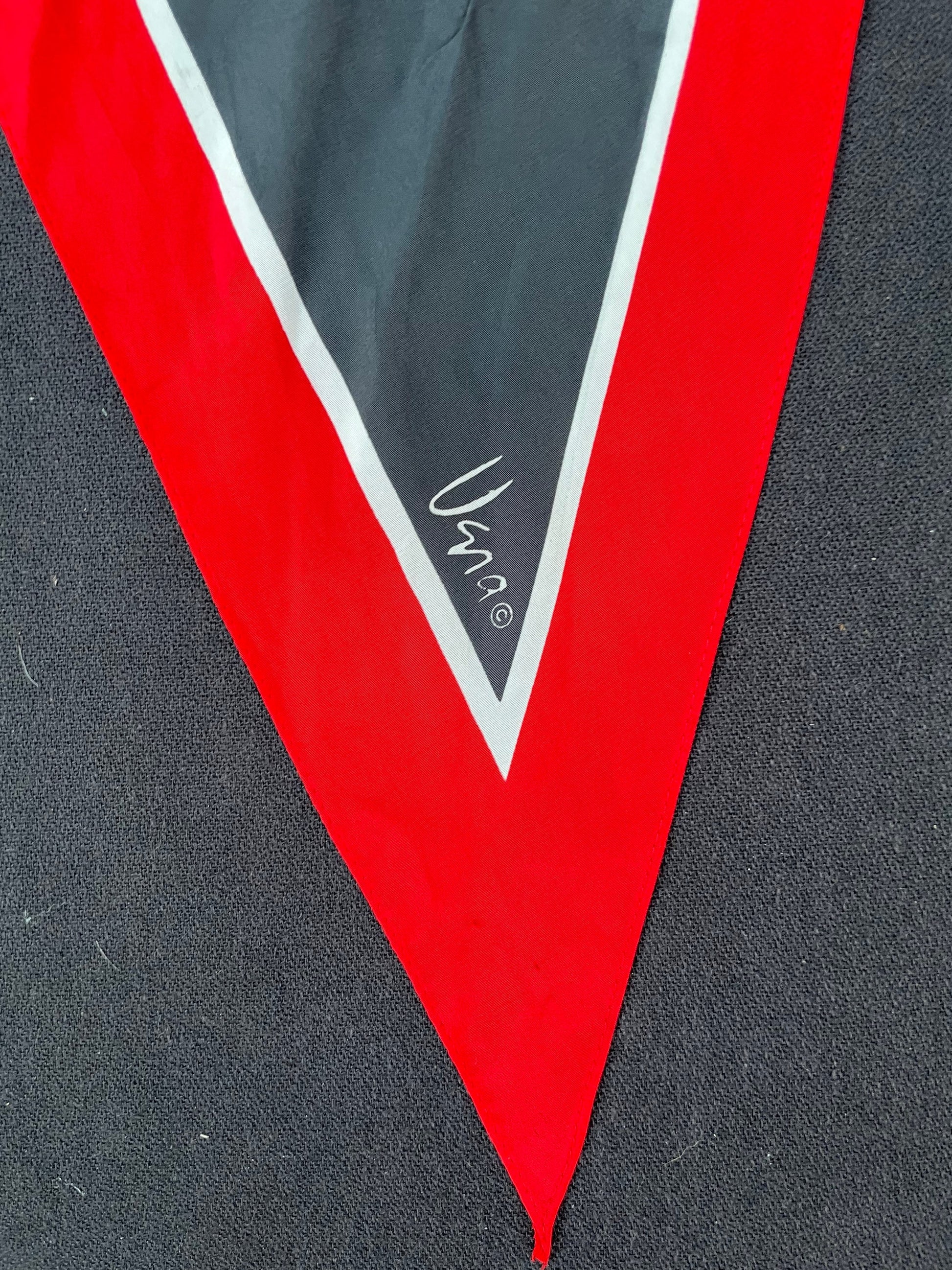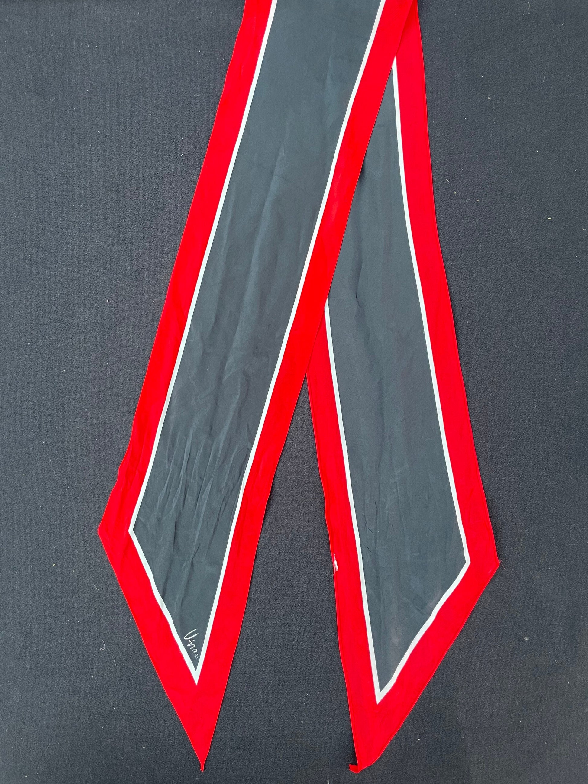 Vintage 1960 Vera Designer Red, Black & White Long Silk Scarf