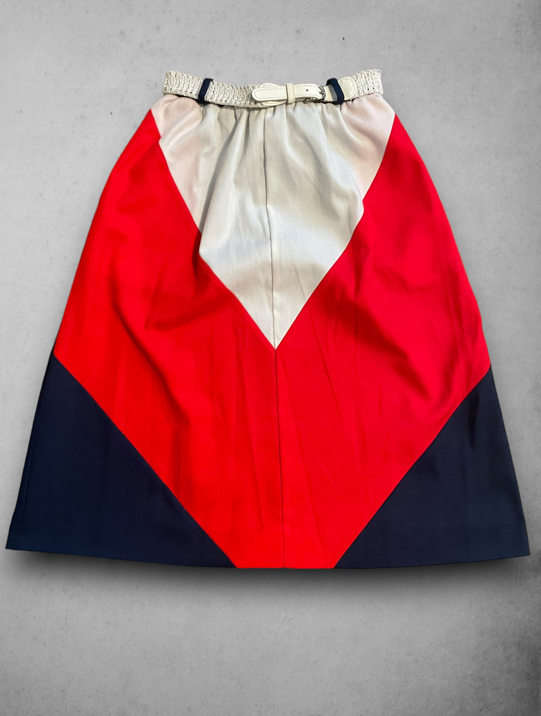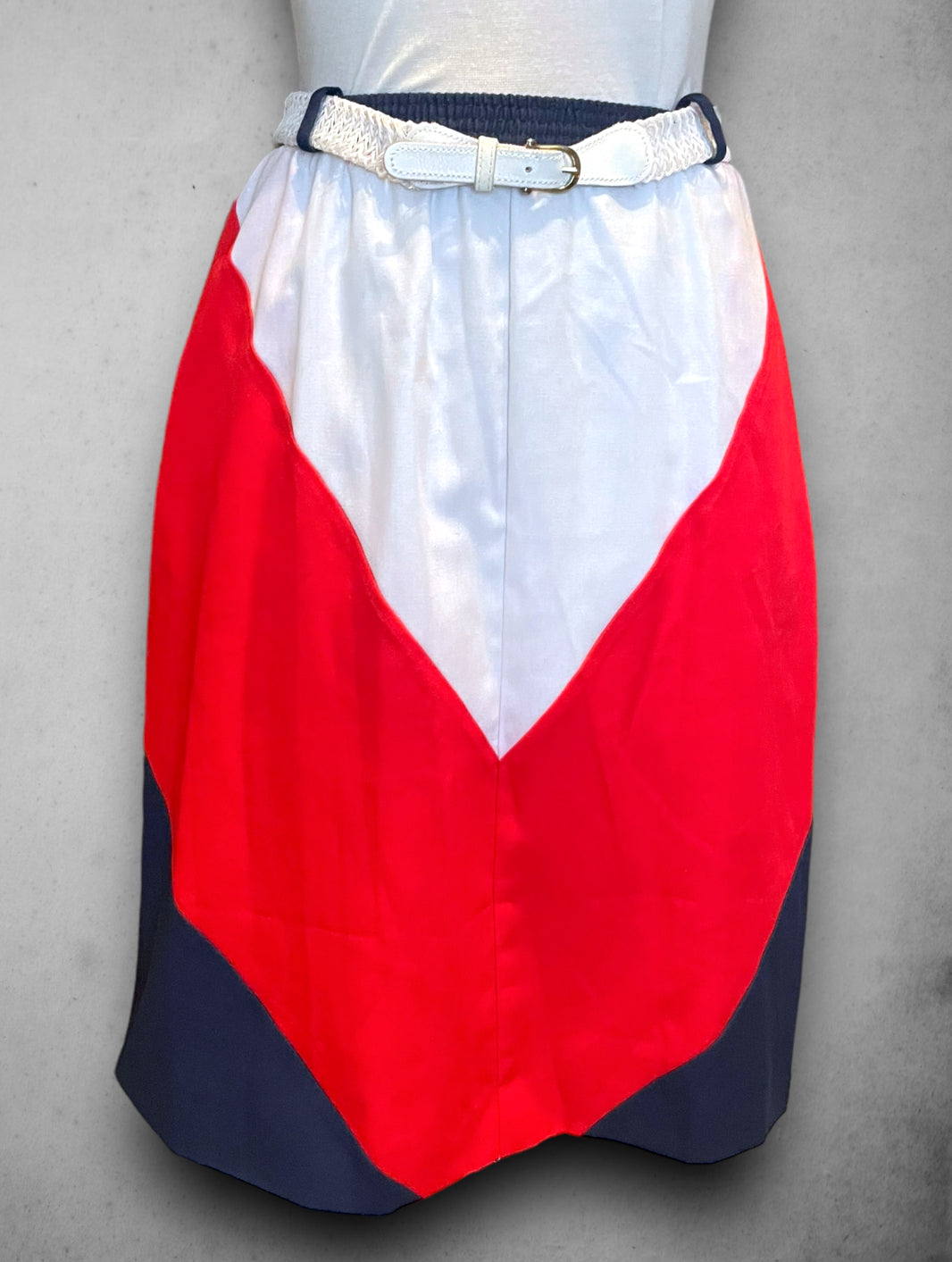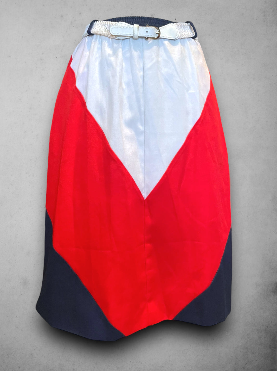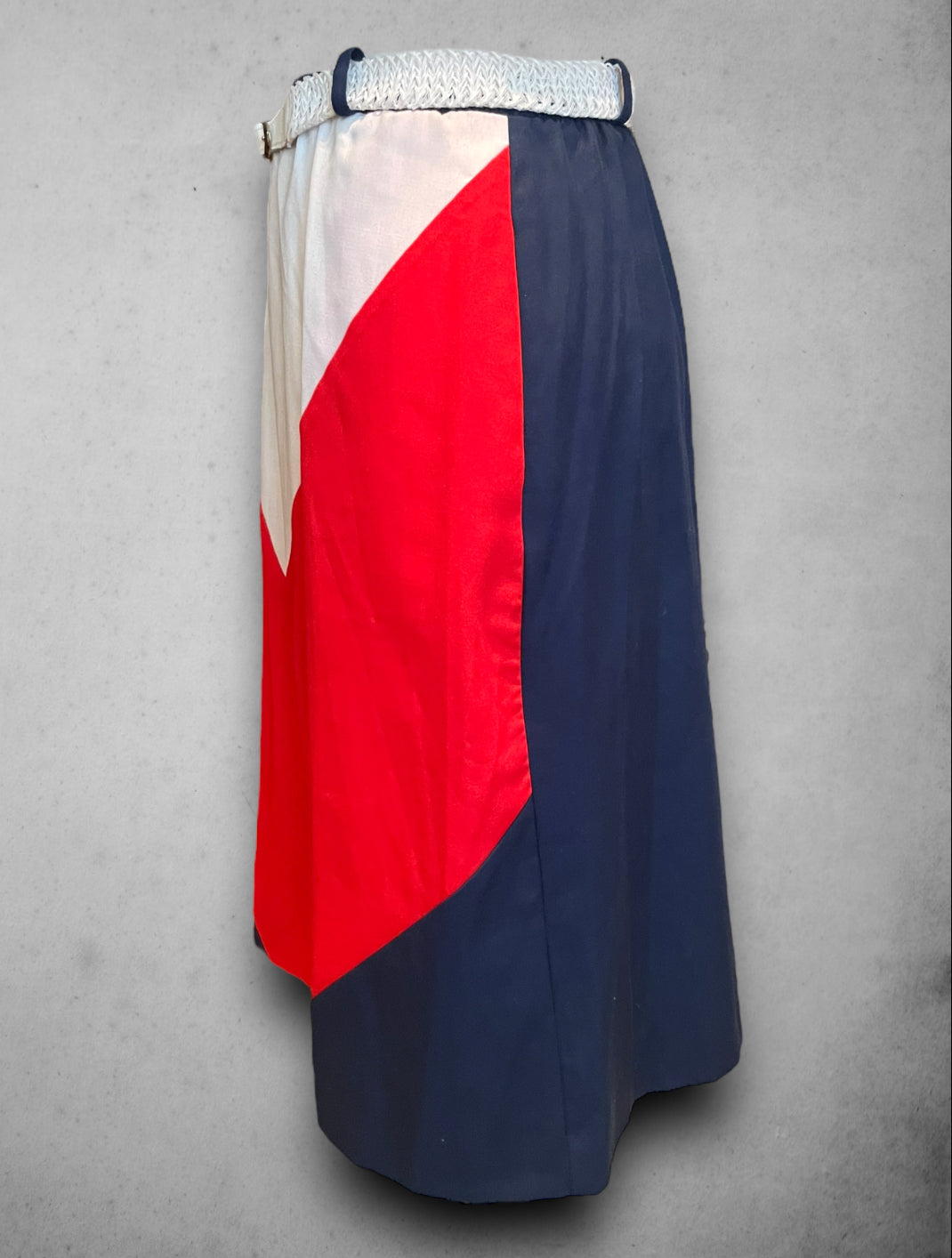 Vintage 1970’s Red, White & Blue Chevron Belted Pocket Skirt