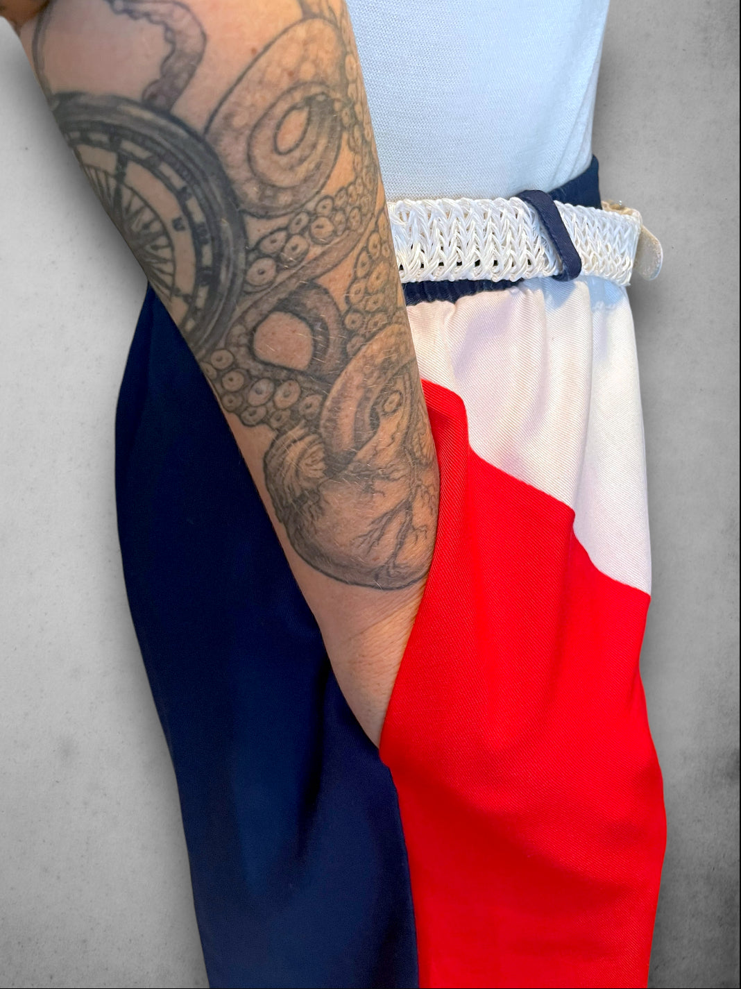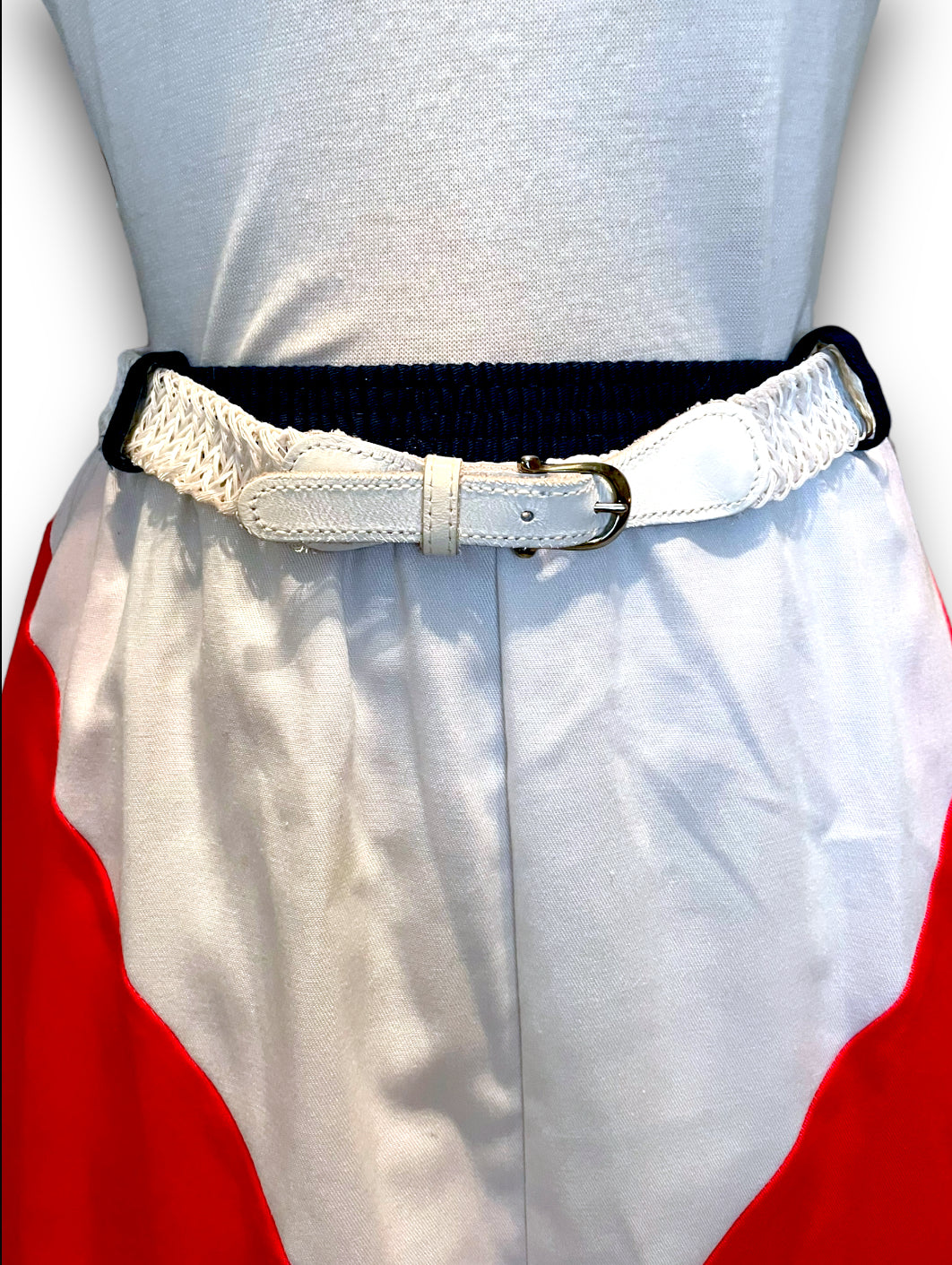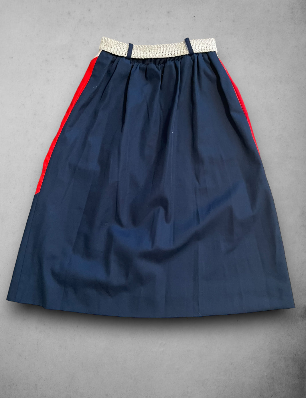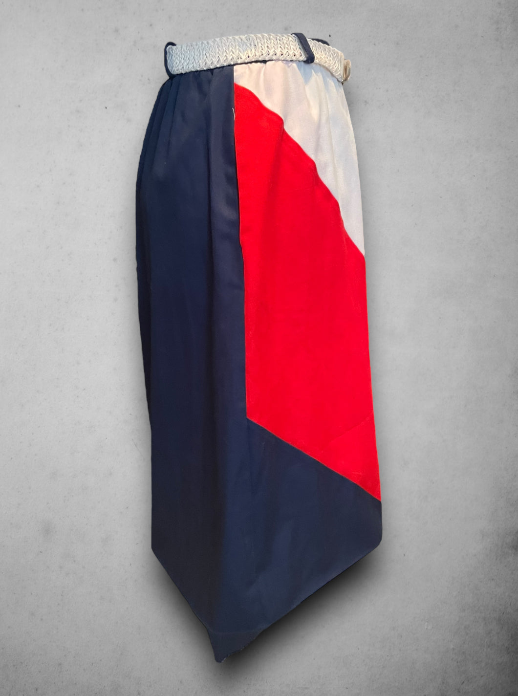 Vintage 1970’s Red, White & Blue Chevron Belted Pocket Skirt