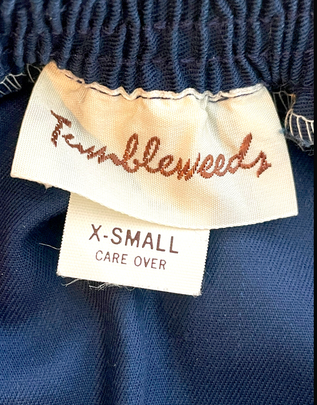 Super duper cute vintage 1970’s red white & blue chevron mid length skirt with pockets and white woven belt. Waist is elastic and so is woven belt with white leather ends. Pockets on both sides. Backside is all navy blue. Tag label designer is “Tumbleweeds”. Cotton mix, Made in USA size X-small.