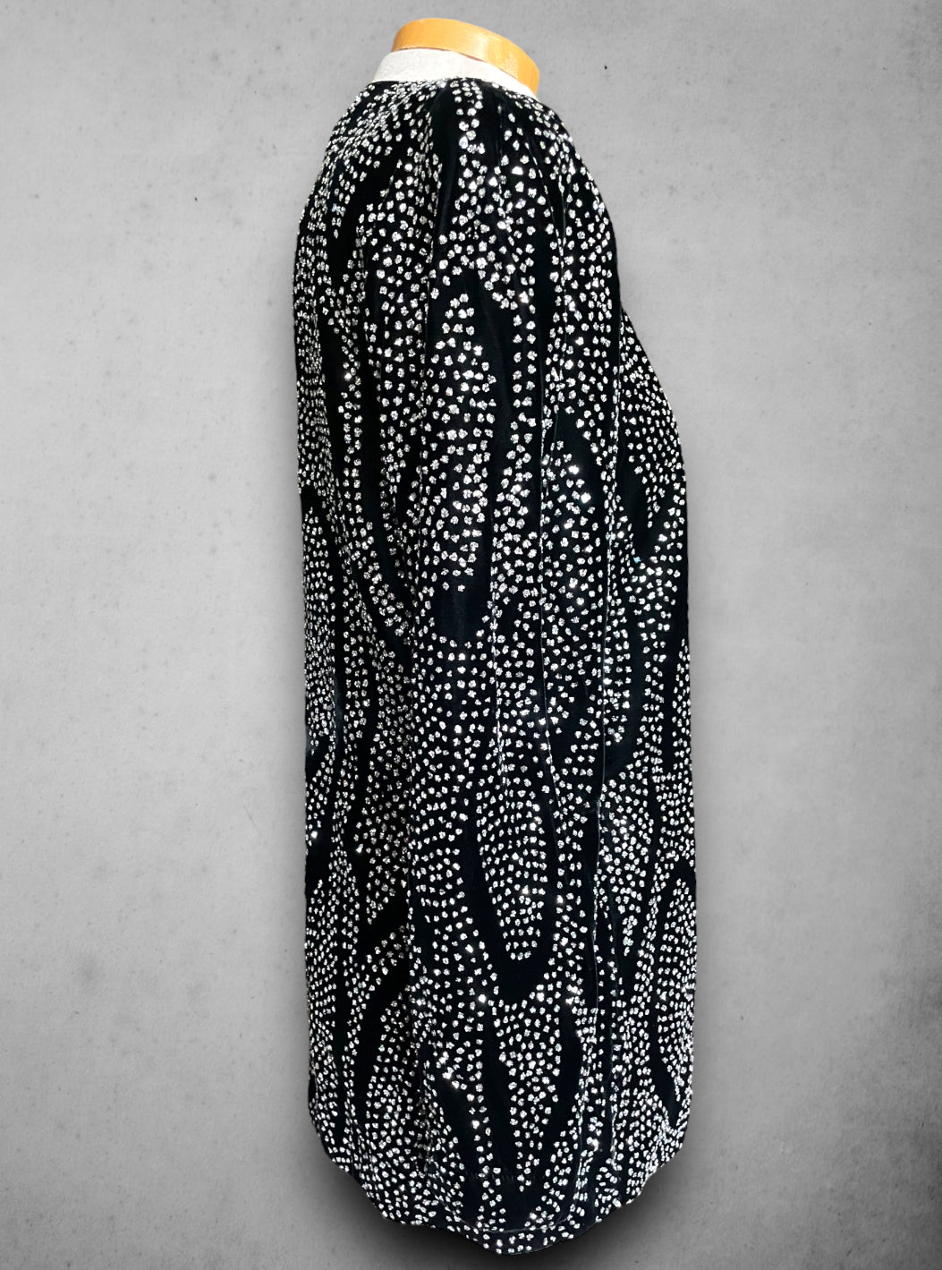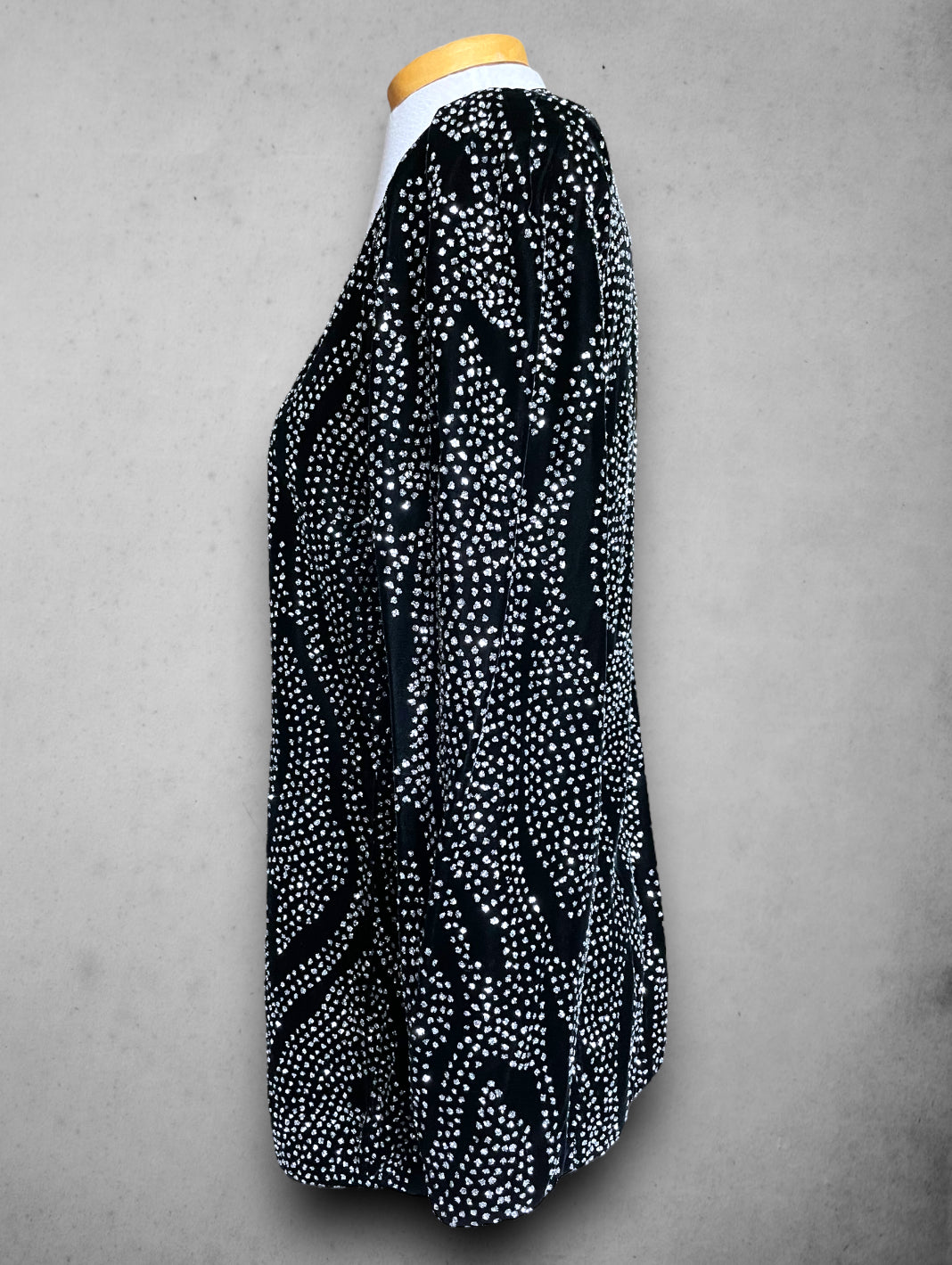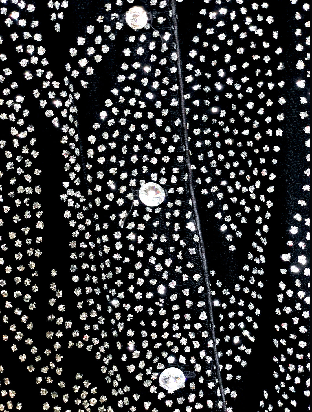Vintage 1980’s Black Velvet Silver Glitter Pattern Coat / Button Up Blouse