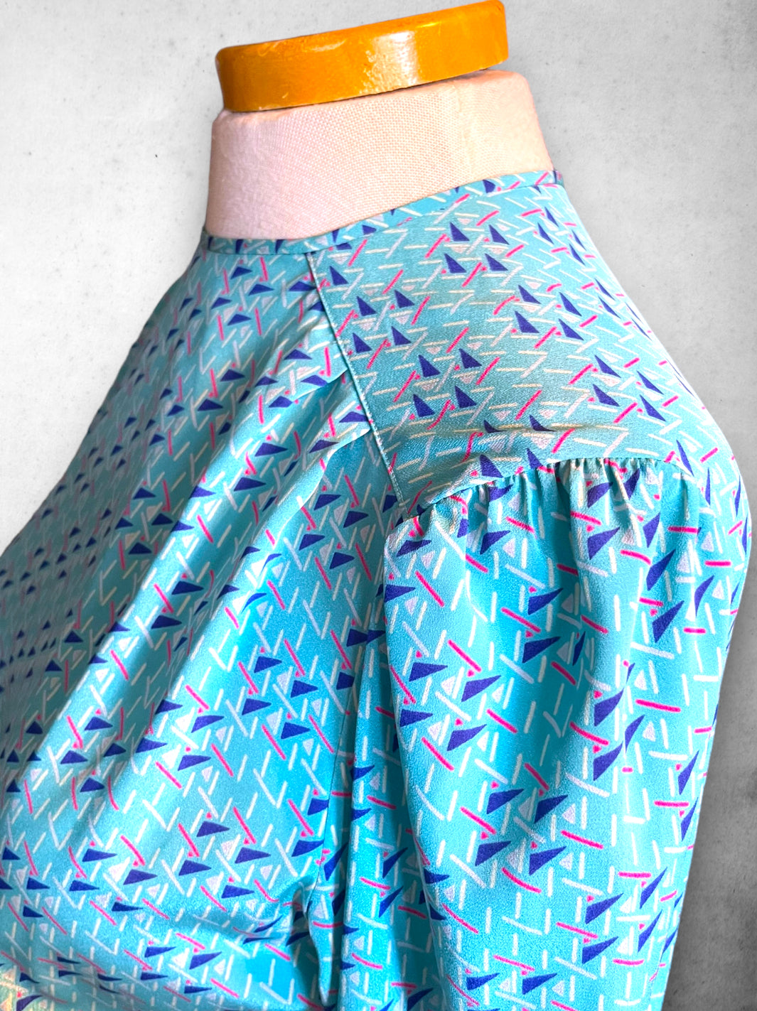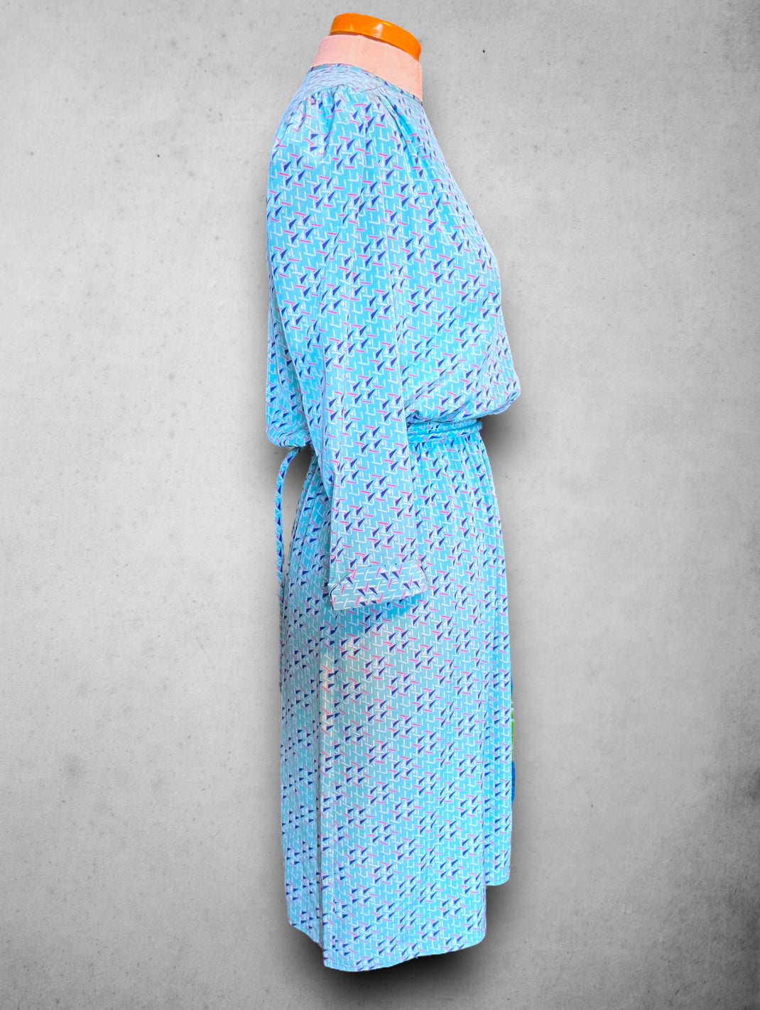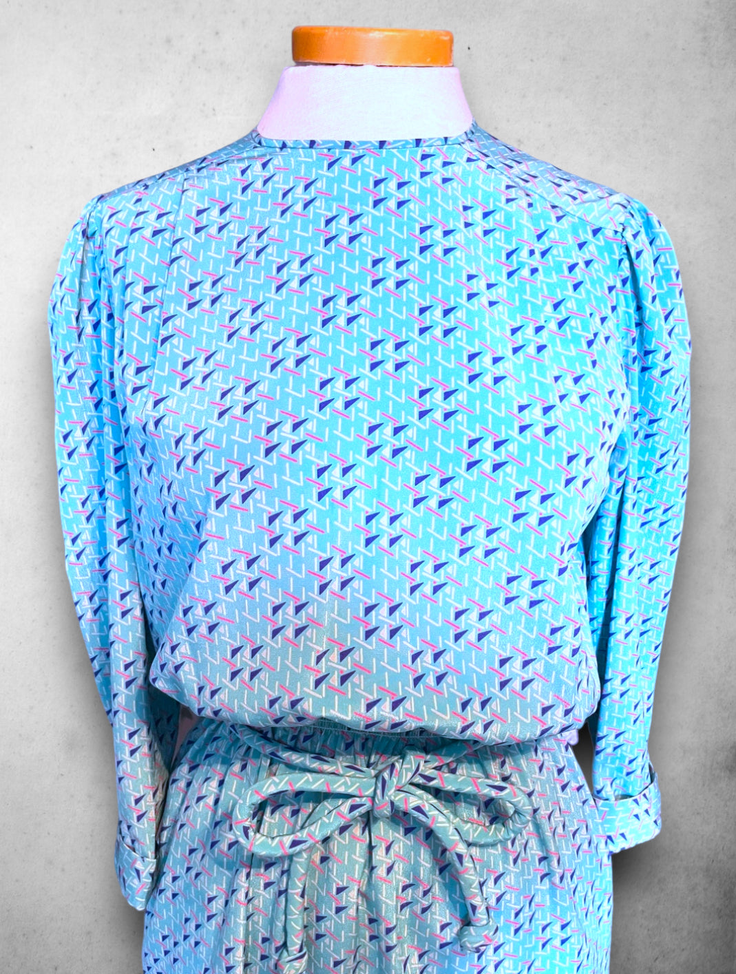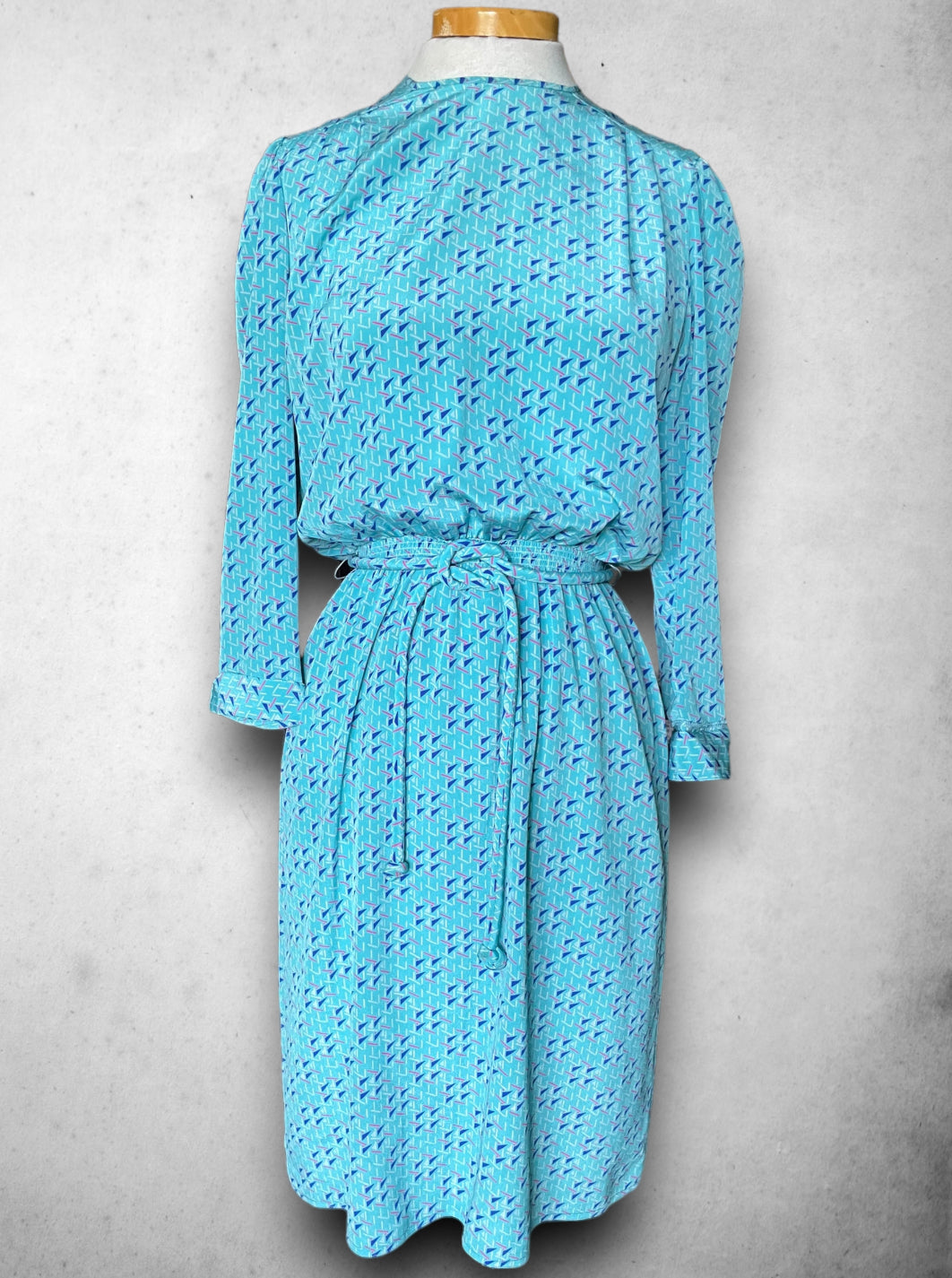 Vintage 1980’s Blue, Teal, Pink & White Abstract Pattern Dress