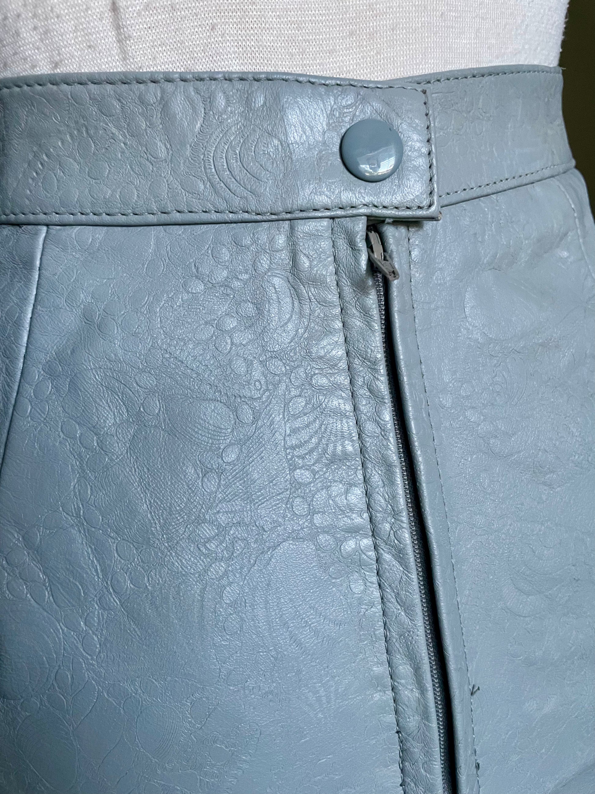 Vintage 1980’s Embossed Grey Leather Mini Pencil Skirt