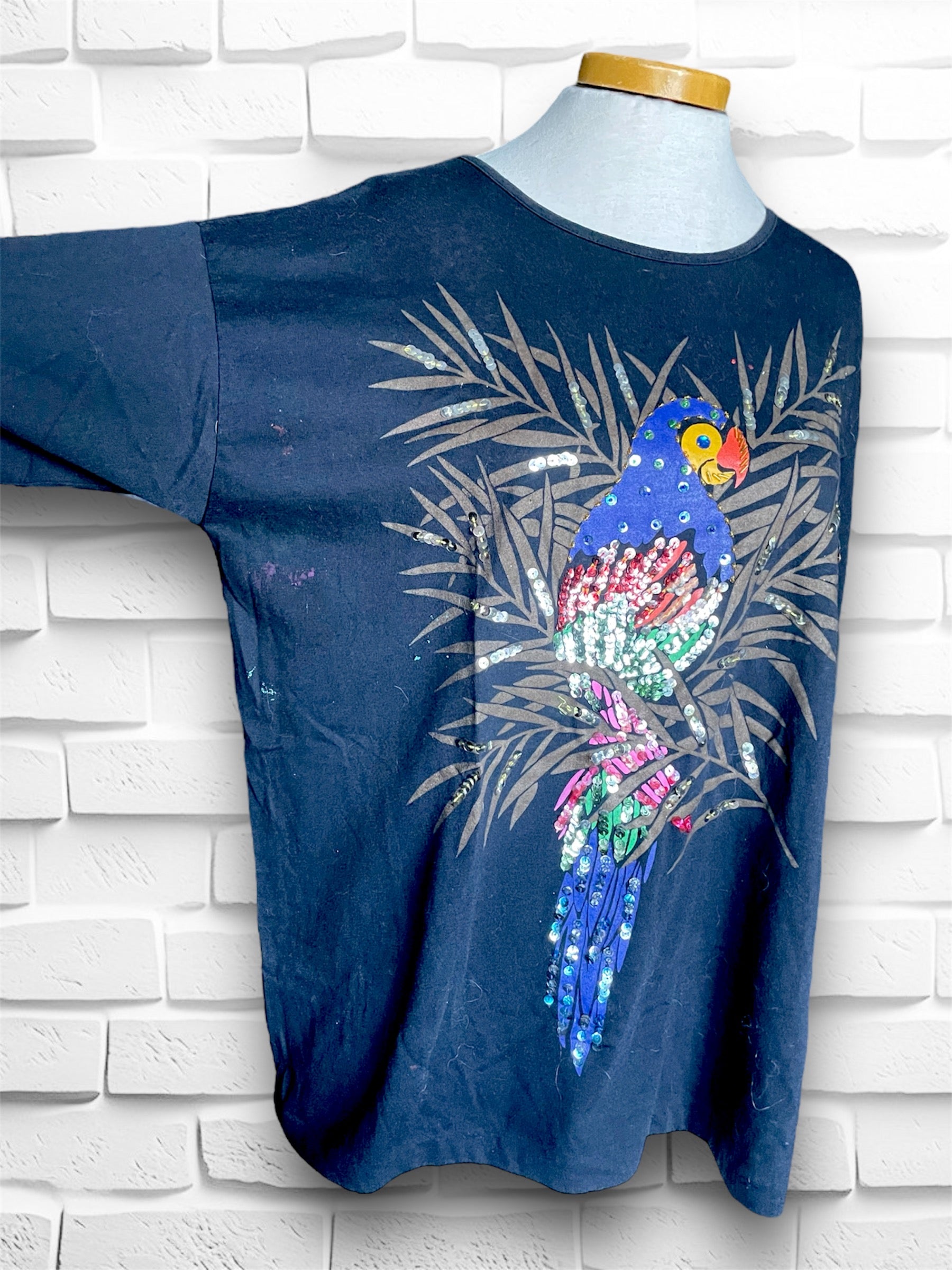 Vintage 1980’s Sequin Rainbow Parrot Oversized T-Shirt