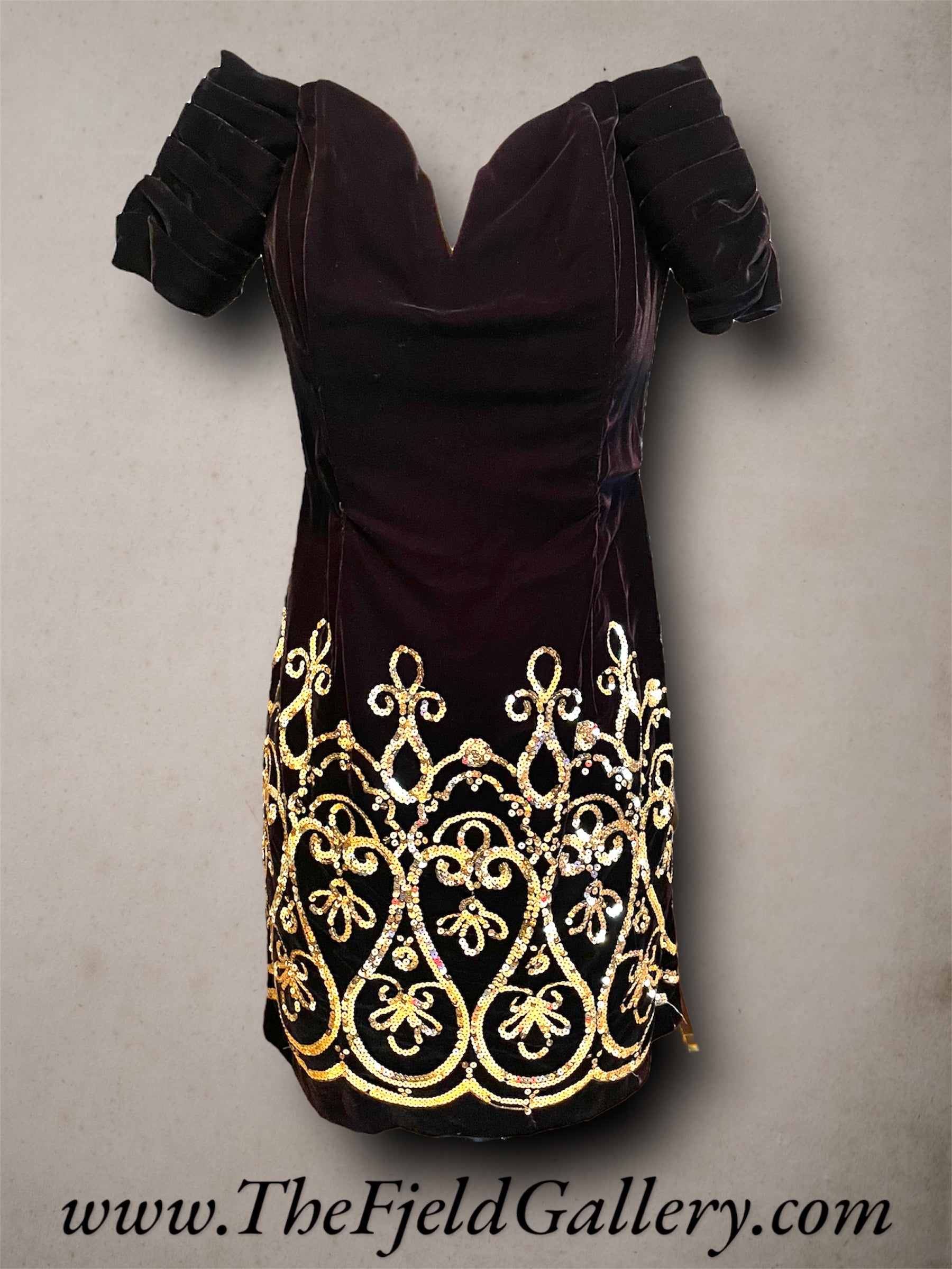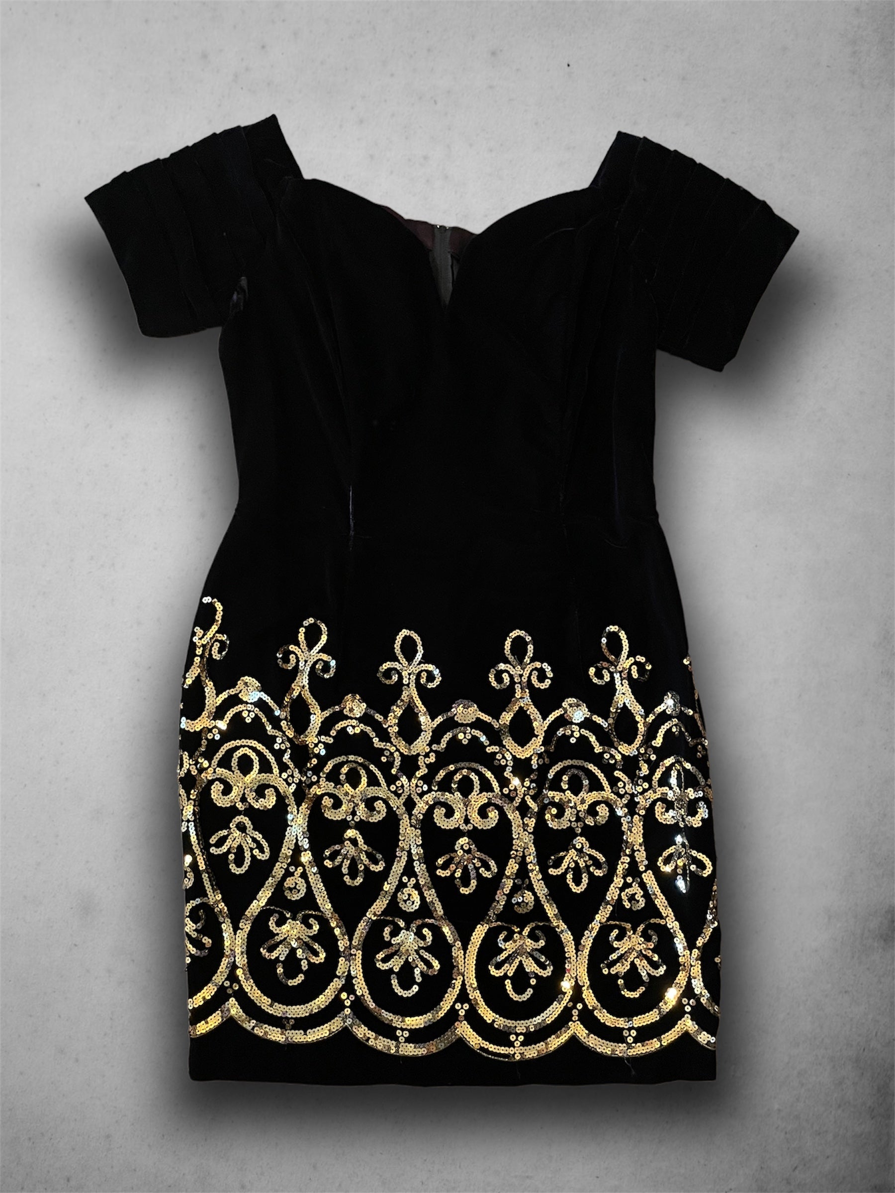 Vintage 1980’s Velvet & Gold Sequin Party Dress