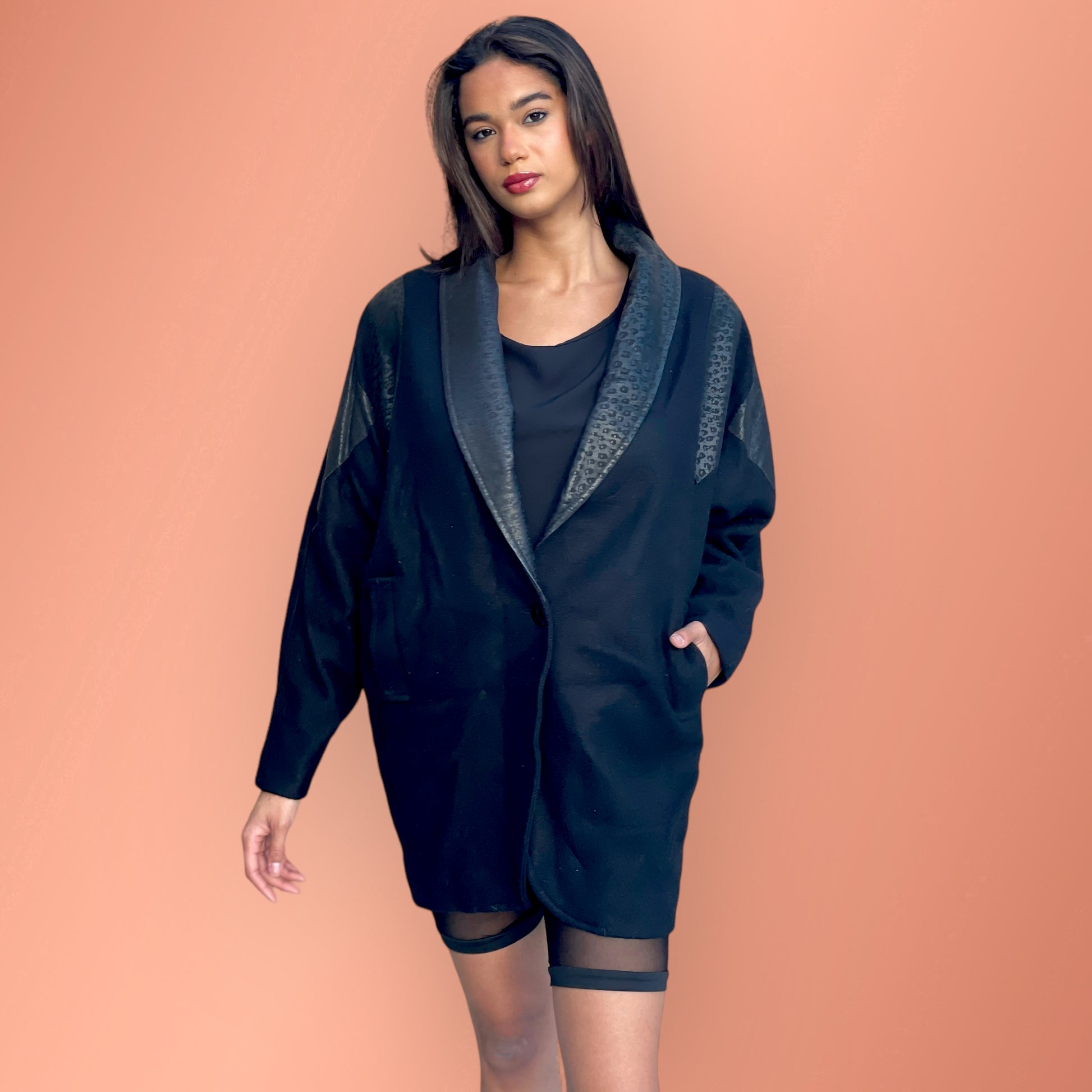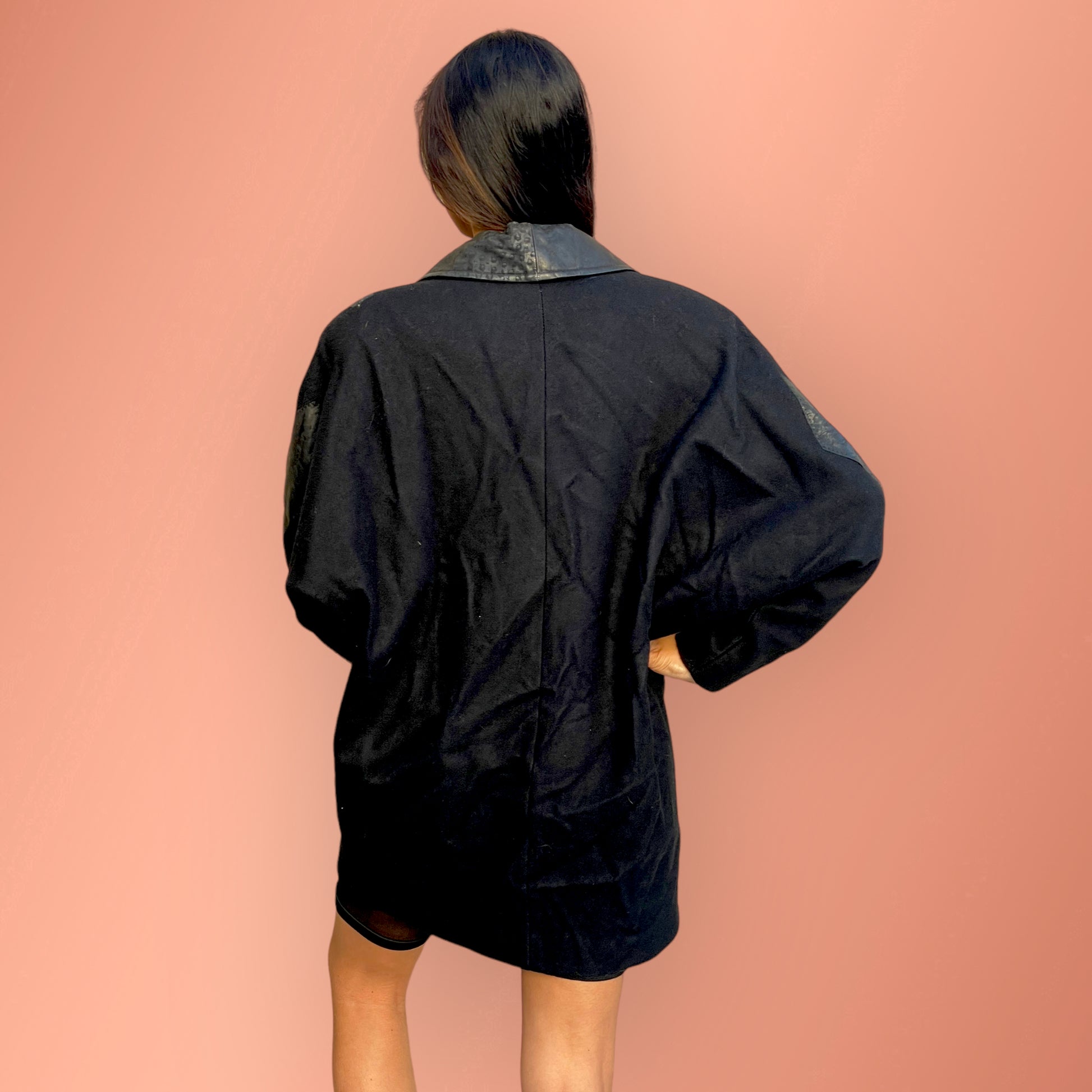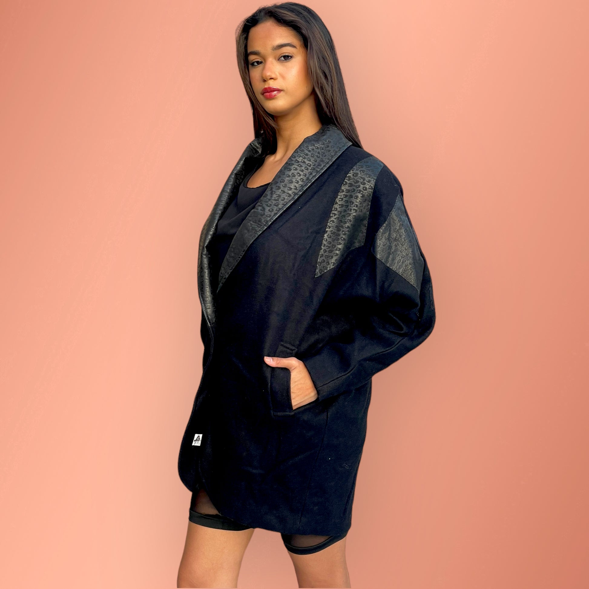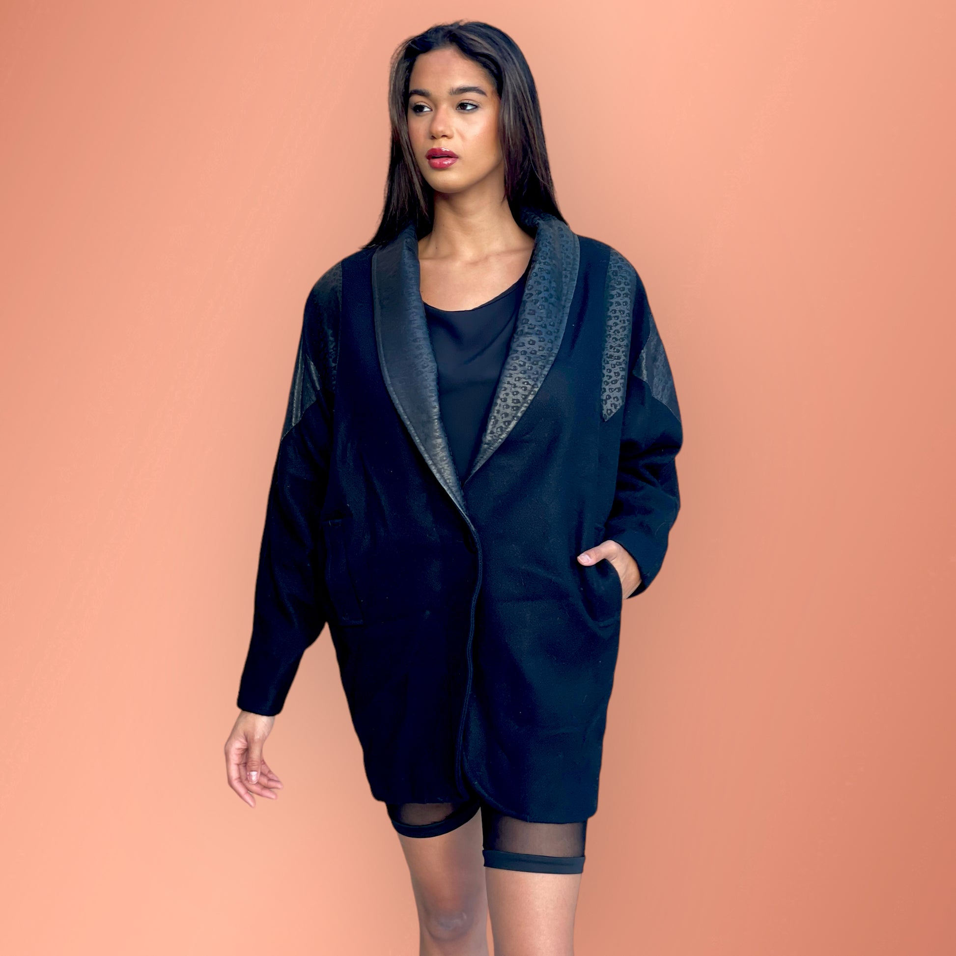 Vintage 1990’s Havoc Black Wool & Leopard Print Leather Batwing Oversized Blazer Jacket