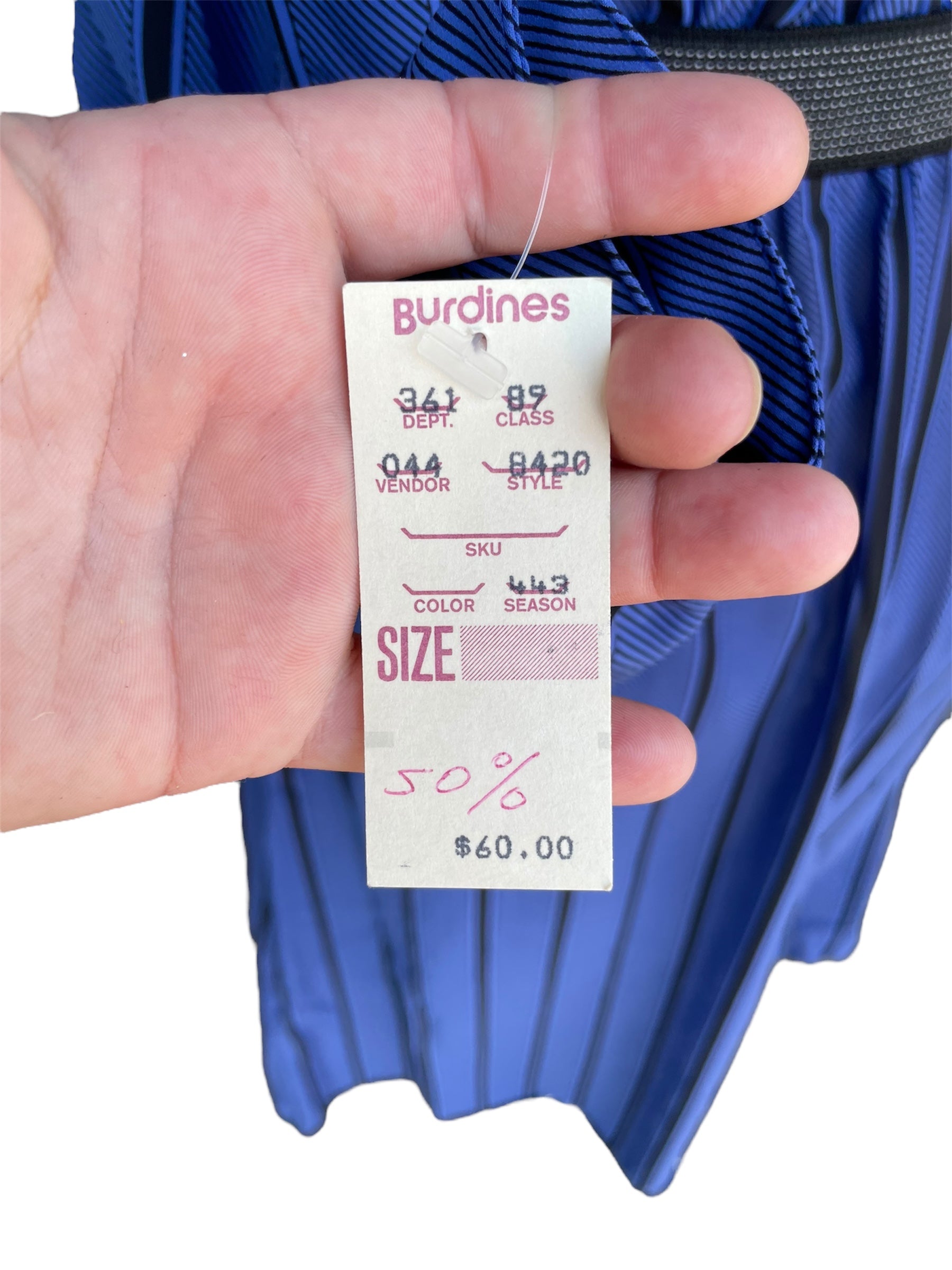 Beautiful vintage late 80’s early 90’s blue and black striped dress, NOS (New Old Stock) with tags attached from Burdines. Brand New and never been worn.