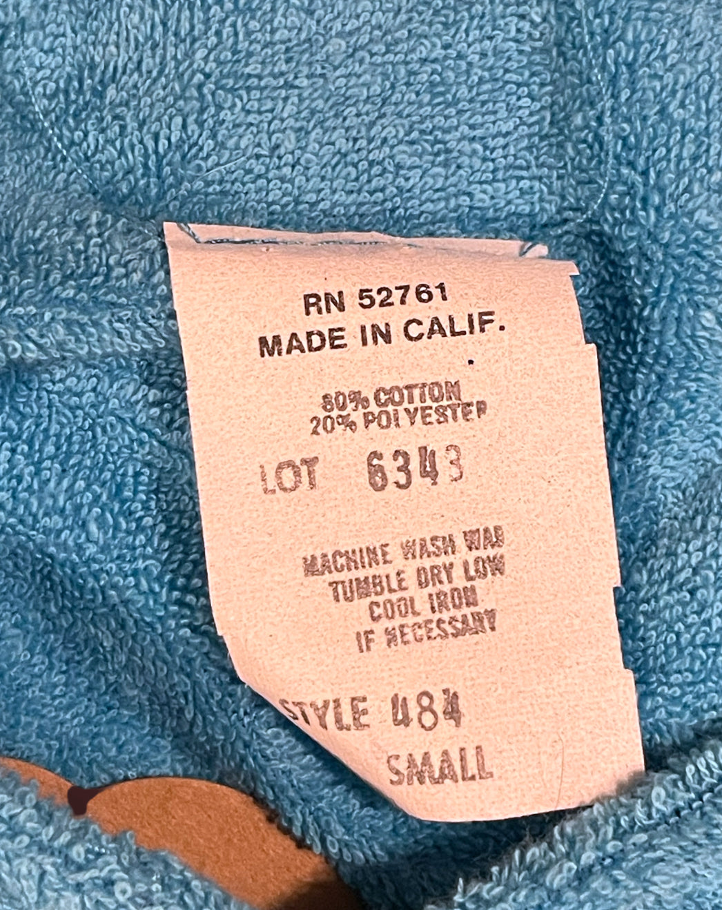 Super cute vintage late 1980’s, early 1990’s purple terrycloth jumpsuit, romper. Elastic waistband with twisted “nautical” rope belt and large white buttons up the front. Has 2 hip side pockets, sleeveless, in perfect condition NOS. Tag says “Made in California” / “80% Cotton, 20% Polyester”, “Size S”