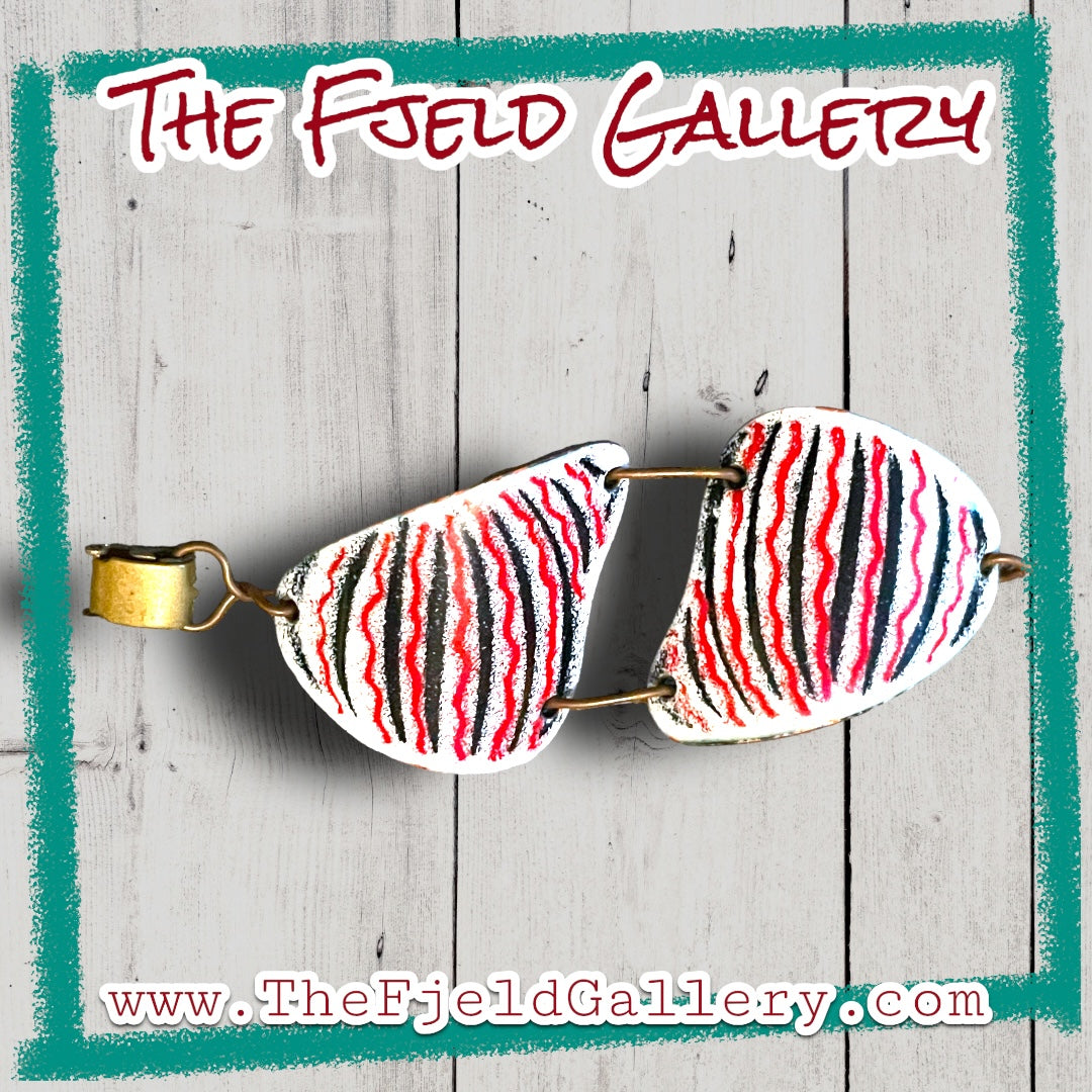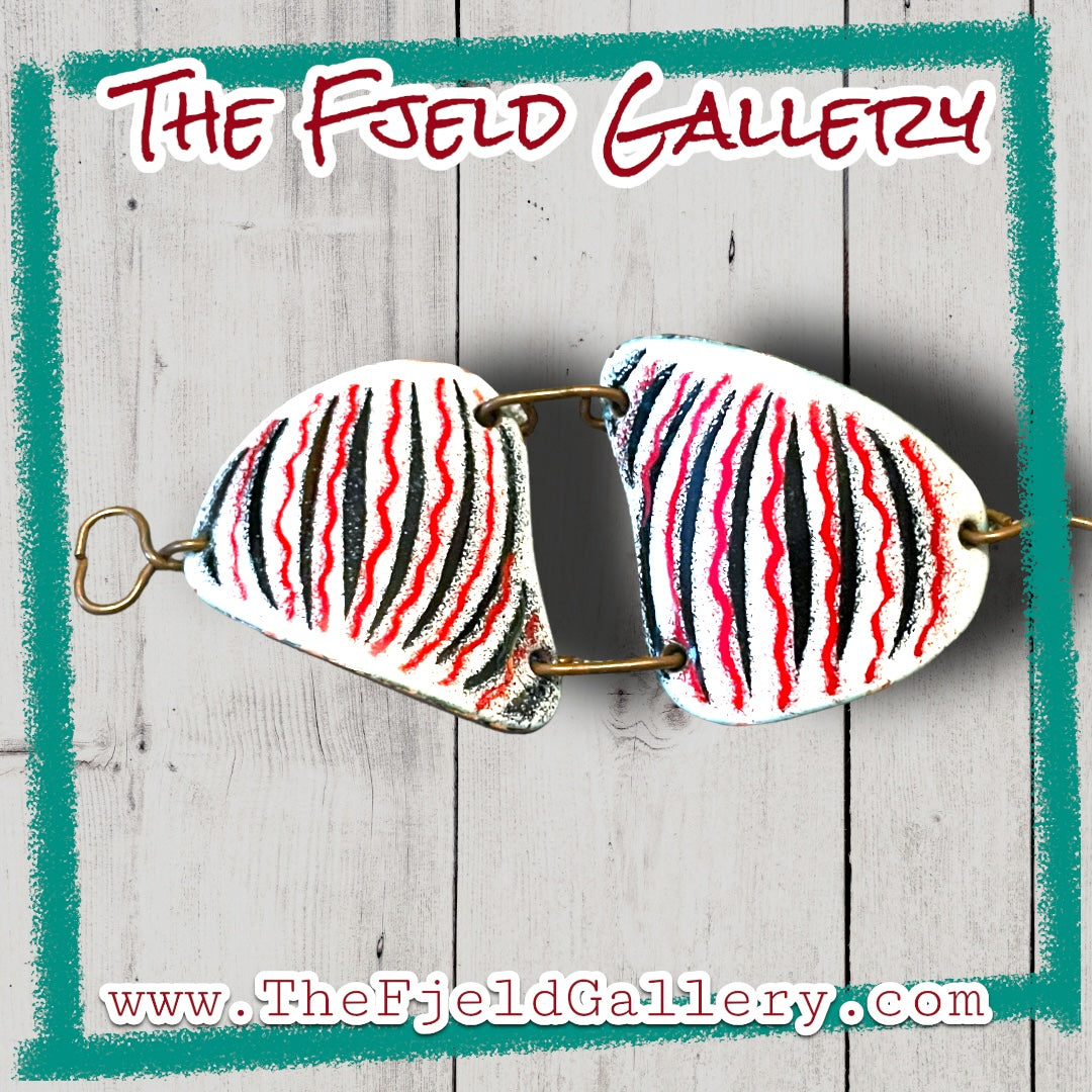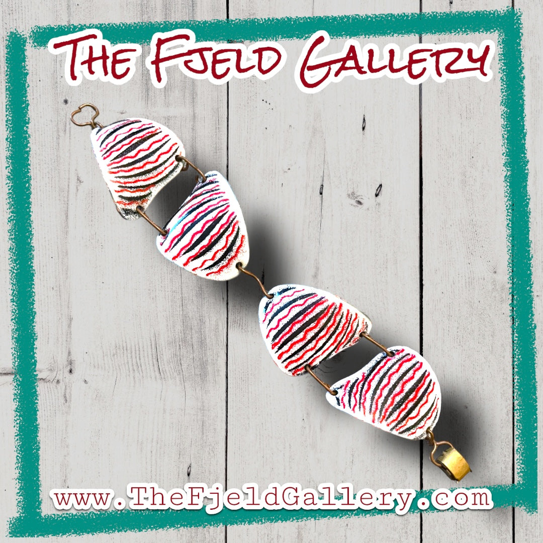Vintage Arts & Crafts Copper Red, Black & White Enamel Panel Link Bracelet