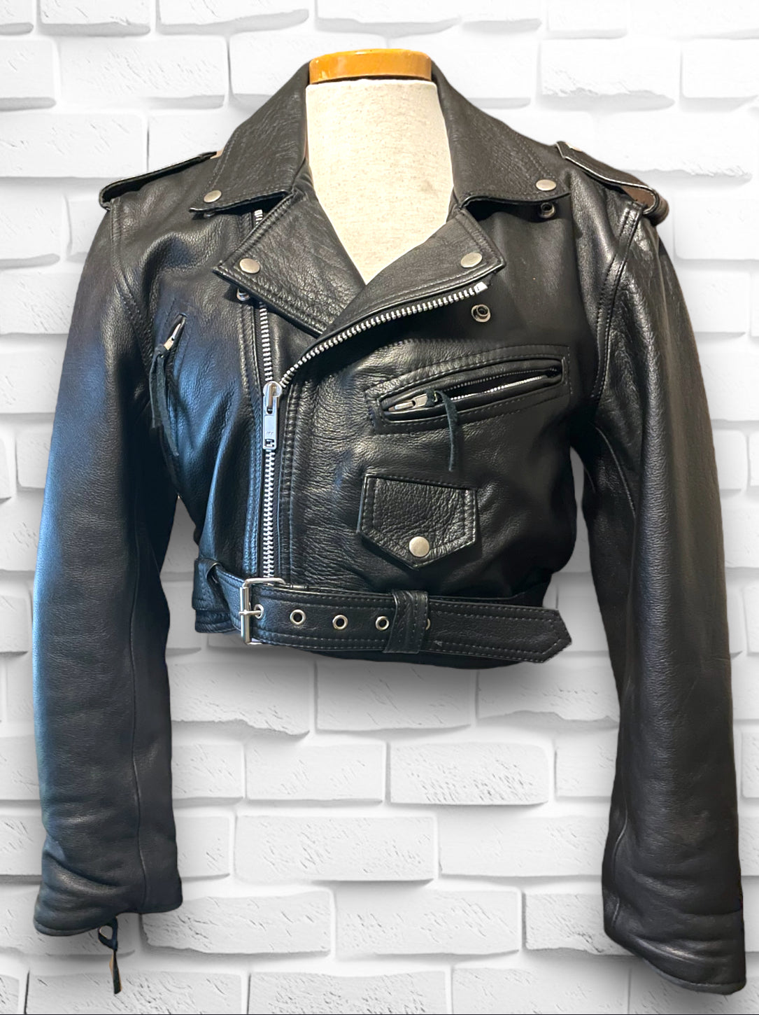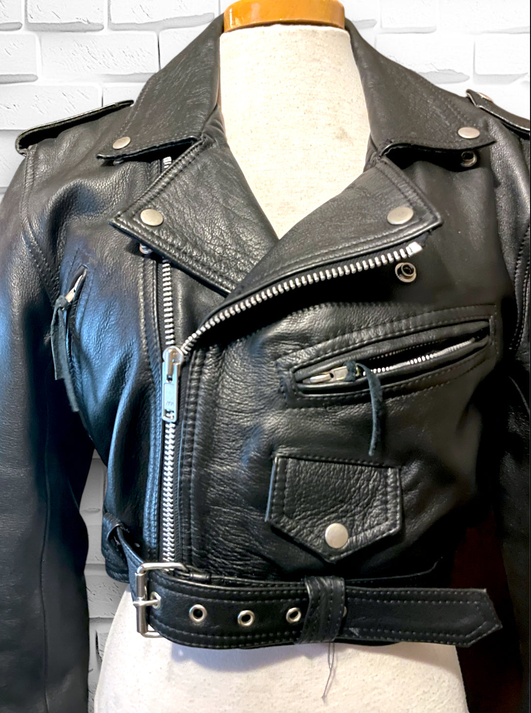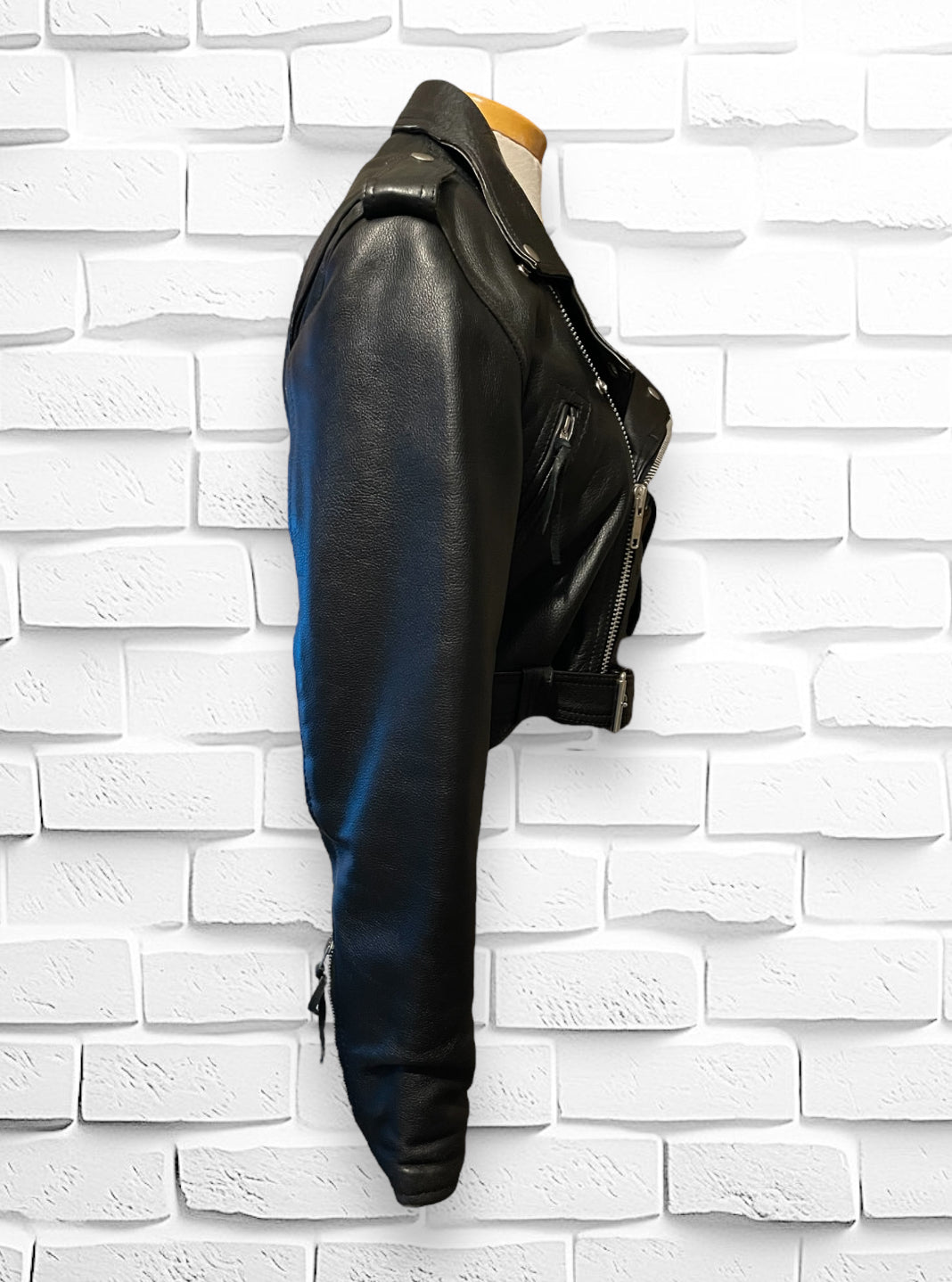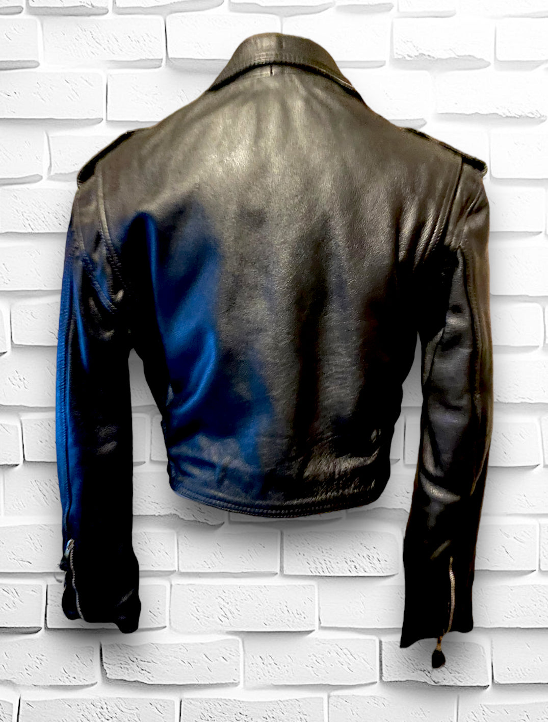 Vintage Black Leather Motorcycle Jacket Heavy Lined