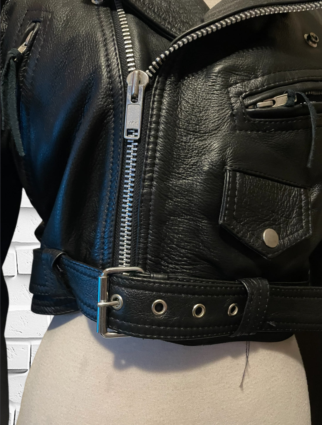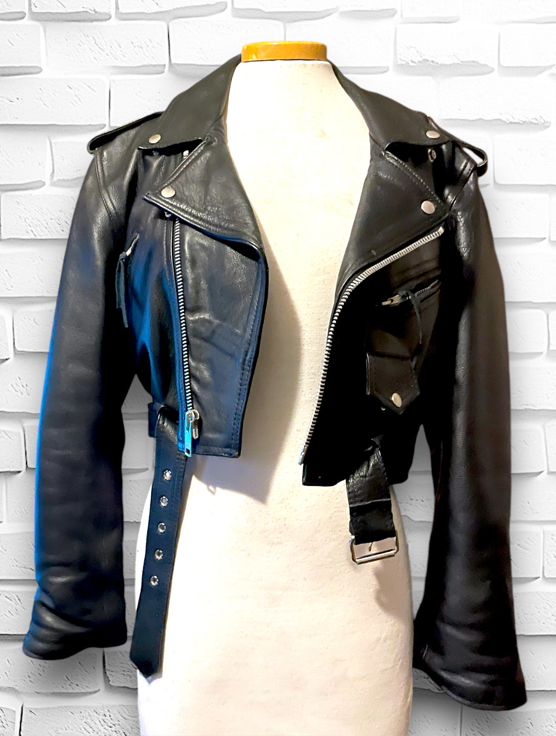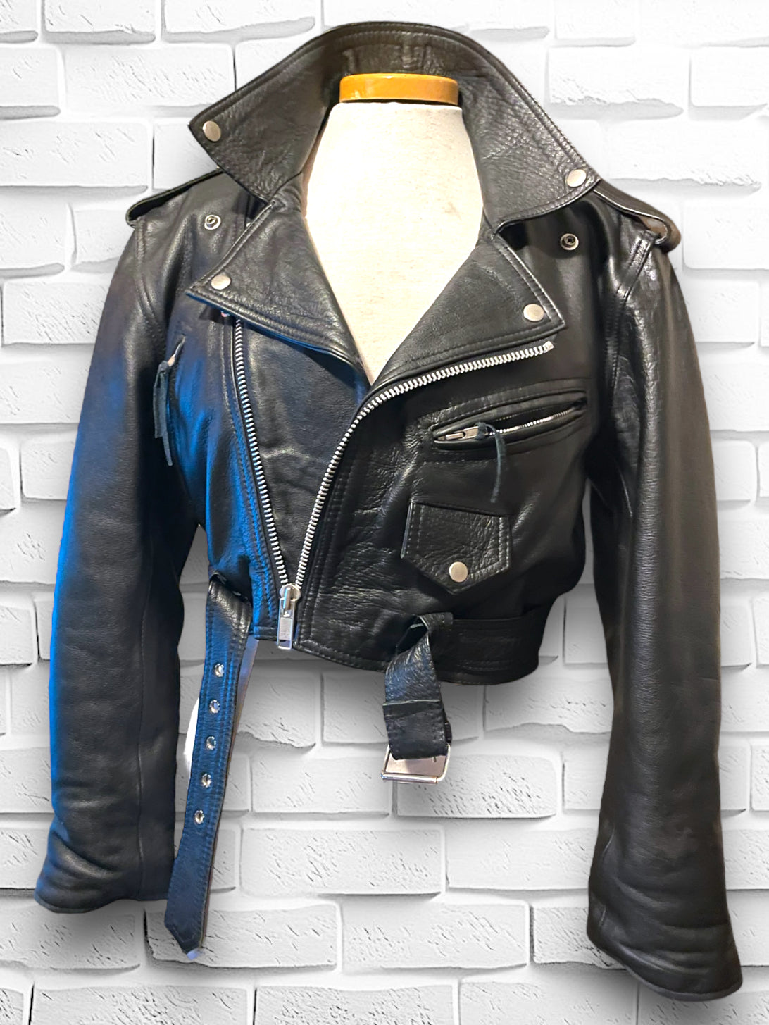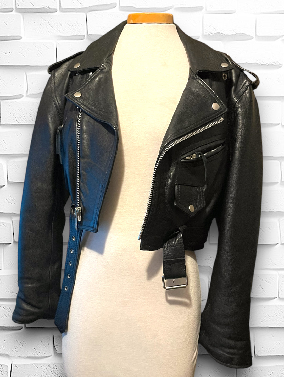 Vintage Black Leather Motorcycle Jacket Heavy Lined